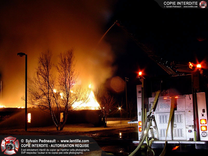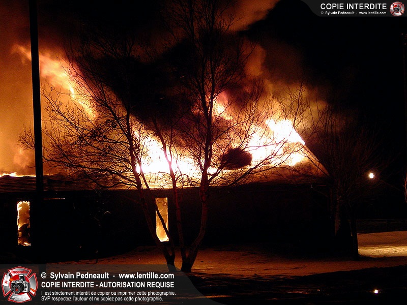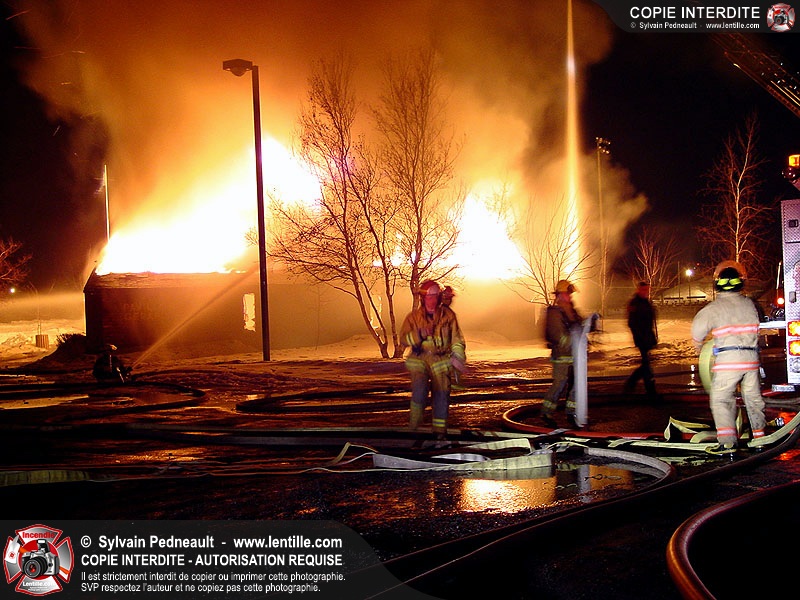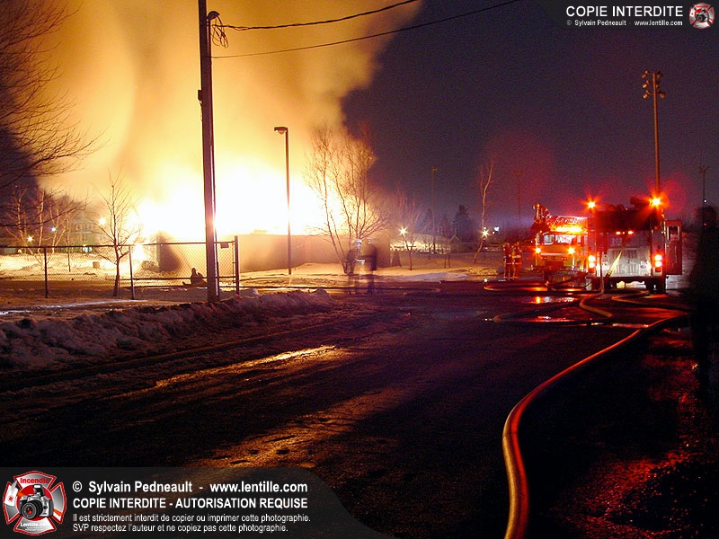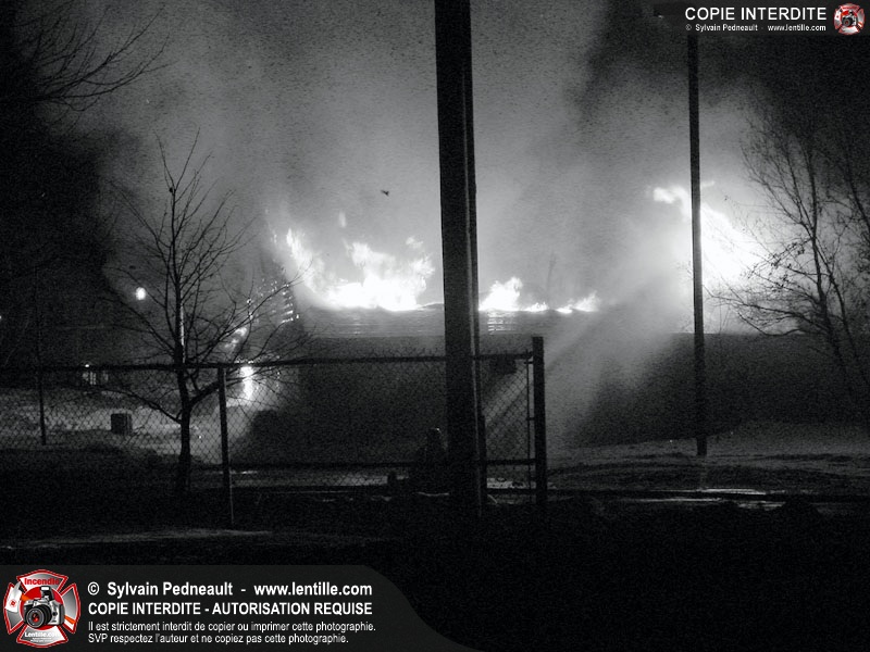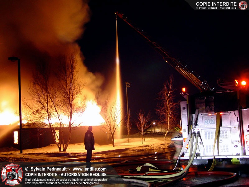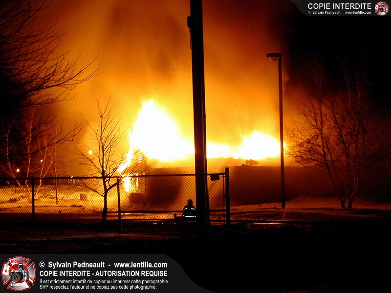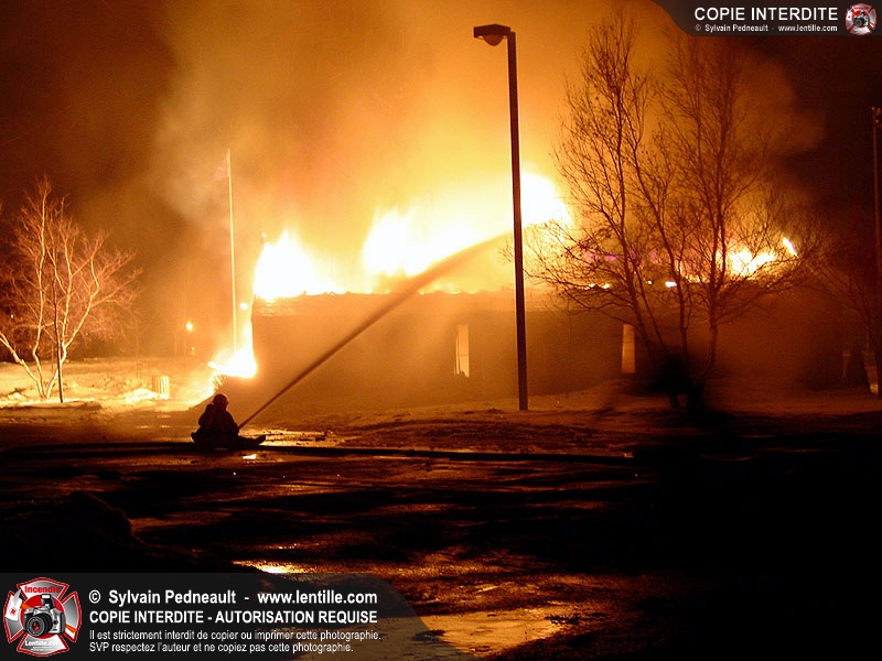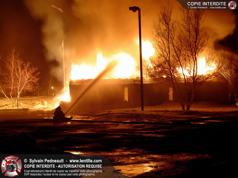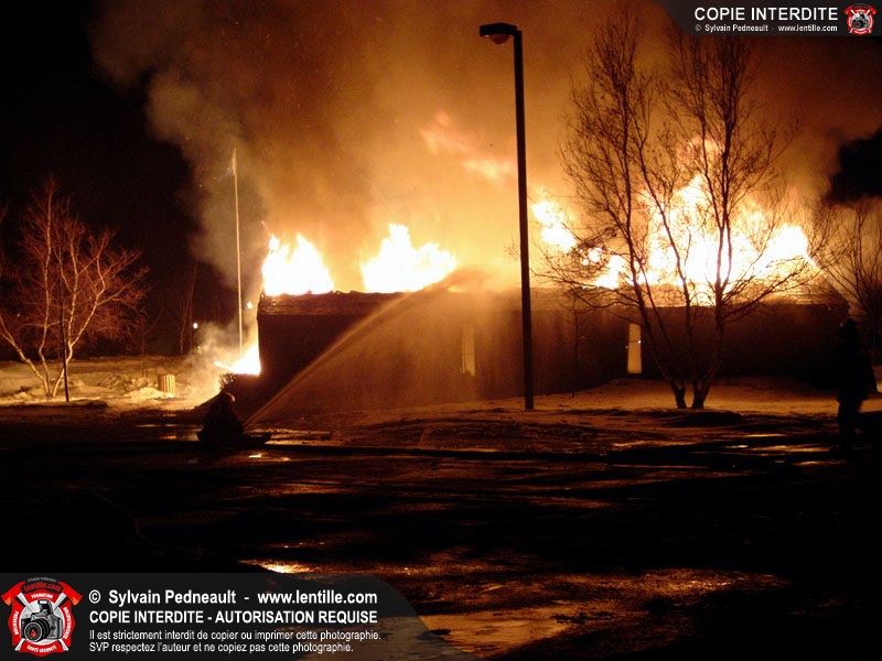 Le pavillon d'un centre récréatif est complètement rasé par un violent incendie.