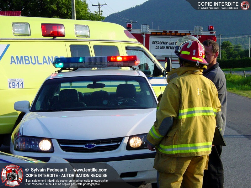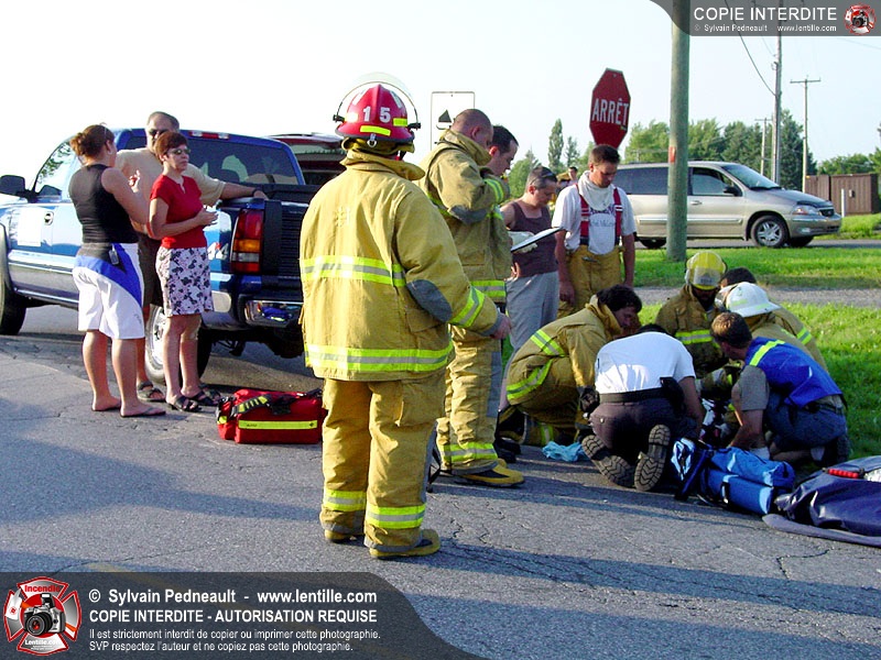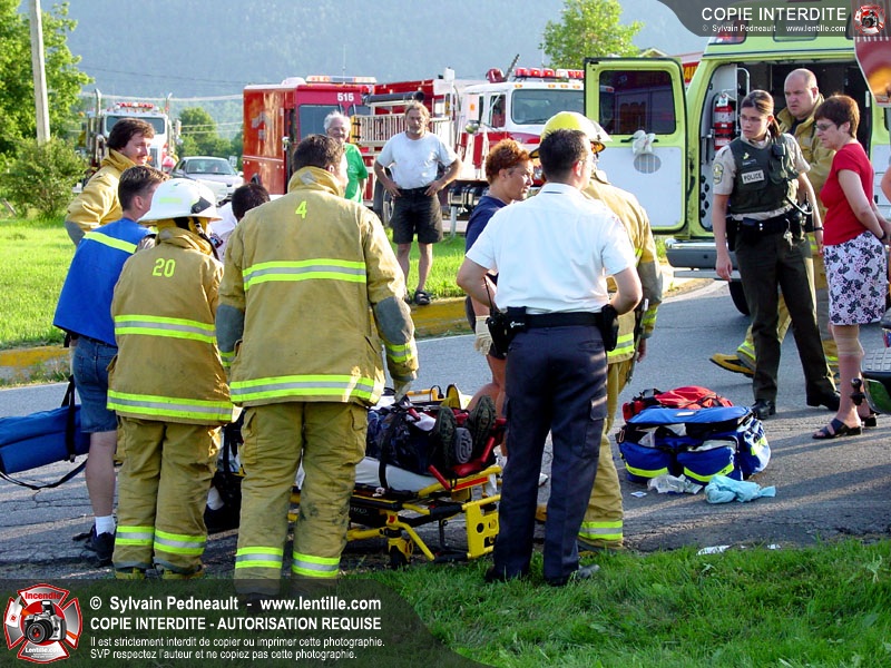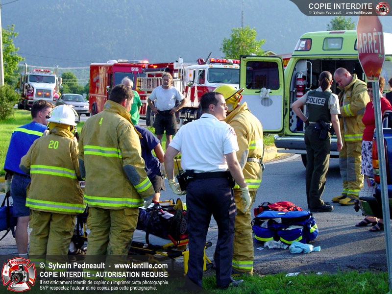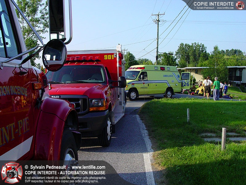 Second accident grave de la journée à St-Pie, un cycliste passe sous un camion et est gravement blessé. Le 901 de Saint-Hyacinthe a rejoint l'équipe de St-Pie pour prêter main forte.