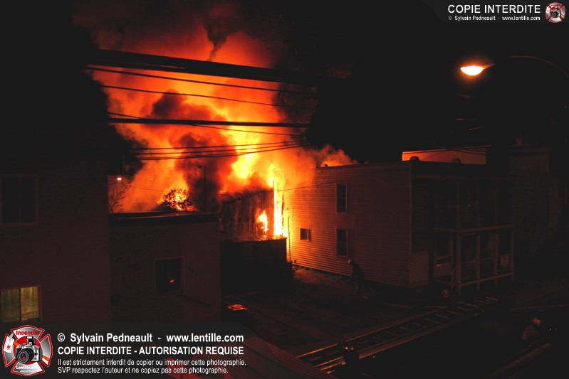 Quelques minutes après avoir éteint un début d'incendie à l'extérieur d'une résidence, les pompiers de Saint-Hyacinthe repèrent un incendie beaucoup plus important à quelques rues de là. Les deuxième, troisième et quatrième alarmes sont sonnées consécutivement en l'espace d'une quinzaine de minutes.
