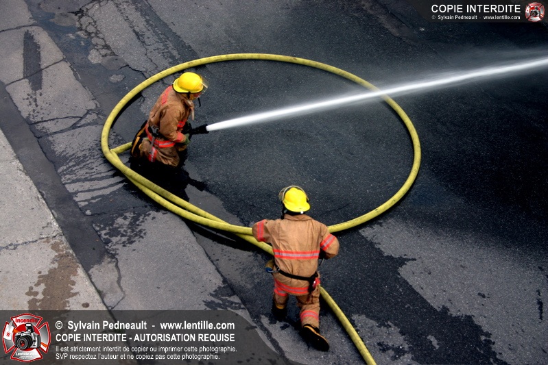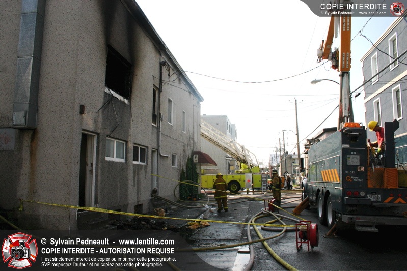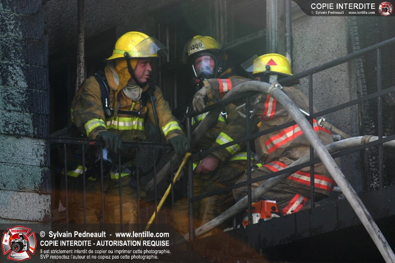 Les pompiers arrivant sur les lieux constatent un feu éclaté et déclanchent un 10-06 et un 10-07. Les codes 10-12, 10-13 et 10-14 se succèdent ensuite rapidement, pour finalement donner lieu à l'alarme générale à 8h10.