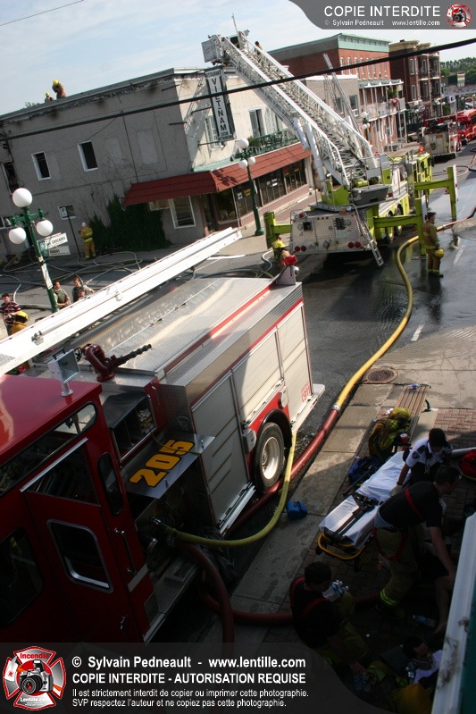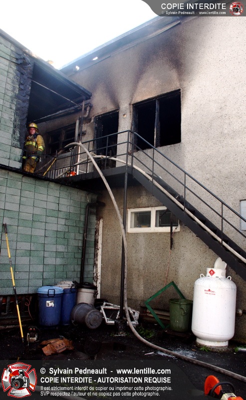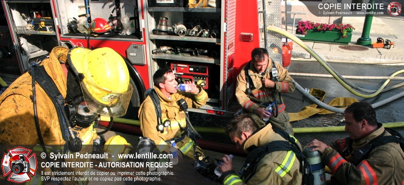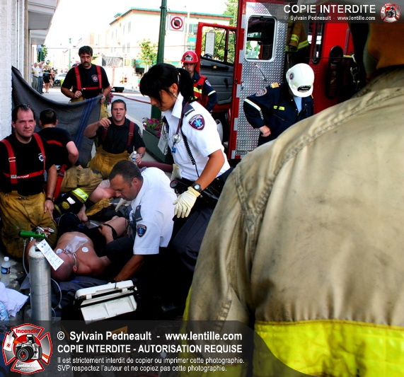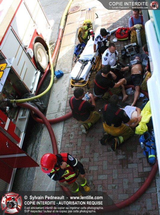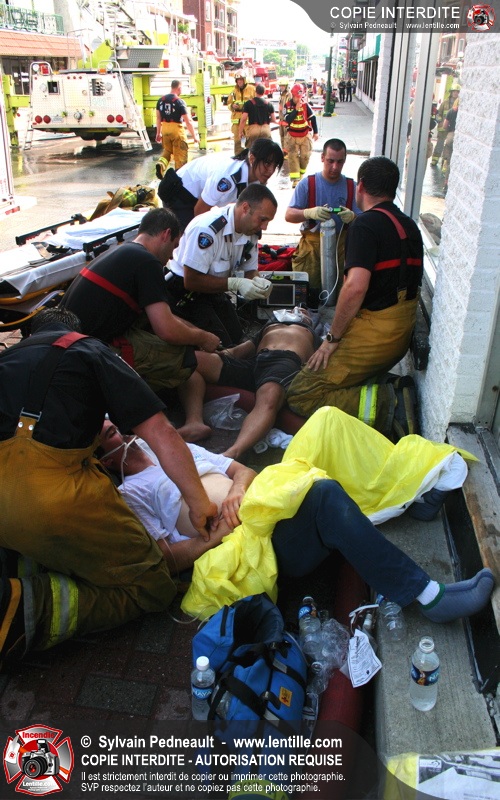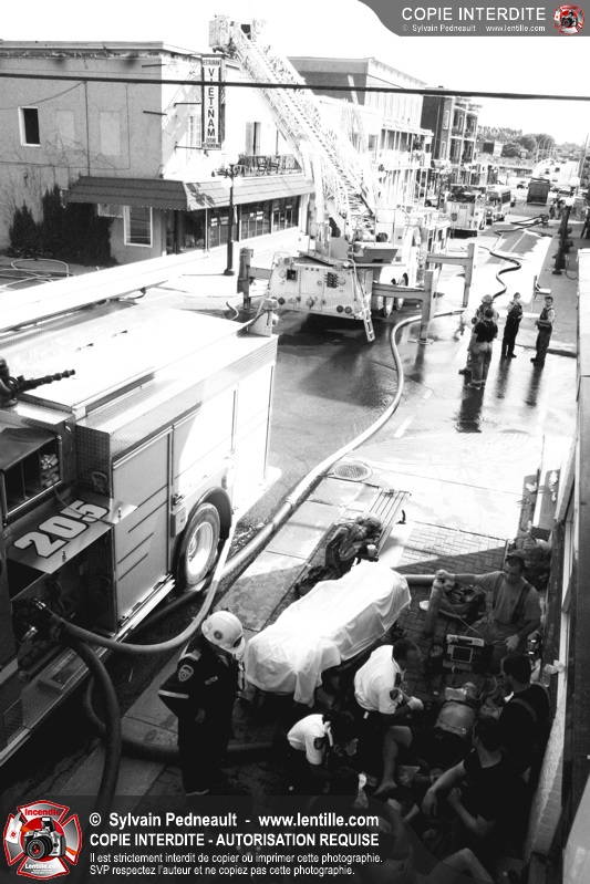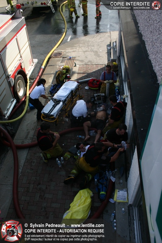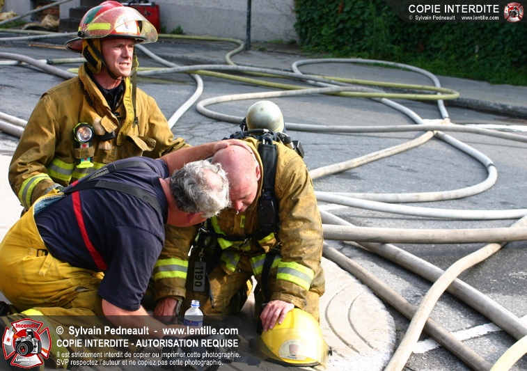 Deux pompiers ont dû être transportés à l'hôpital dû à la chaleur intense. L'intervention a cependant été un grand succès puisque la moitié de l'édifice touché ainsi que les bâtiments adjacents ont été complètement épargnés.