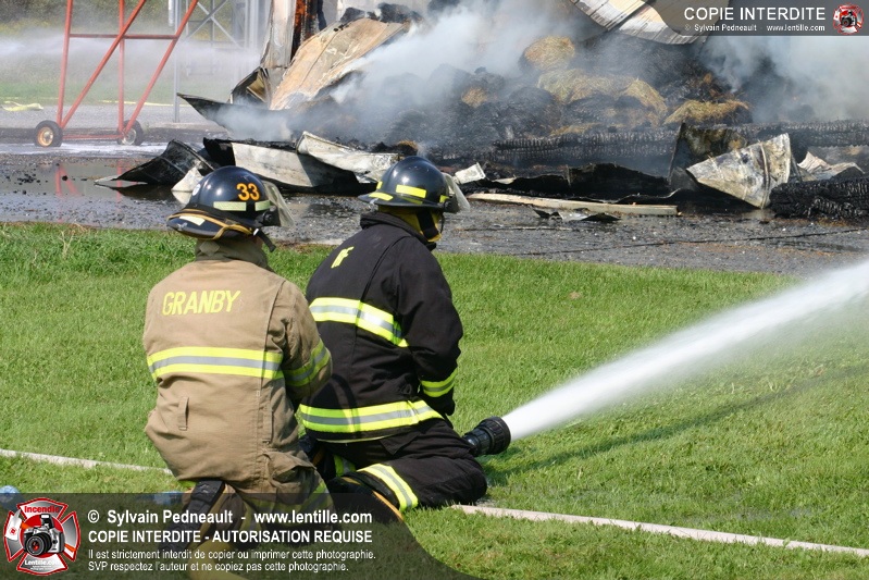 Un incendie majeur a complètement détruit une ferme à Ste-Cécile-de-Milton. Les services de sécurité incendie de la région ont été mobilisés pour venir à boût du brasier.