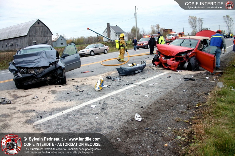 Un accrochage à trois véhicules a provoqué une violente collision frontale sur la route 235 à St-Pie. Les premiers répondants et le SSI de St-Pie ont répondu à l'appel.