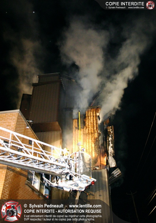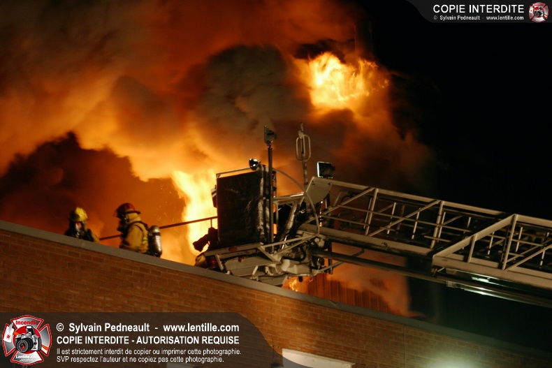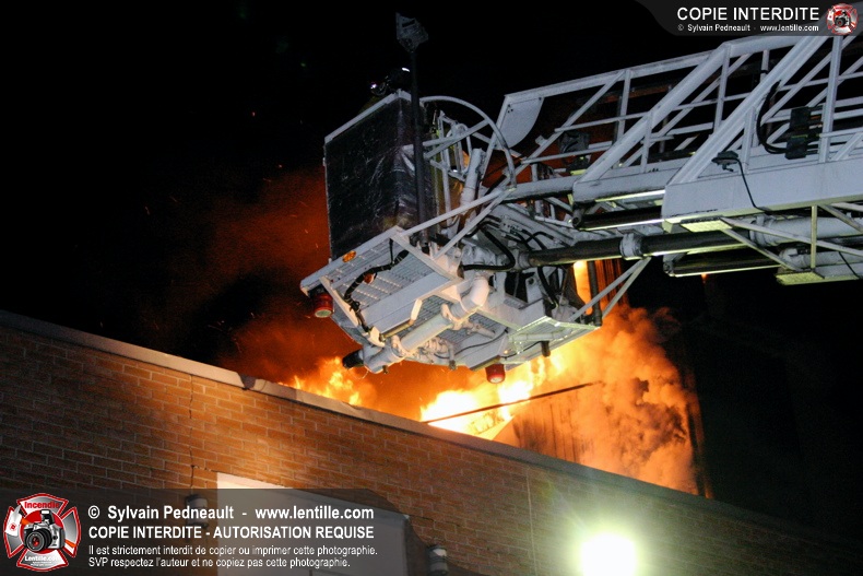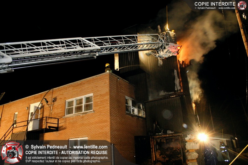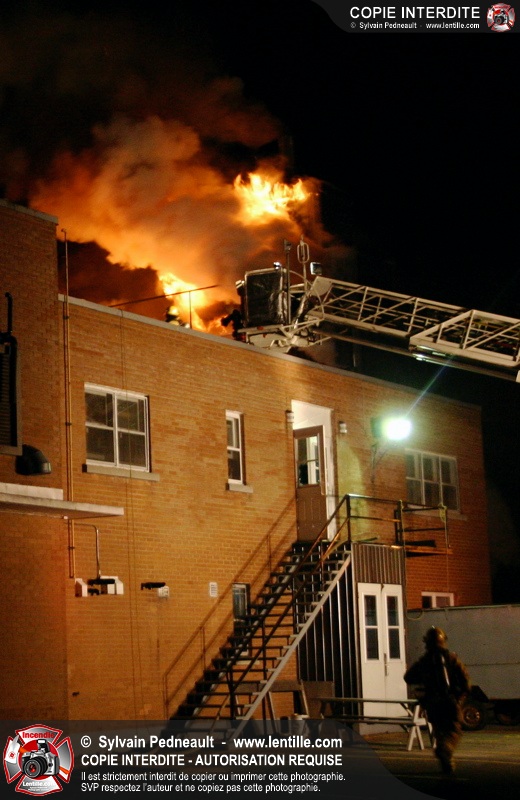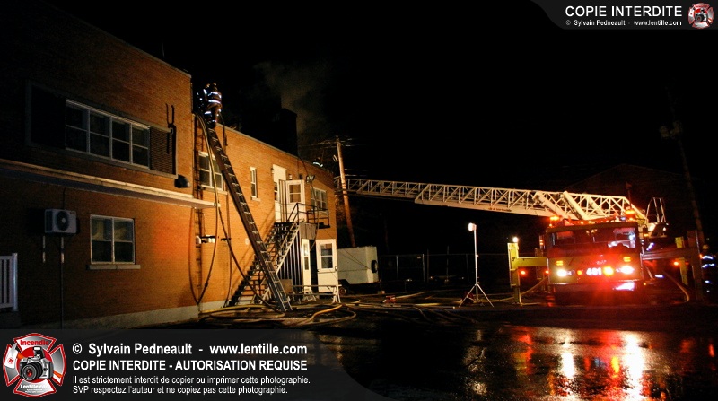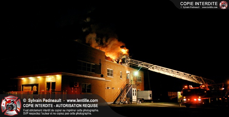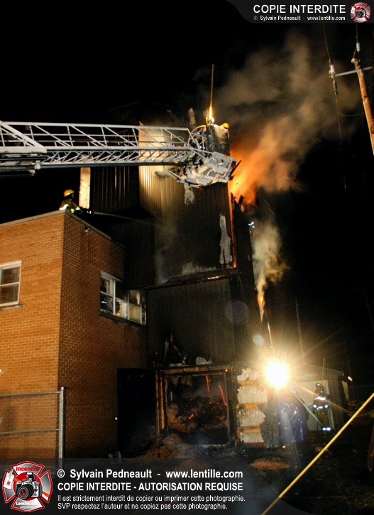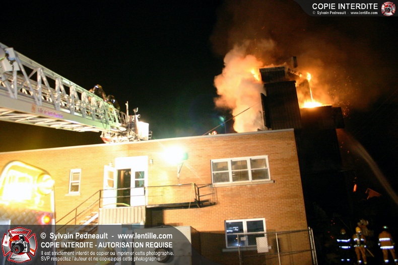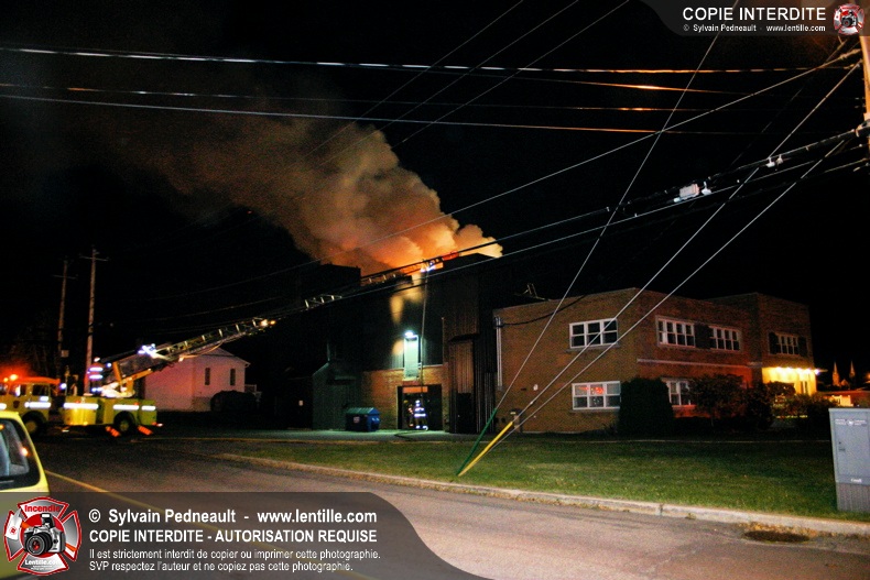 À 21h07, le SSI de Saint-Hyacinthe a reçu un appel pour fumée et flamme apparente dans un bâtiment industriel où l'on fabrique des orgues. Trente minutes plus tard, l'intervention était en 4ième alarme et 62 pompiers combattaient l'incendie. Le feu a entièrement détruit l'immense dépoussiéreur au secteur 3, en plus de causer des dommages majeurs au toit de l'usine. 10-08 à 22h55, 10-10 à 23h23.