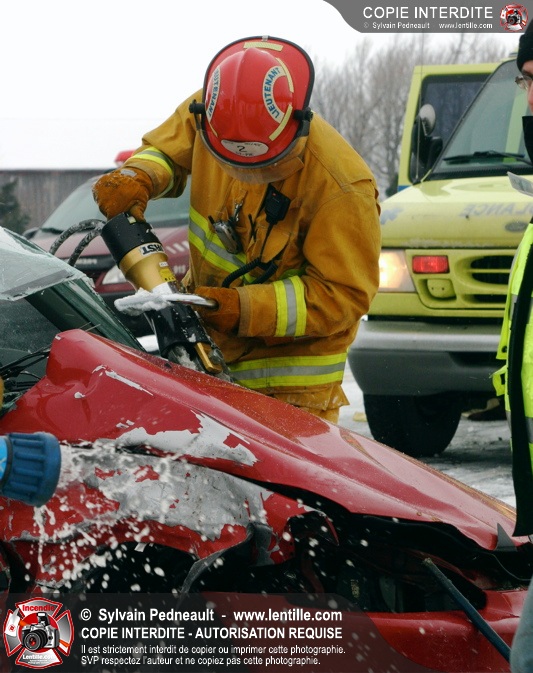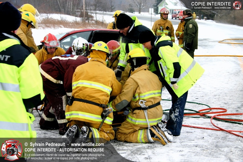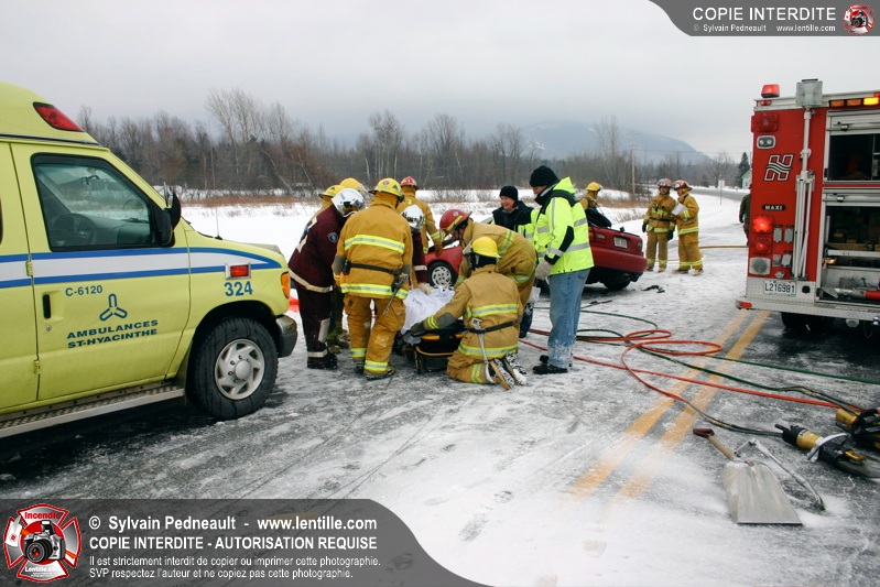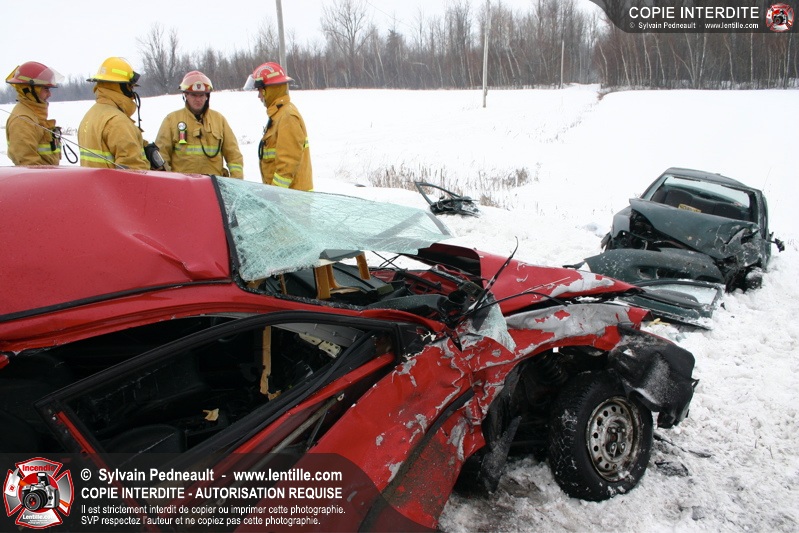 La chaussée glaçée a causé plusieurs sorties de routes en Montérégie mardi matin, dont une grave collision impliquant deux véhicules sur la route 235 à St-Pie. Les PR et le SSI de St-Pie ont répondu à l'appel, assistés de l'équipe de désincarcération de Saint-Hyacinthe, des paramédics d'Ambulances Saint-Hyacinthe et de la Sûreté du Québec.