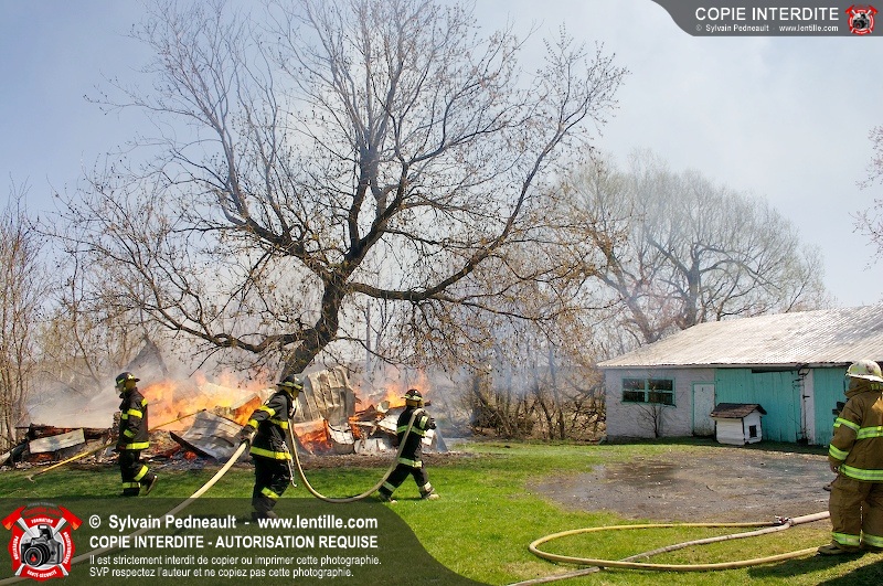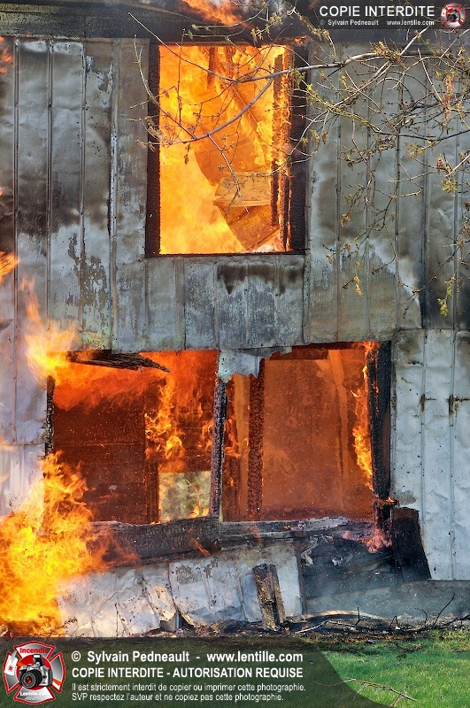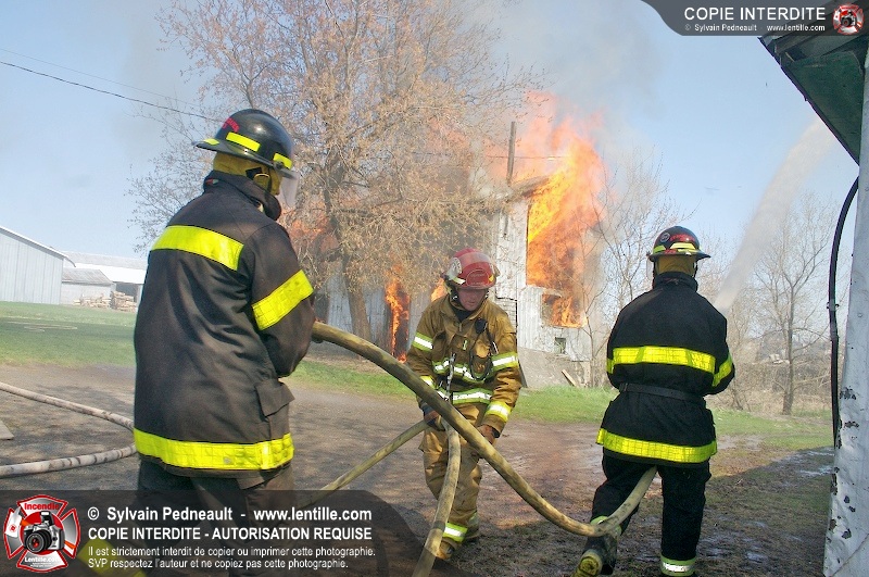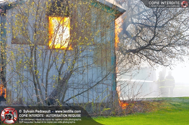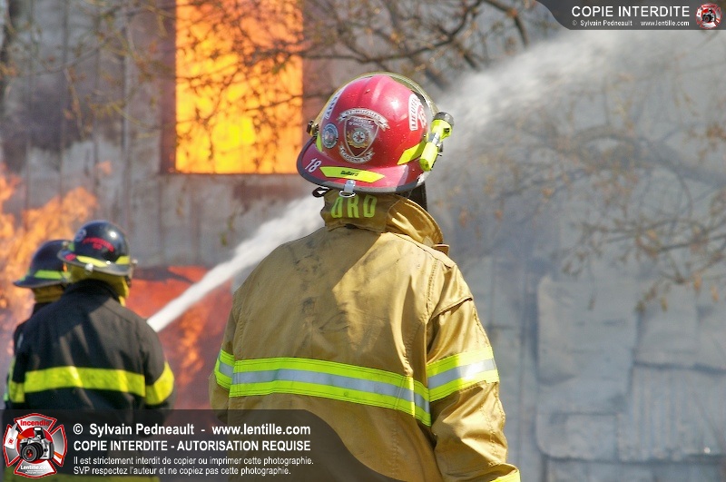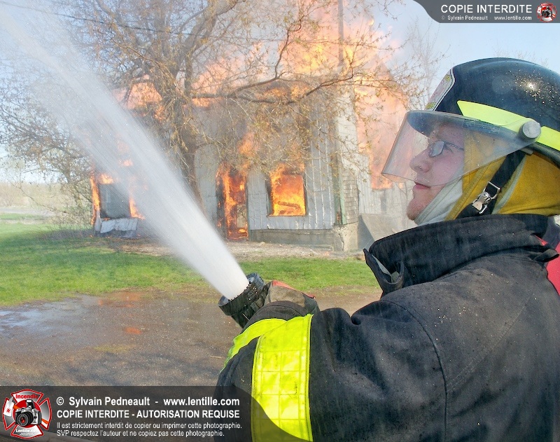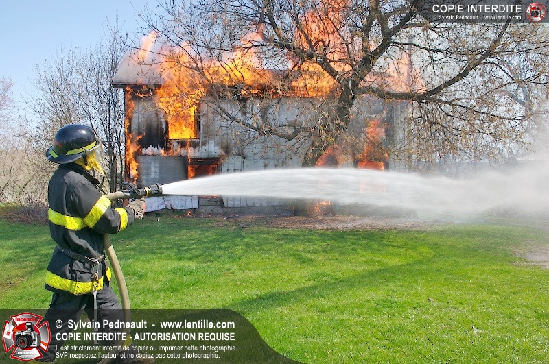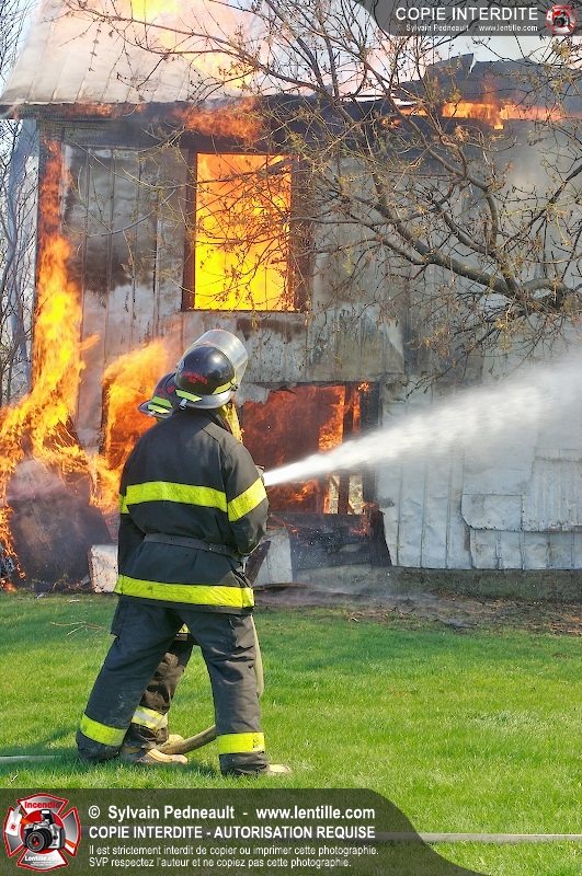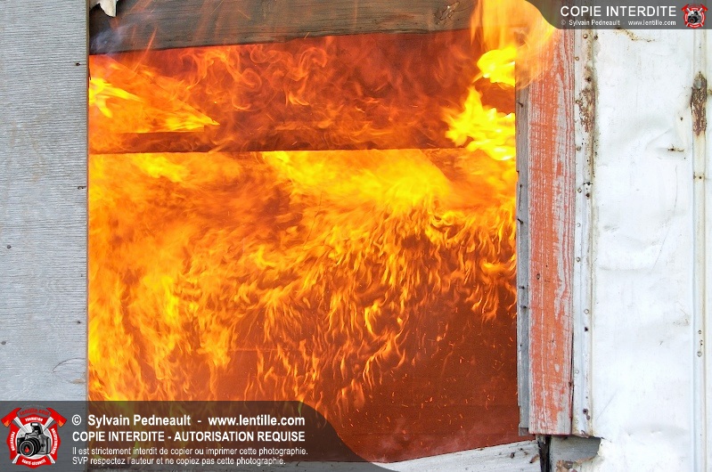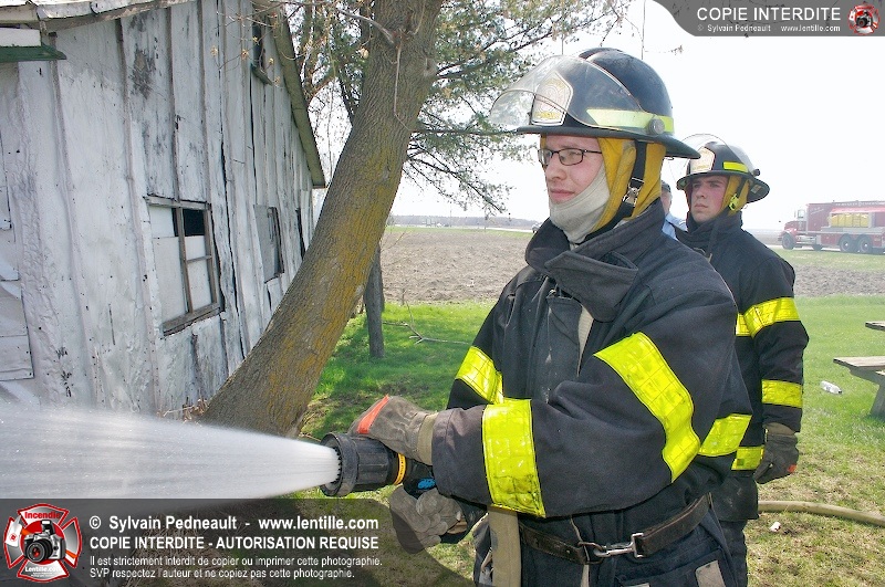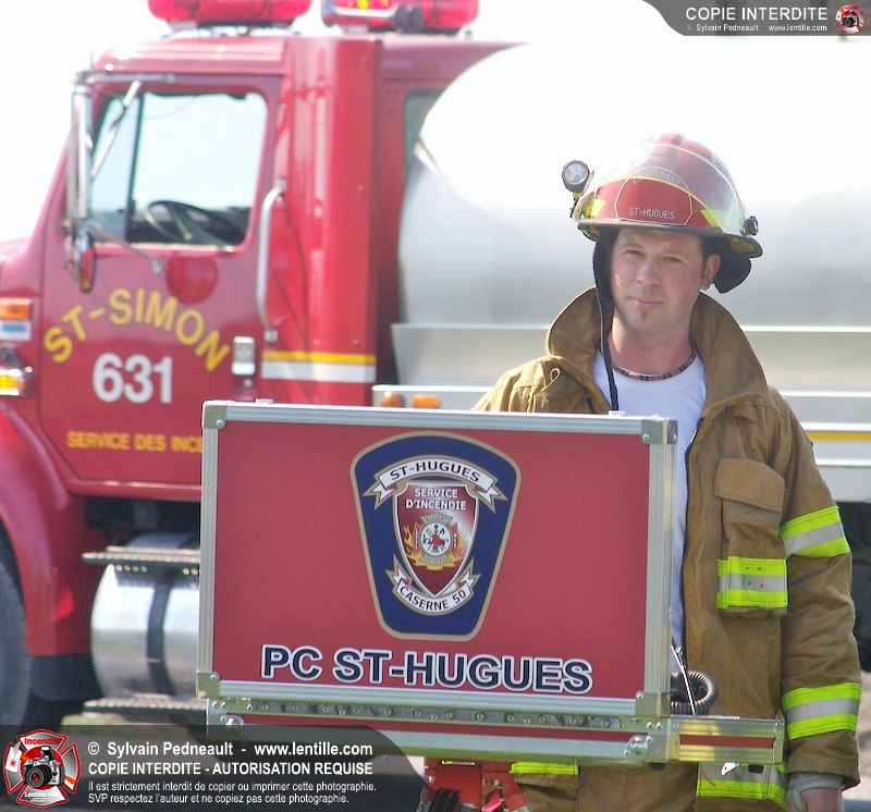 Les pompiers de St-Hugues ont participé à une pratique d'incendie avec un bâtiment désaffecté.