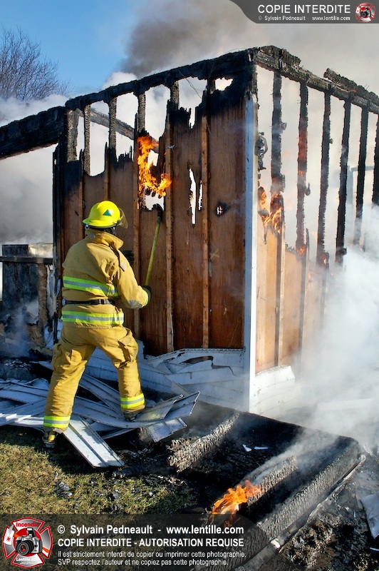 Une résidence du 5e rang est partie en fumée alors que ses propriétaires étaient absents. Les pompiers ont sonné une deuxième alarme pour disposer des secours nécessaires aux opérations. À un certain moment, un retrait stratégique a été ordonné par le chef aux opérations, mais une unité a été redéployée au secteur 1 peu après.