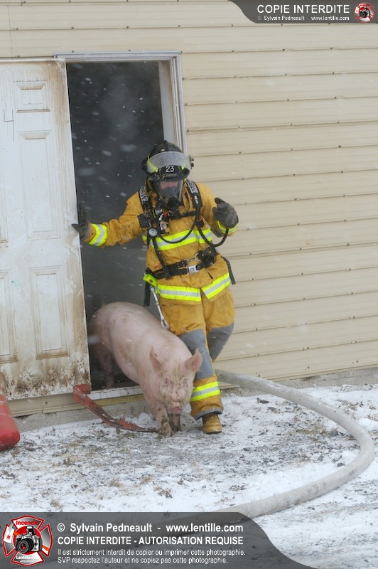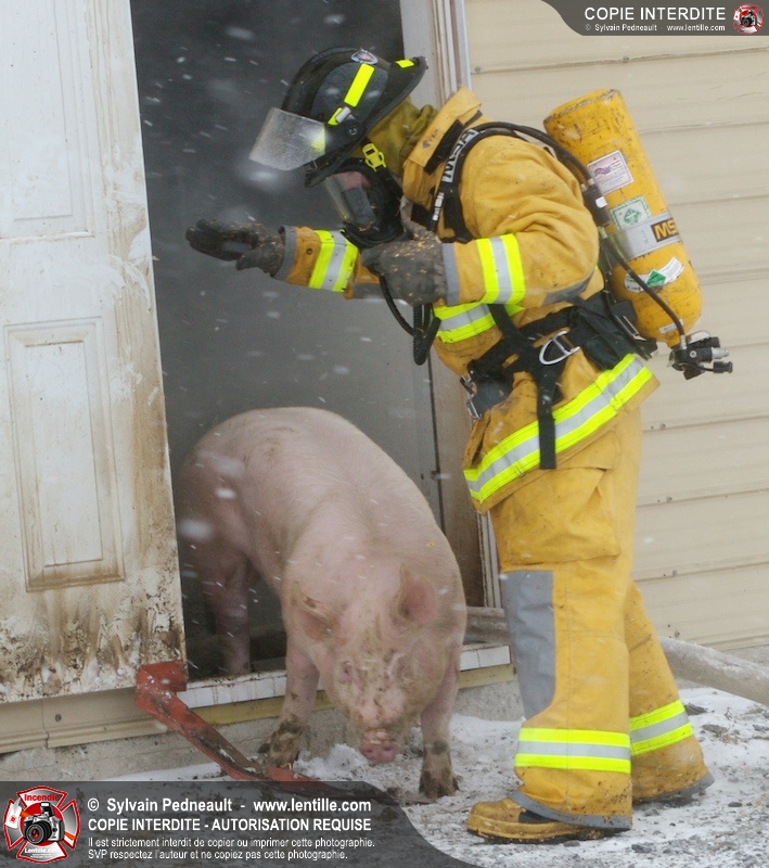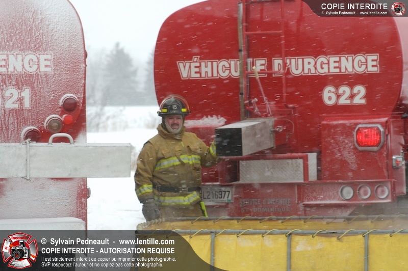 Les pompiers de St-Dominique n'ont fait qu'une bouchée de l'incendie qui prenait naissance dans une porcherie du 7e Rang. Dès la première alarme, le PC a demandé en entraide des citernes et des équipes de Saint-Hyacinthe, St-Valérien et St-Pie. La rapidité des pompiers a permis d'enrayer la propagation et de circonscrire l'incendie.
