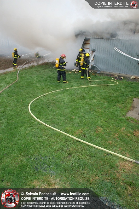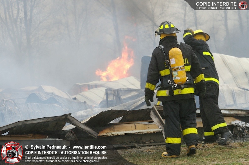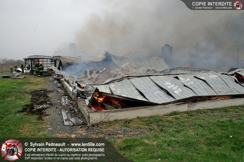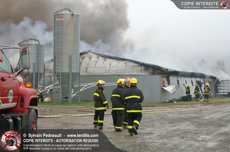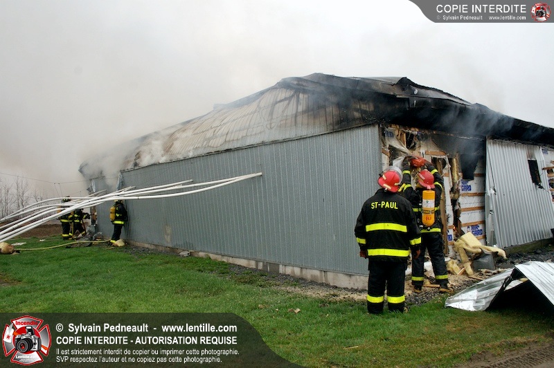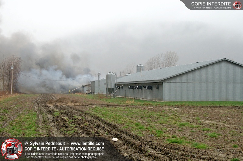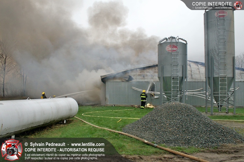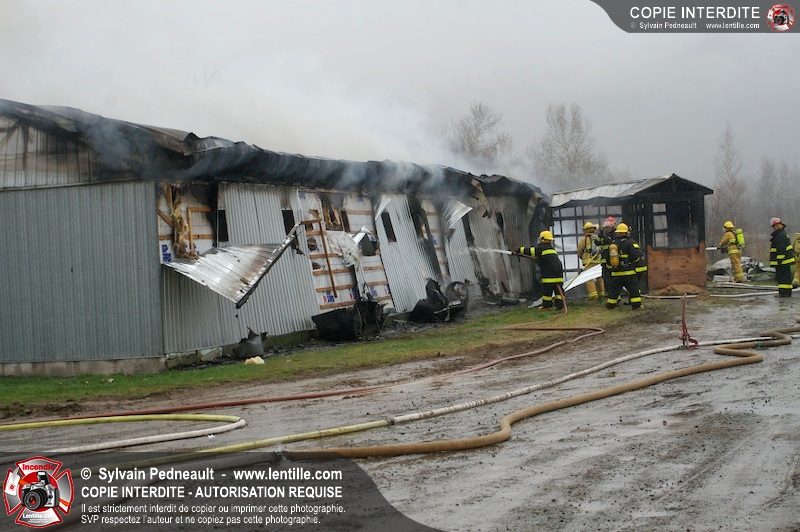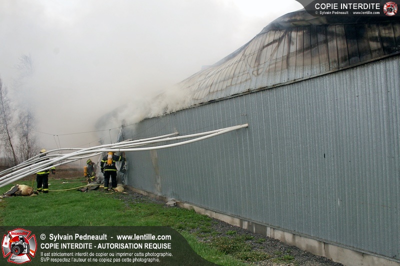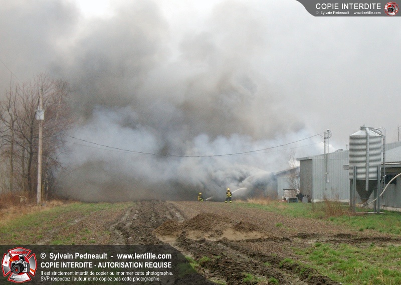 Les services incendie de St-Paul-d'Abbotsford, Roxton Pond, St-Pie et Granby ont combattu un incendie de porcherie.