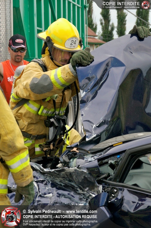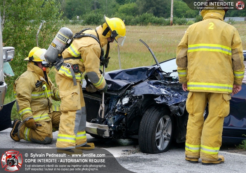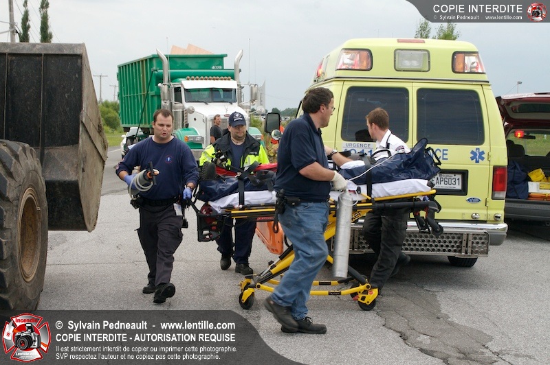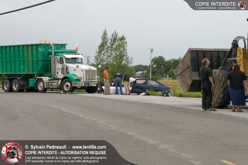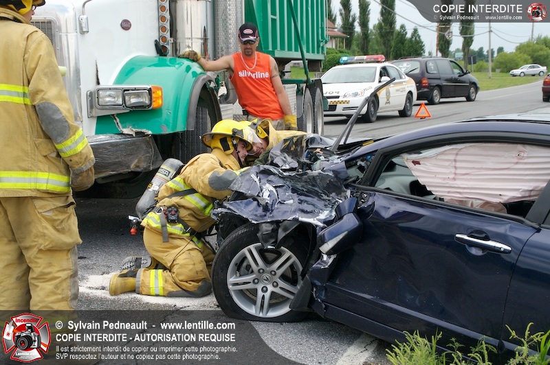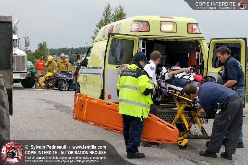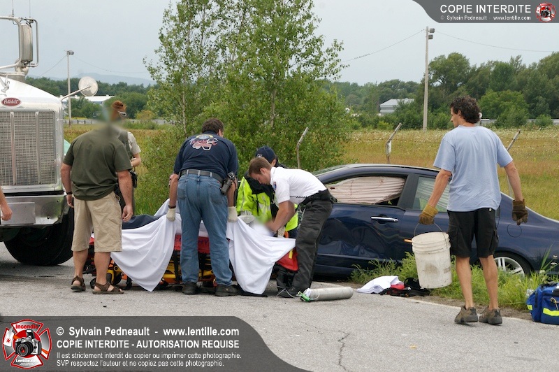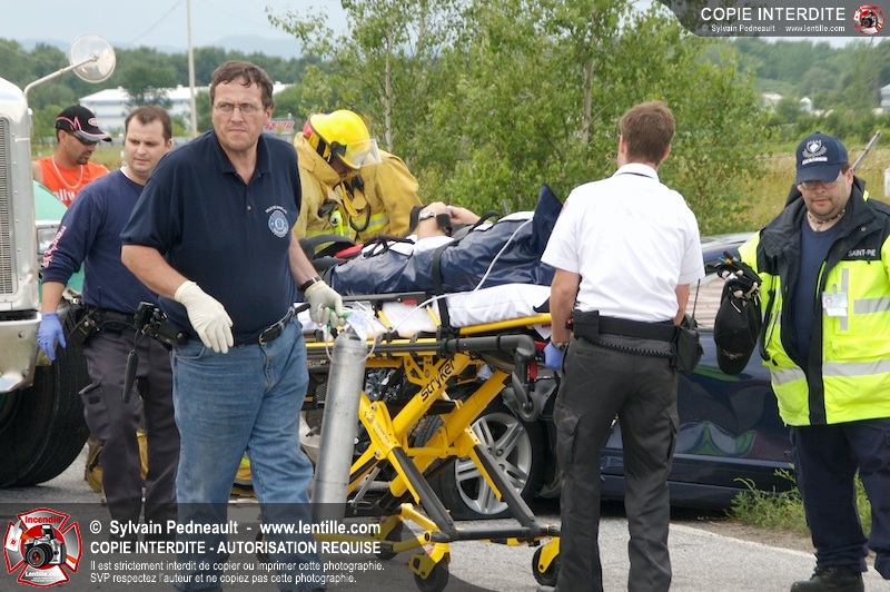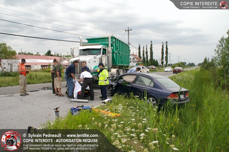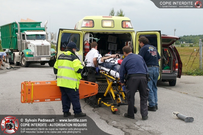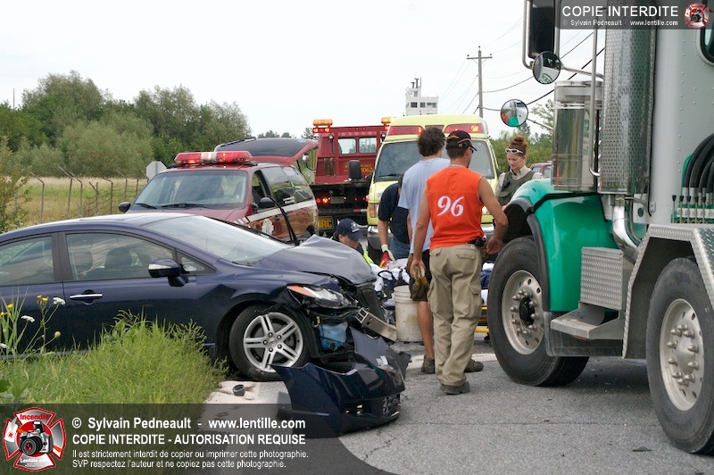 Les Premiers Répondants et les pompiers de St-Pie, les paramédics de Saint-Hyacinthe et les policiers de la Sûreté du Québec sont intervenus près de Sanair à St-Pie pour une collision entre un camion et une automobile.