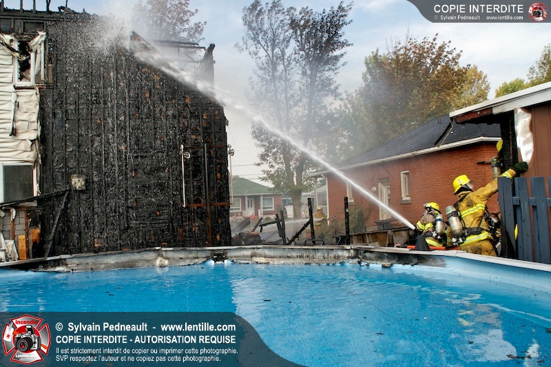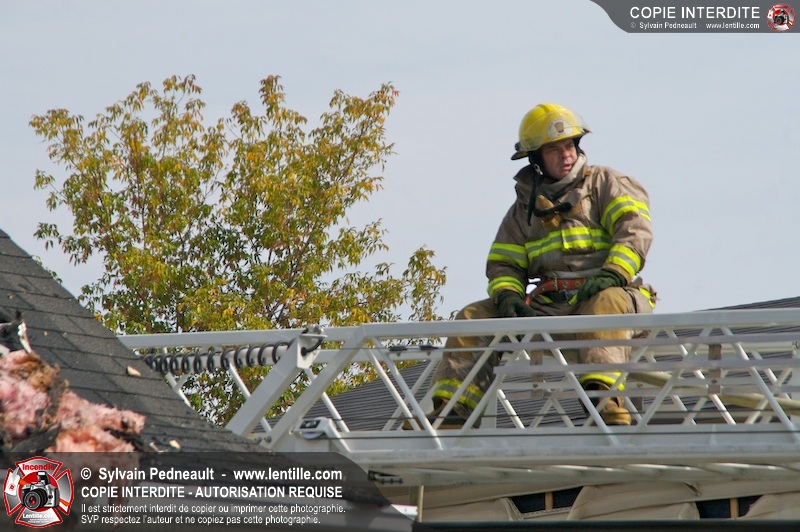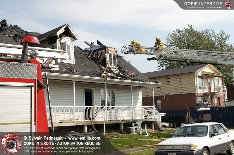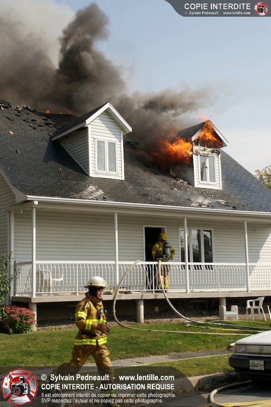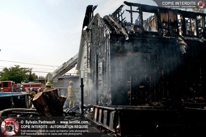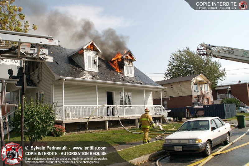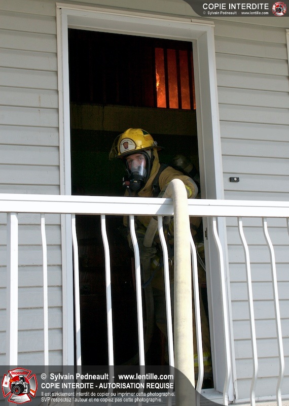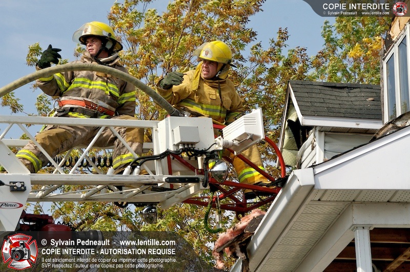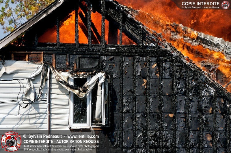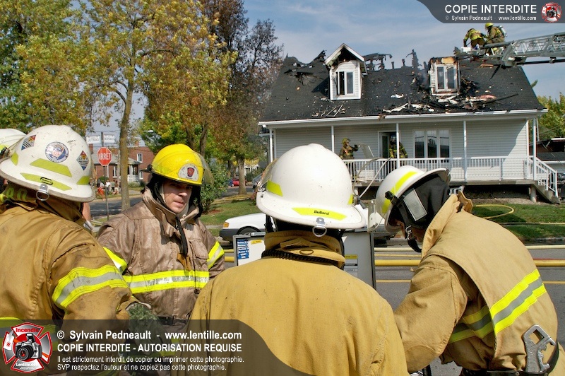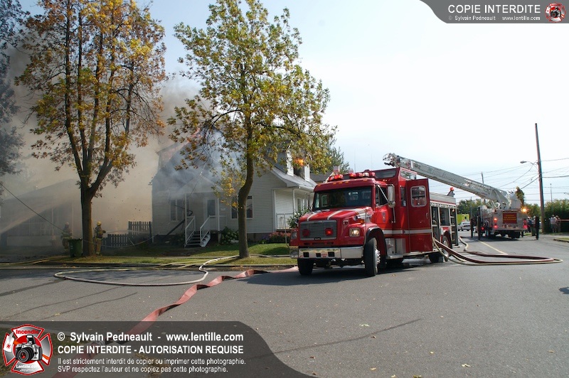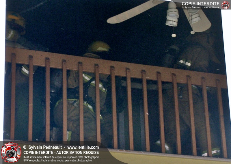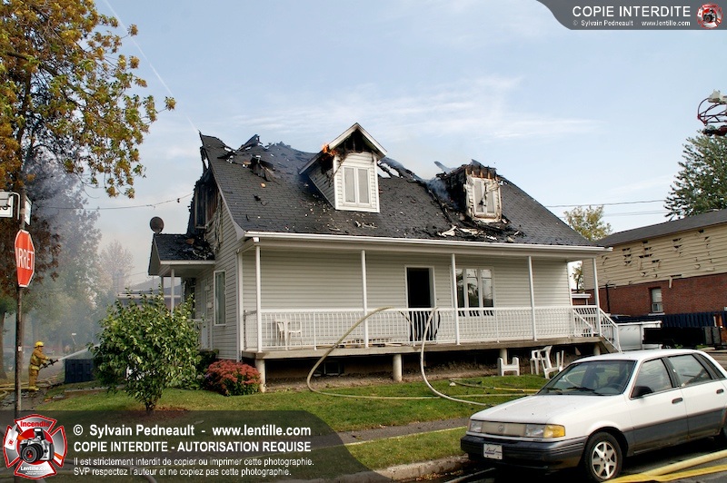 Dès la réception de l'appel pour un feu de résidence, des officiers ont rapporté voir une épaisse colonne de fumée noire dans le ciel, déclarant ainsi l'appel comme fondé. 10-07, 10-12 et 10-13 se sont rapidement succédés étant donné les risques très élevés de propagation à deux bâtiments habités et un garage. Une des maisons était tellement menacée par le brasier que le tout premier jet installé par le 205 fut un jet de protection.