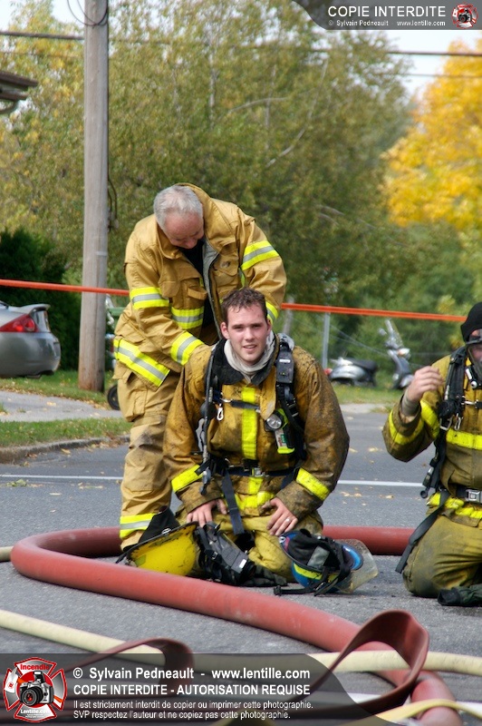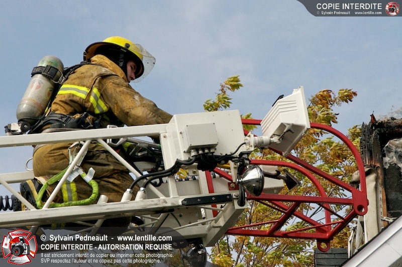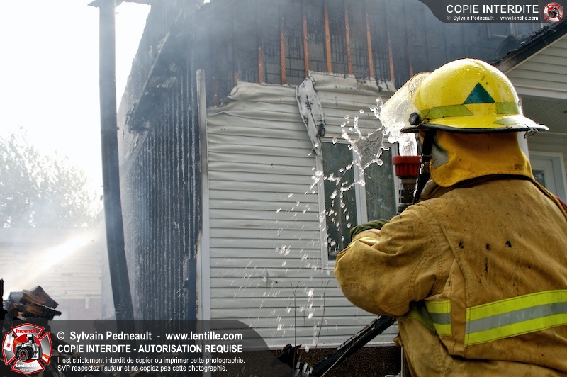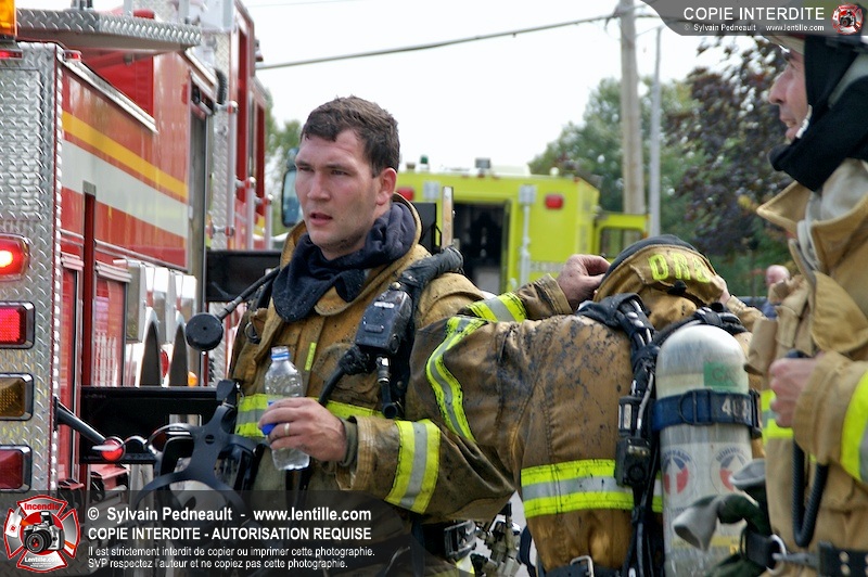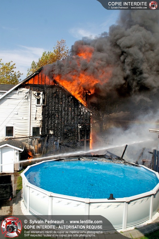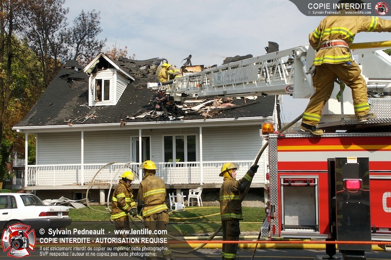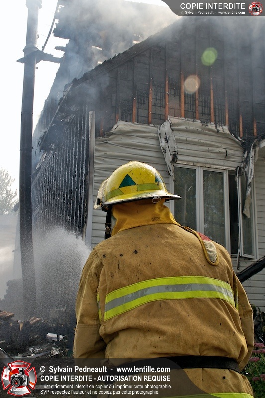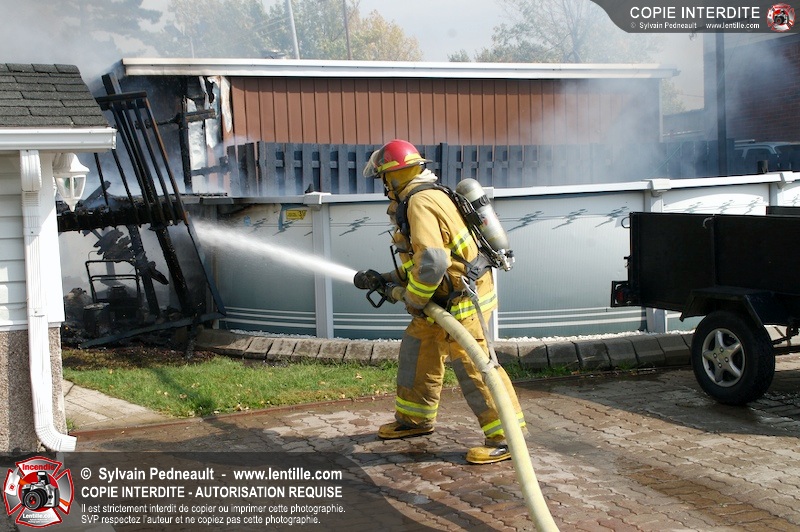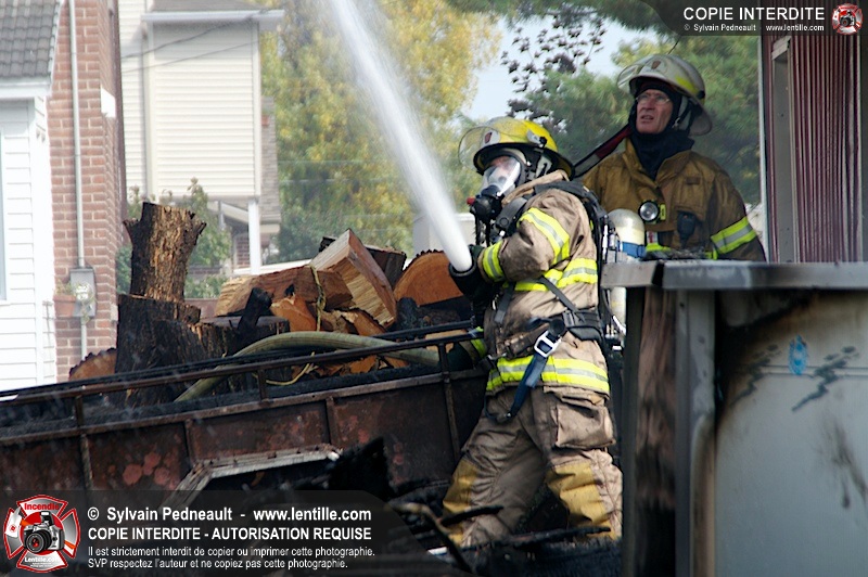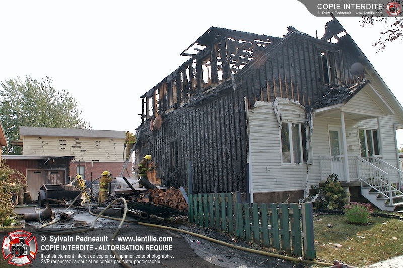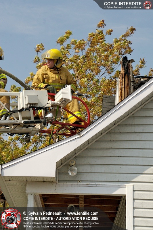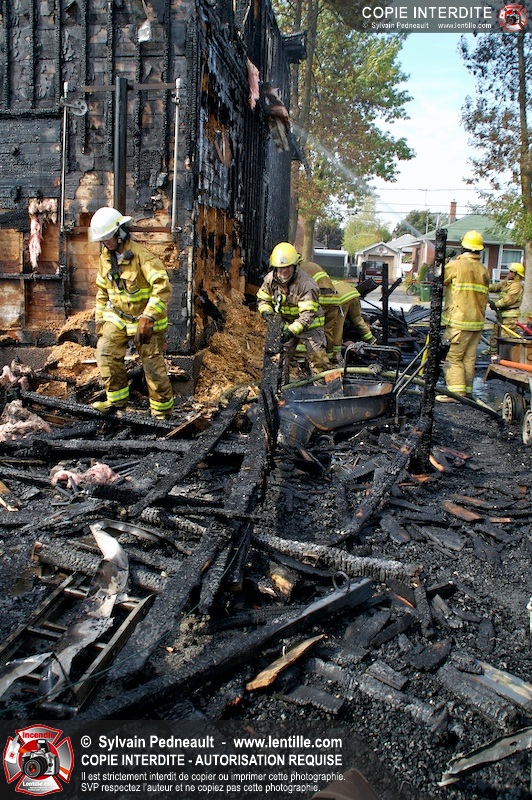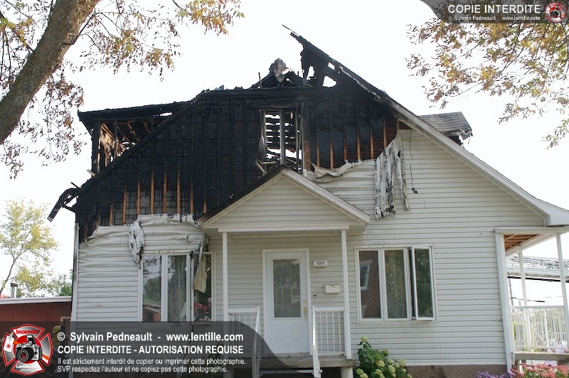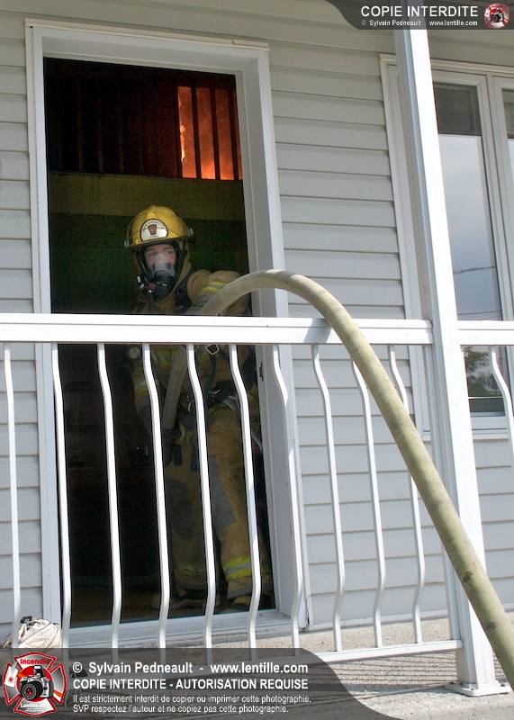 Dès la réception de l'appel pour un feu de résidence, des officiers ont rapporté voir une épaisse colonne de fumée noire dans le ciel, déclarant ainsi l'appel comme fondé. 10-07, 10-12 et 10-13 se sont rapidement succédés étant donné les risques très élevés de propagation à deux bâtiments habités et un garage. Une des maisons était tellement menacée par le brasier que le tout premier jet installé par le 205 fut un jet de protection.