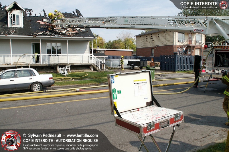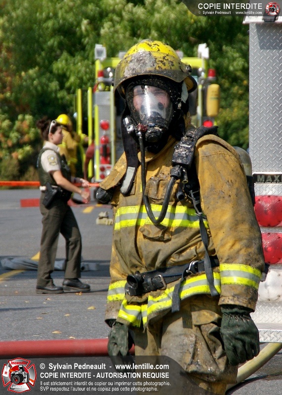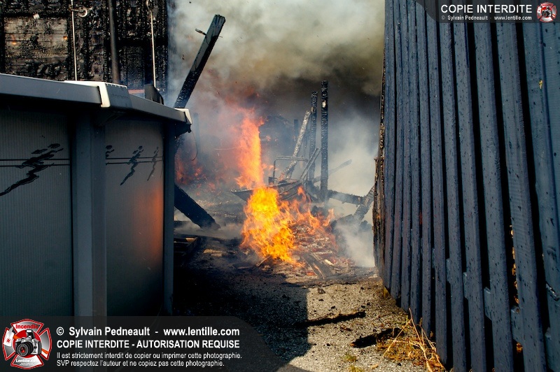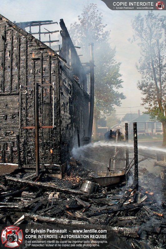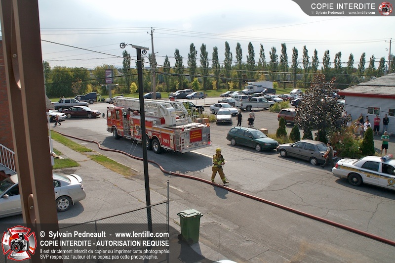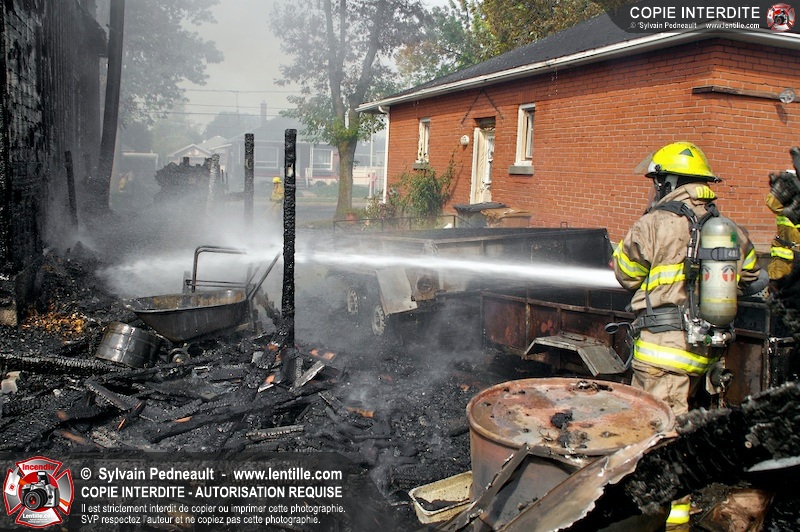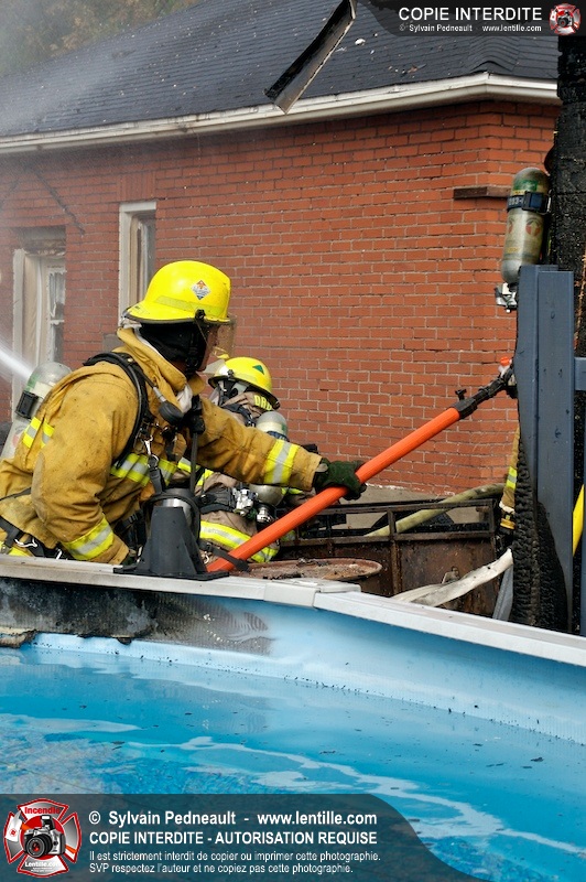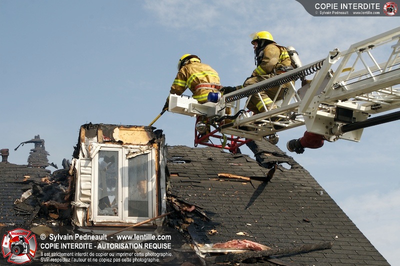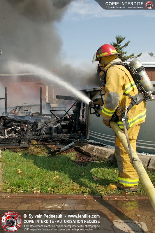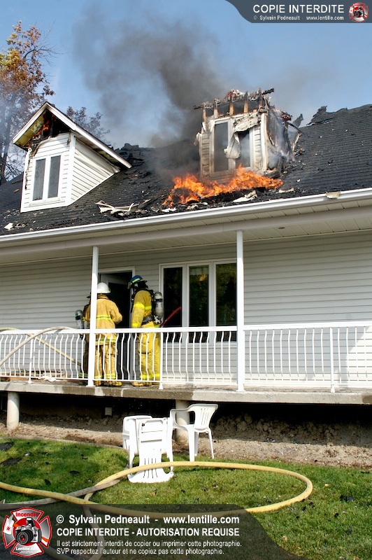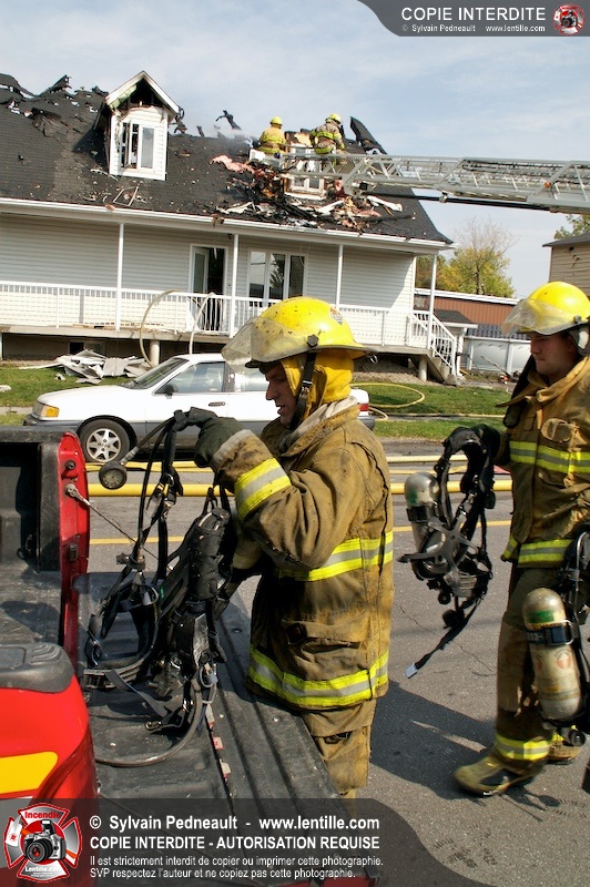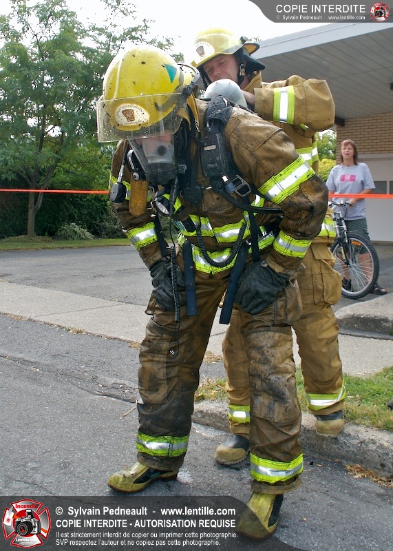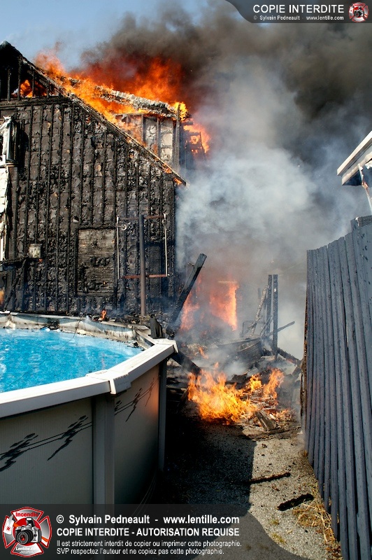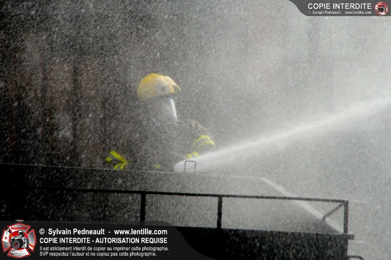 Dès la réception de l'appel pour un feu de résidence, des officiers ont rapporté voir une épaisse colonne de fumée noire dans le ciel, déclarant ainsi l'appel comme fondé. 10-07, 10-12 et 10-13 se sont rapidement succédés étant donné les risques très élevés de propagation à deux bâtiments habités et un garage. Une des maisons était tellement menacée par le brasier que le tout premier jet installé par le 205 fut un jet de protection.