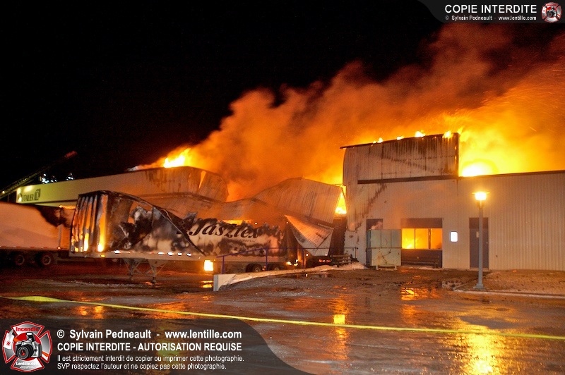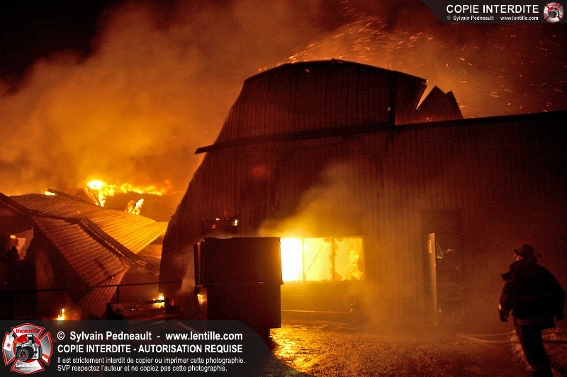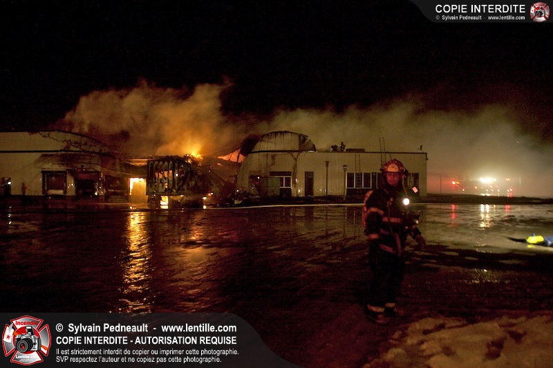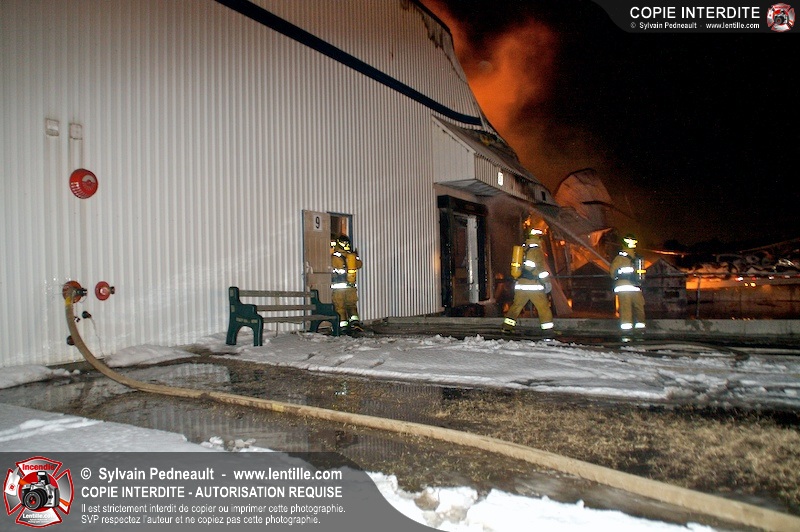 Une usine de fabrication de meubles de St-Pie a subit de lourds dommages par un intense brasier. En tout, 76 pompiers de plusieurs municipalités environnantes ont collaboré sur le site lors de cette intervention, en plus des autres services affectés à la couverture des territoires à découvert.