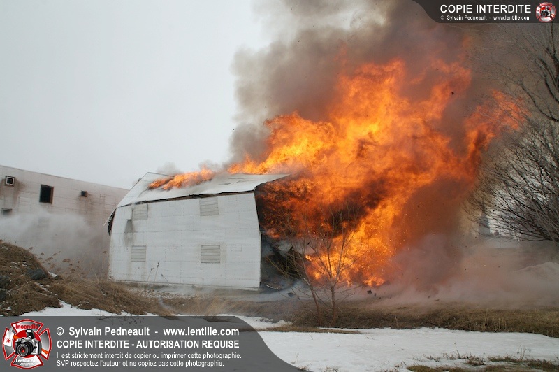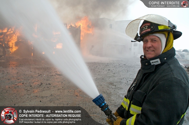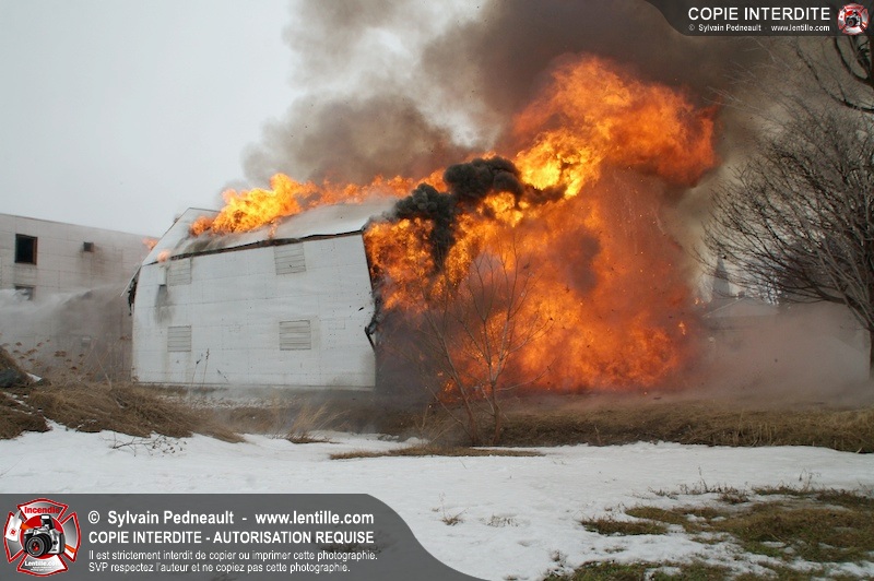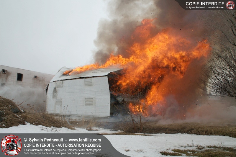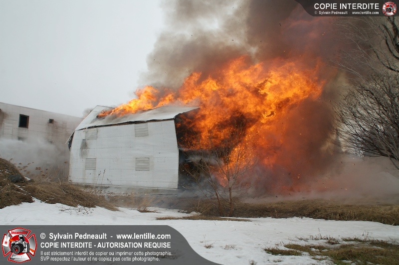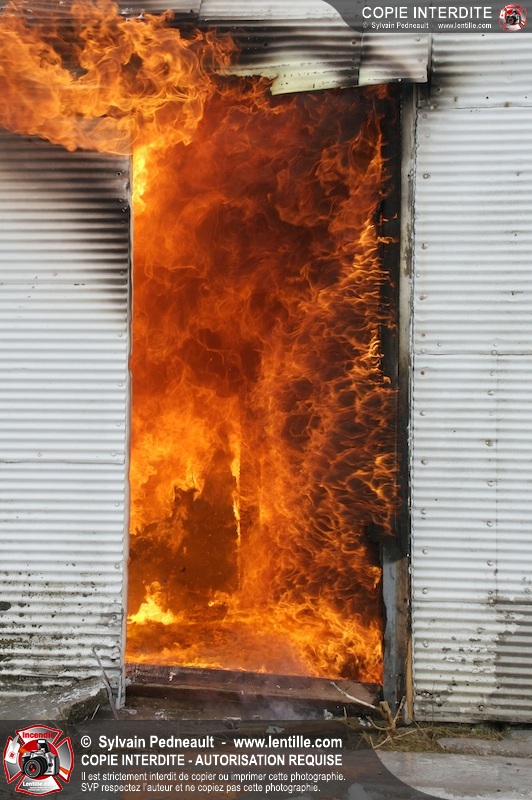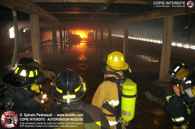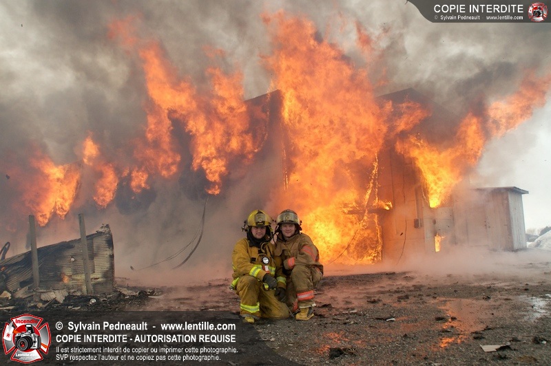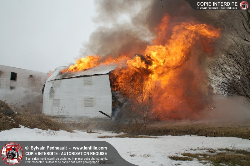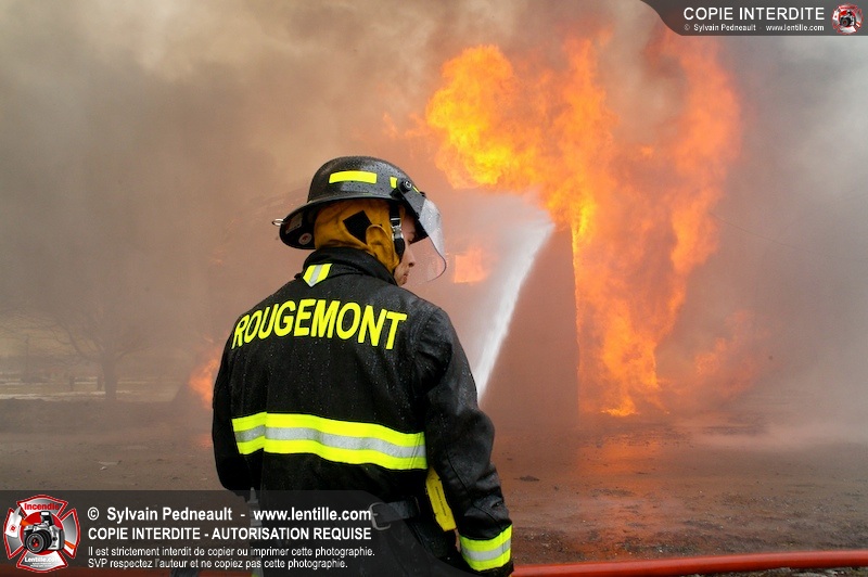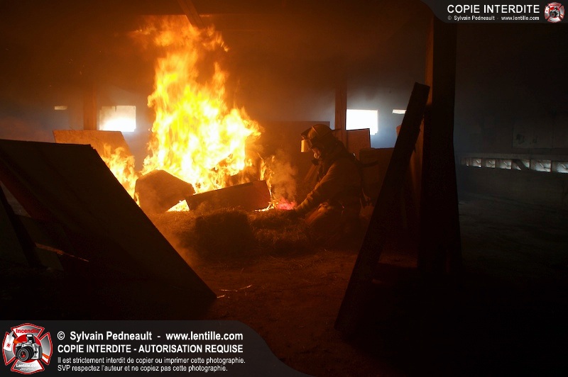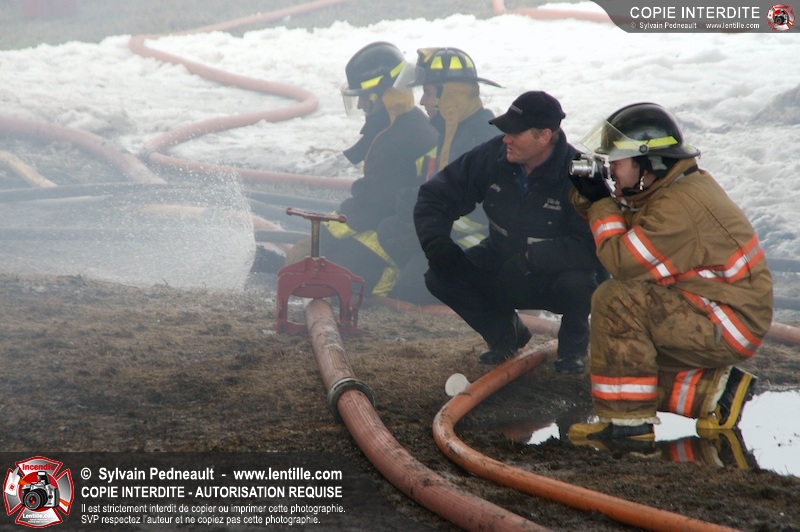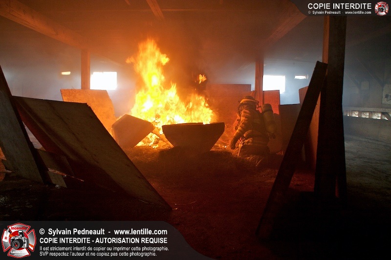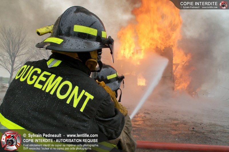 Les pompiers de Rougemont ont organisé une pratique d'incendie réel dans deux poulaillers à l'extrémité de la 4e avenue.