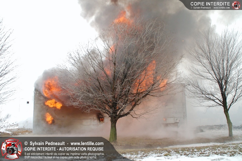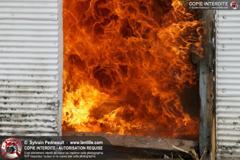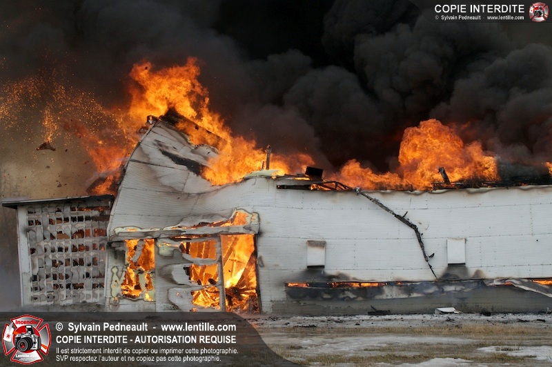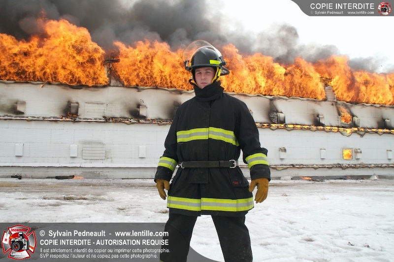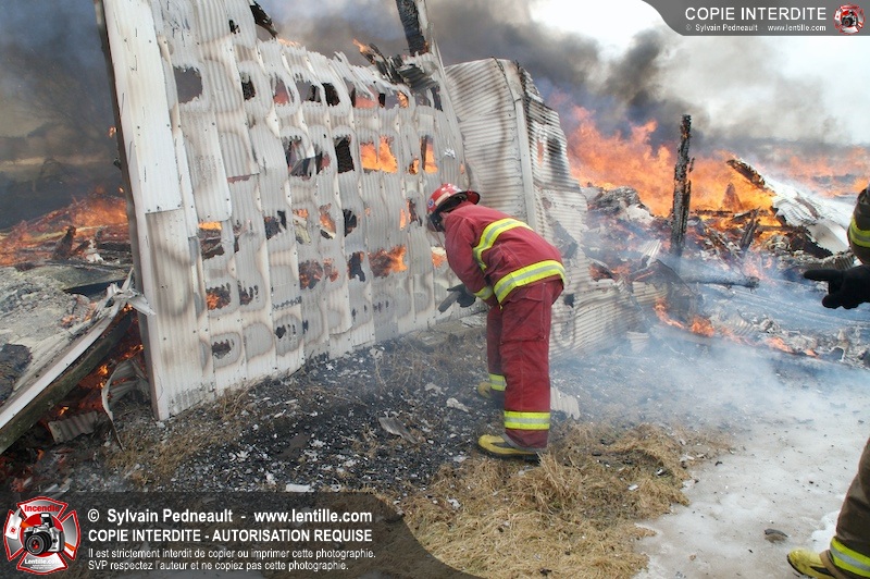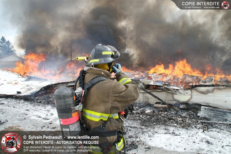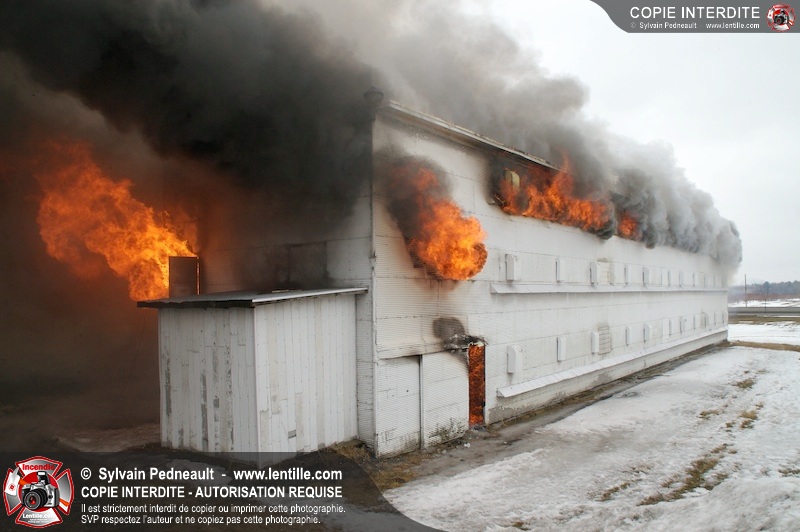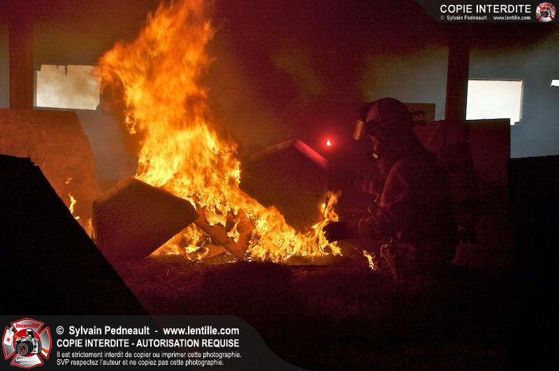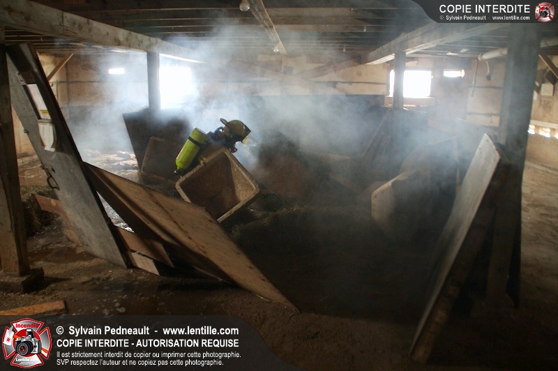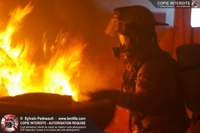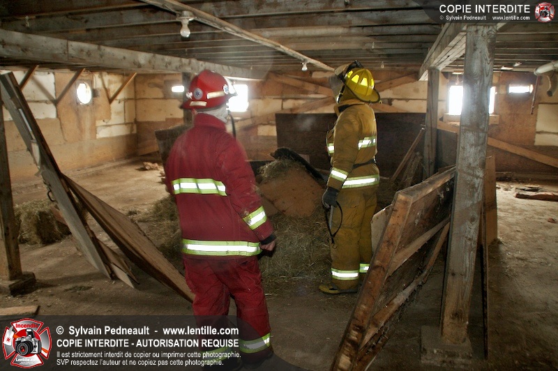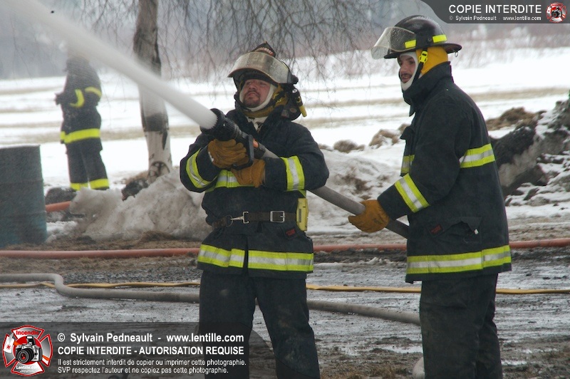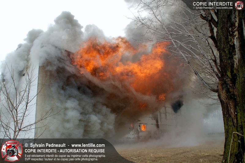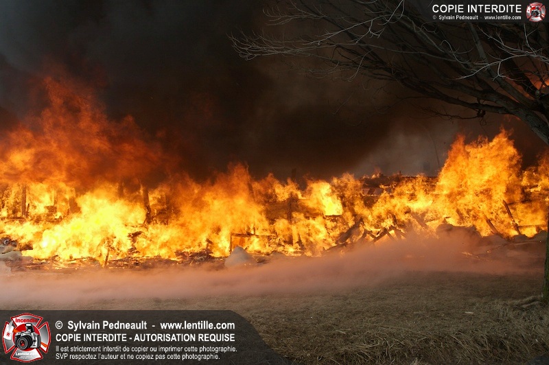 Les pompiers de Rougemont ont organisé une pratique d'incendie réel dans deux poulaillers à l'extrémité de la 4e avenue.