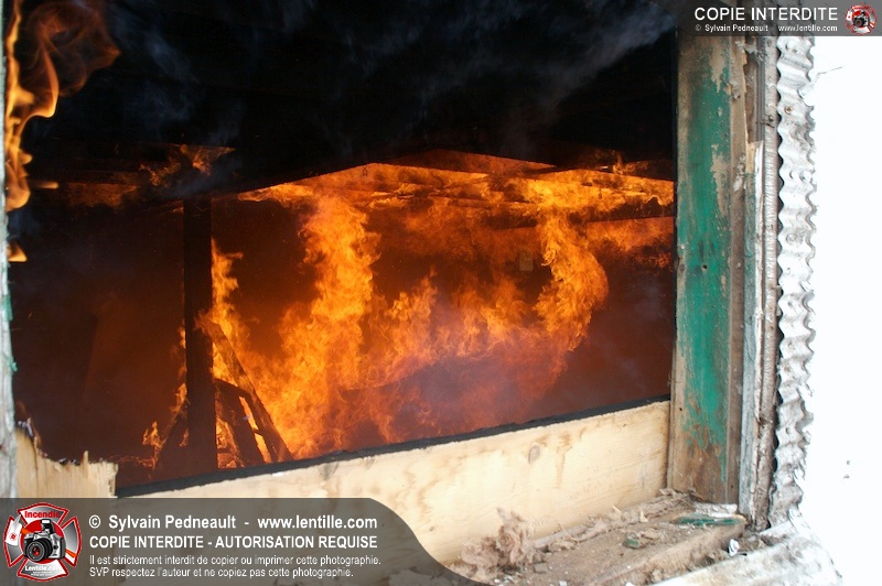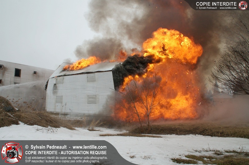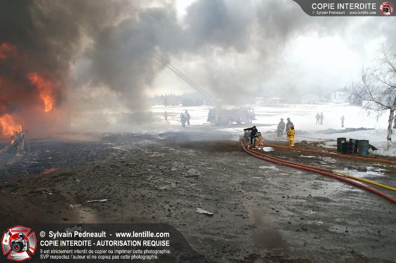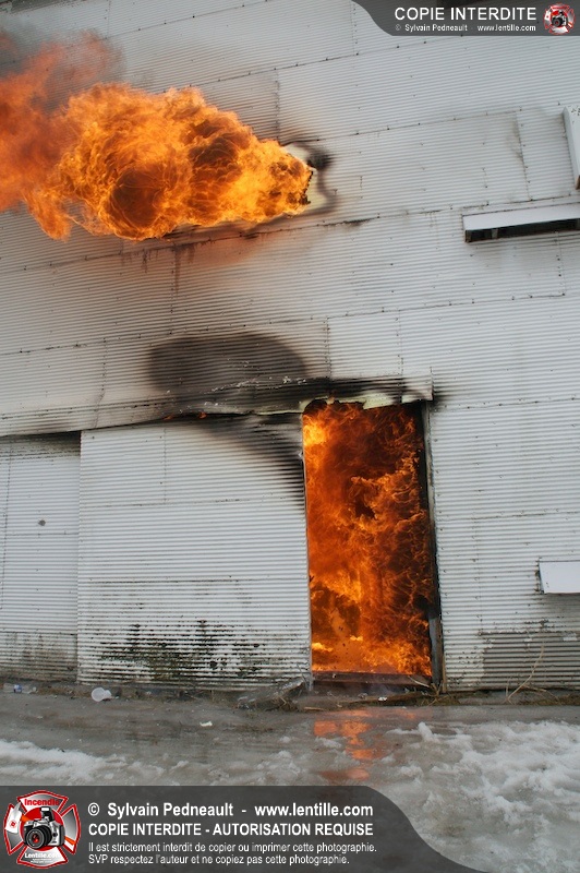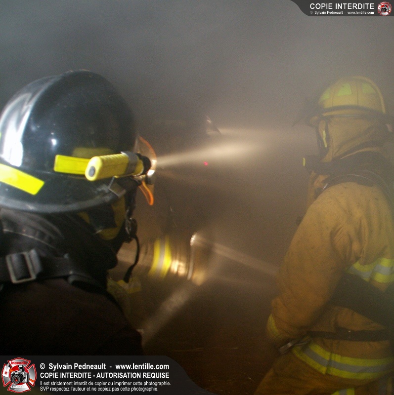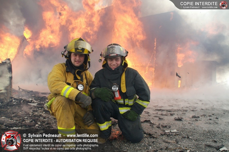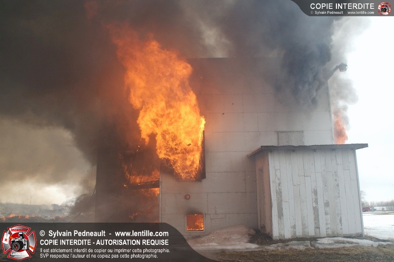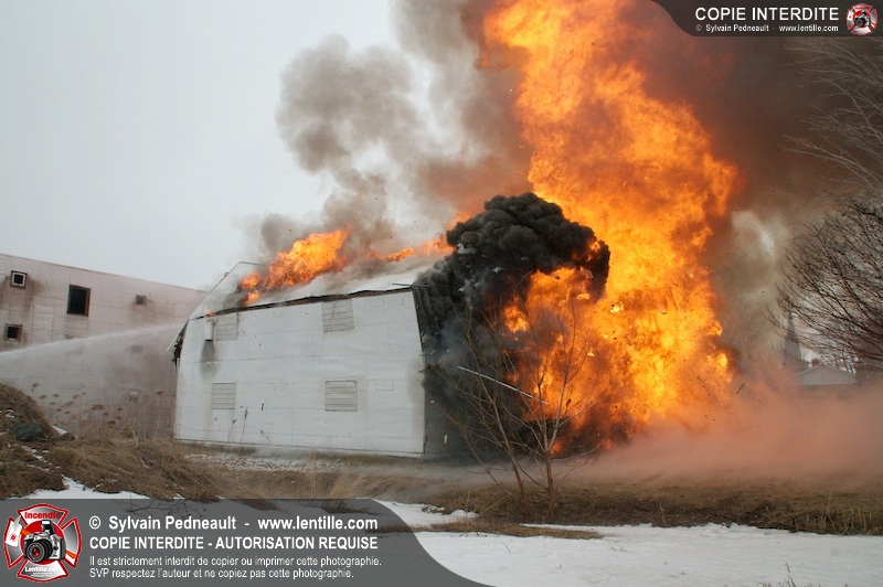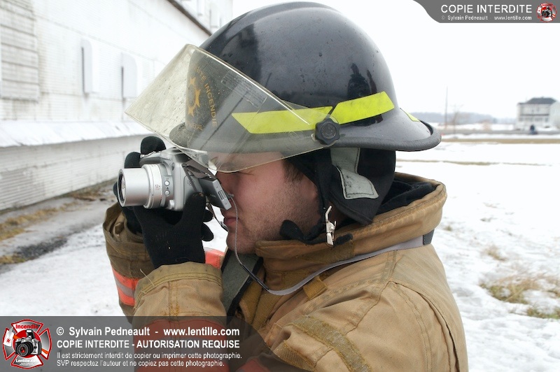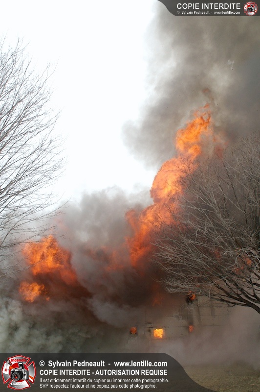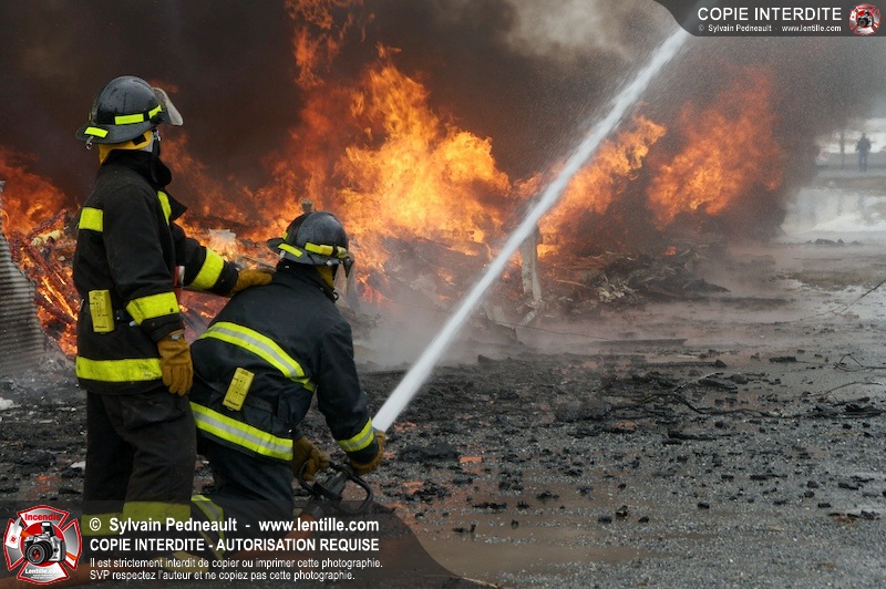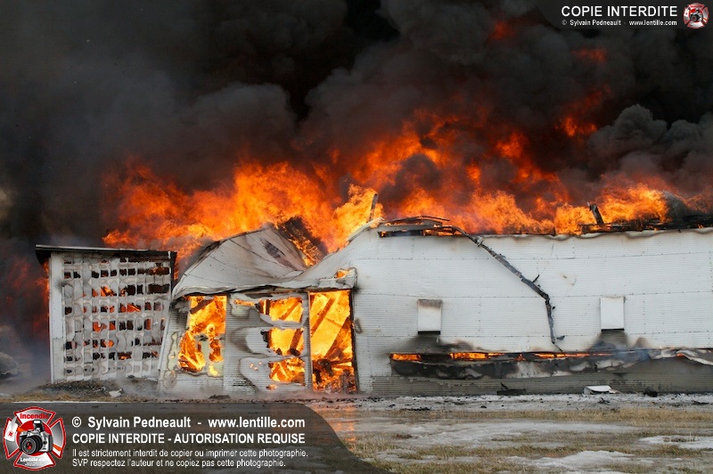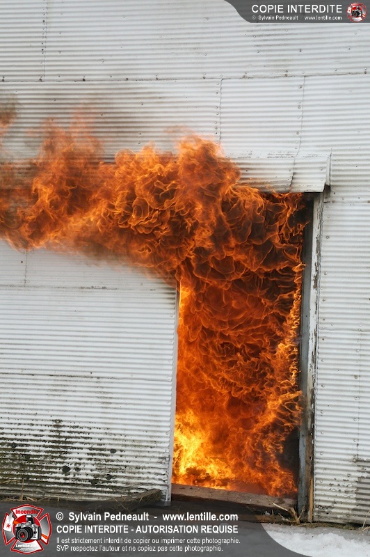 Les pompiers de Rougemont ont organisé une pratique d'incendie réel dans deux poulaillers à l'extrémité de la 4e avenue.