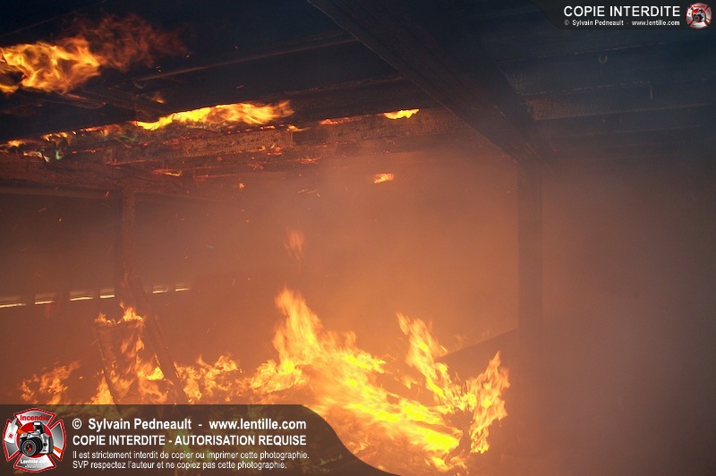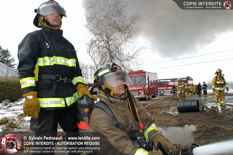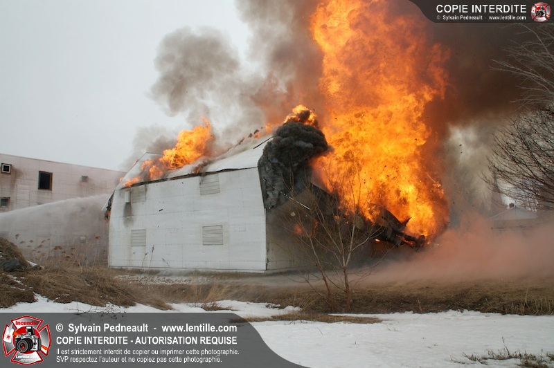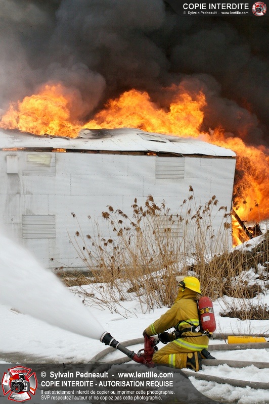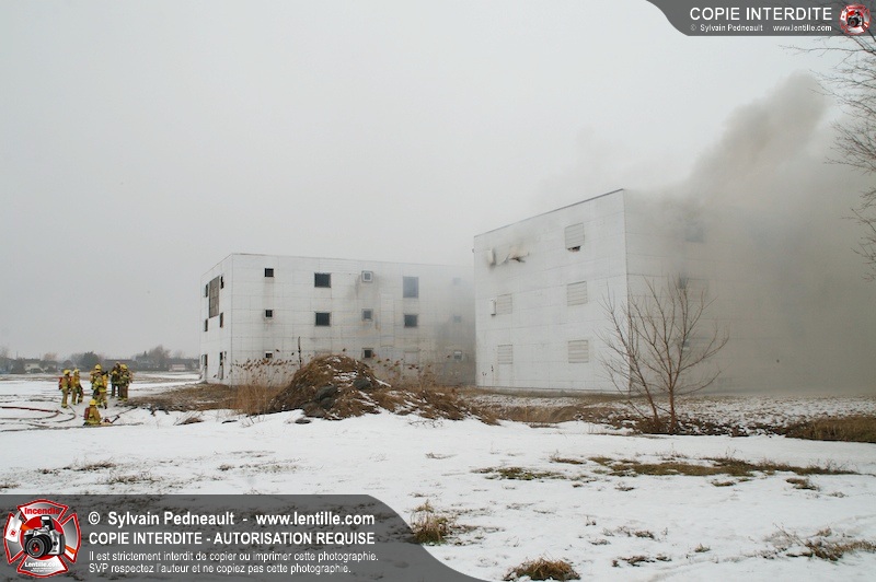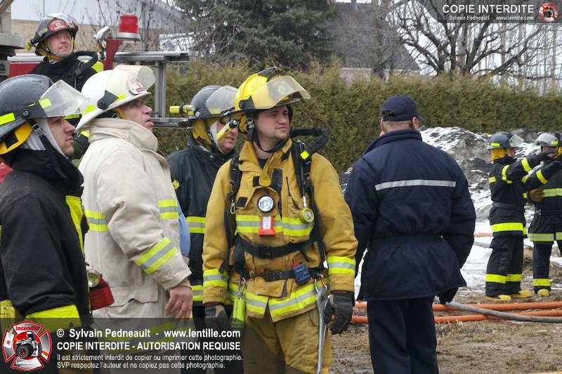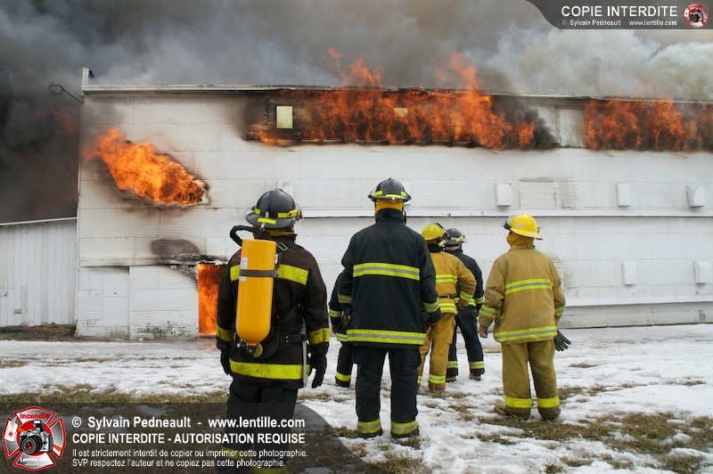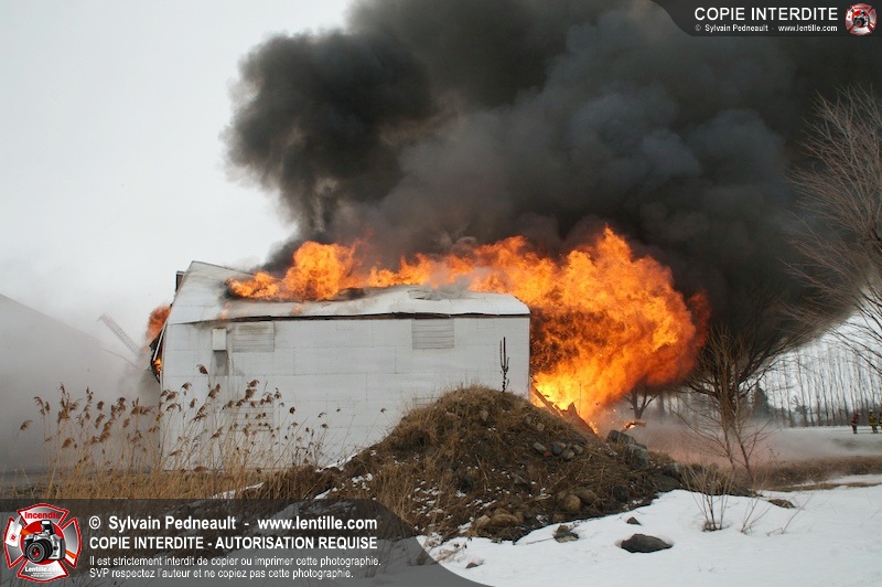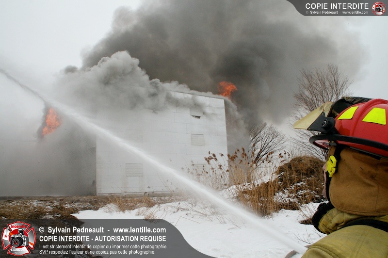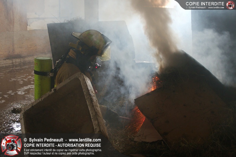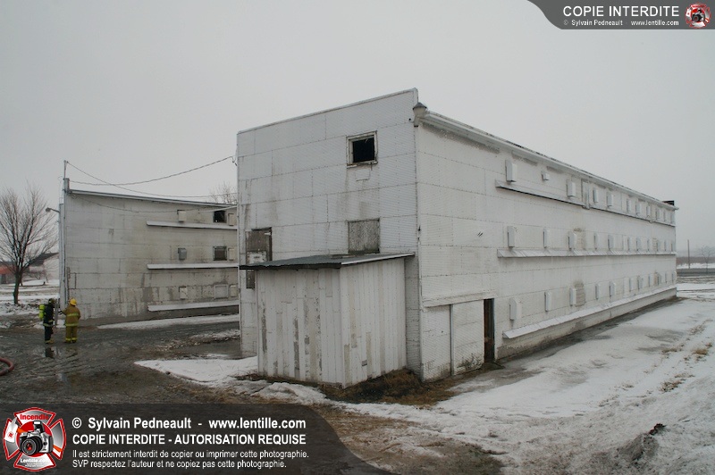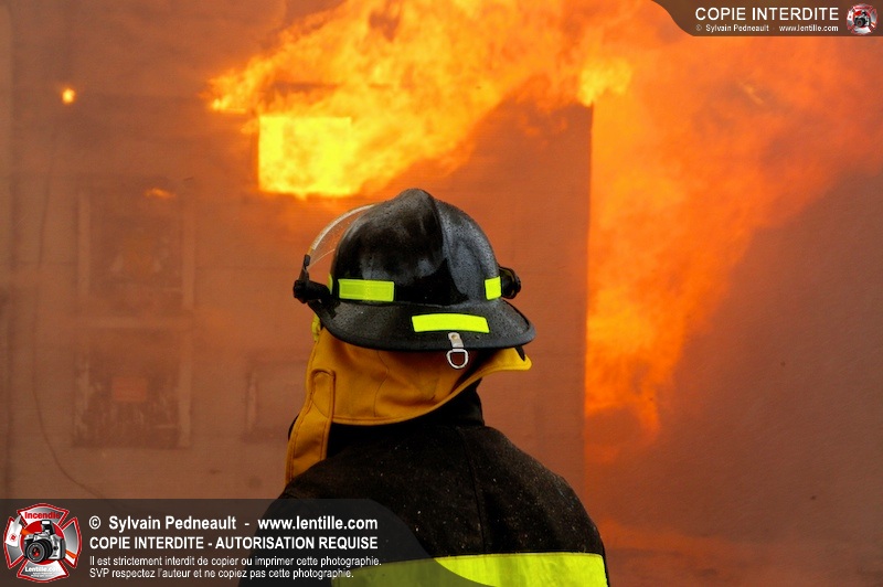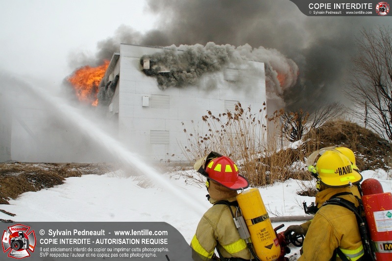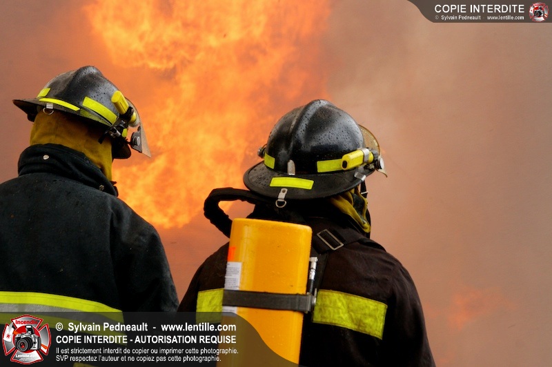 Les pompiers de Rougemont ont organisé une pratique d'incendie réel dans deux poulaillers à l'extrémité de la 4e avenue.