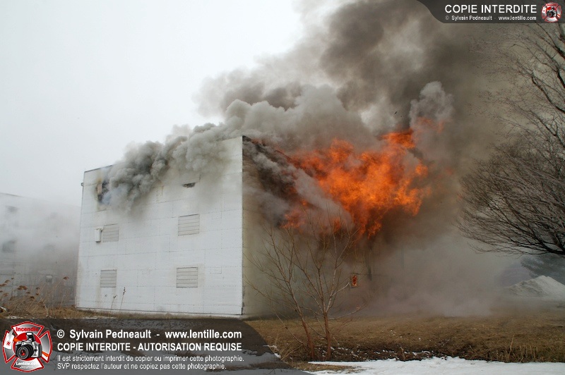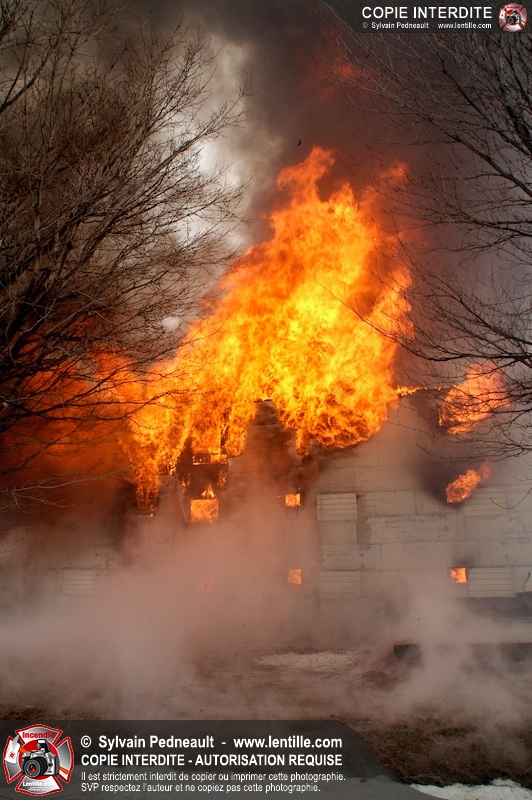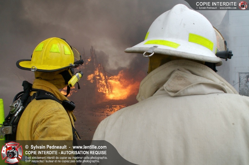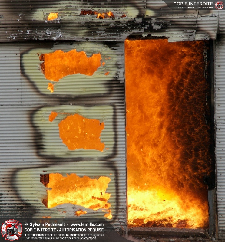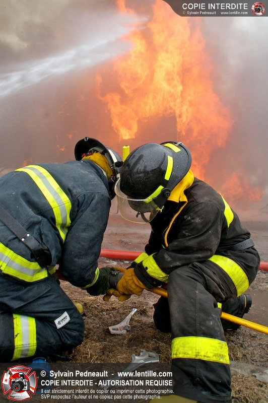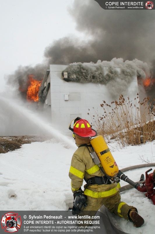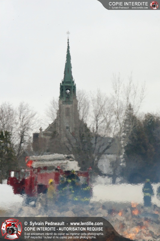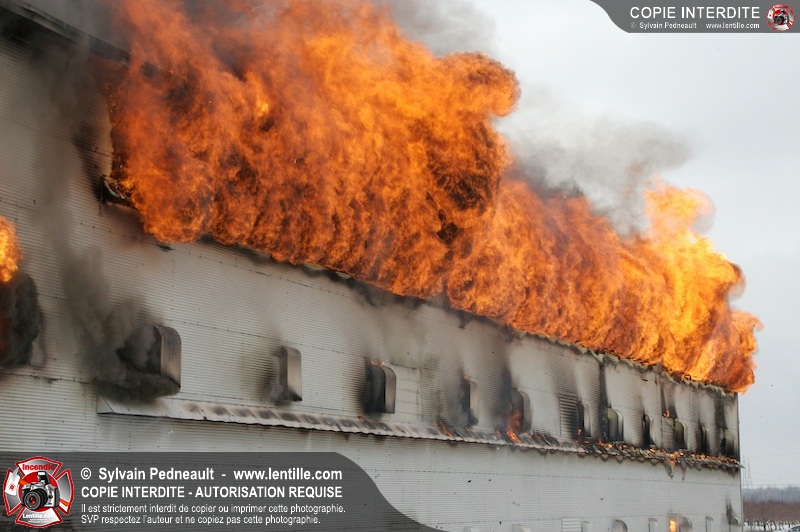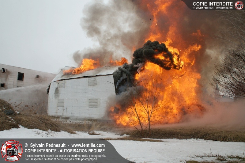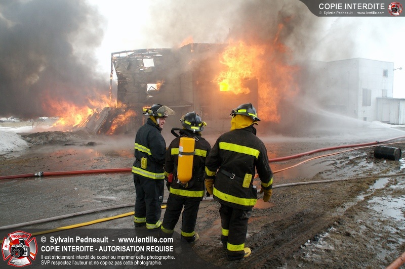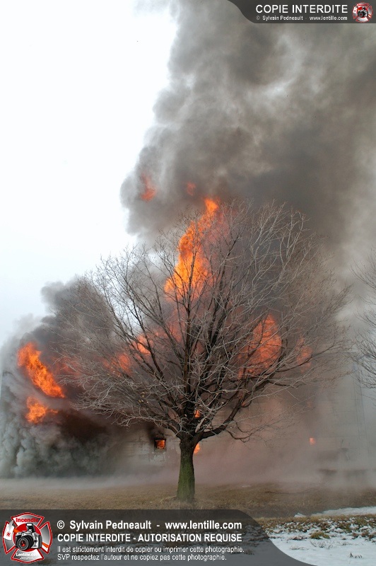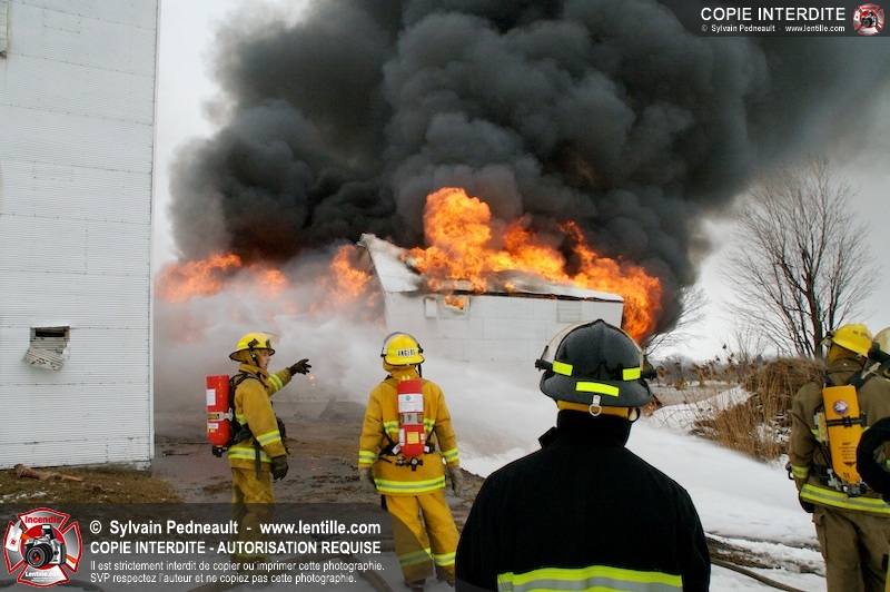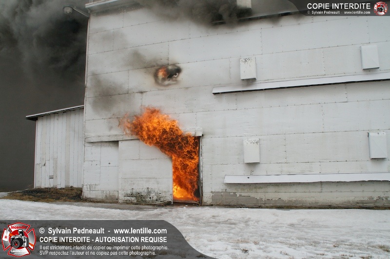 Les pompiers de Rougemont ont organisé une pratique d'incendie réel dans deux poulaillers à l'extrémité de la 4e avenue.