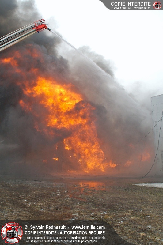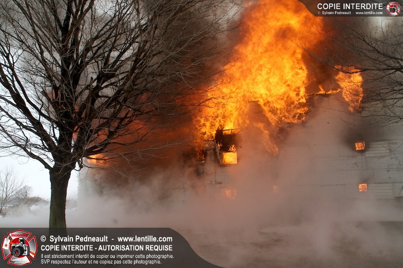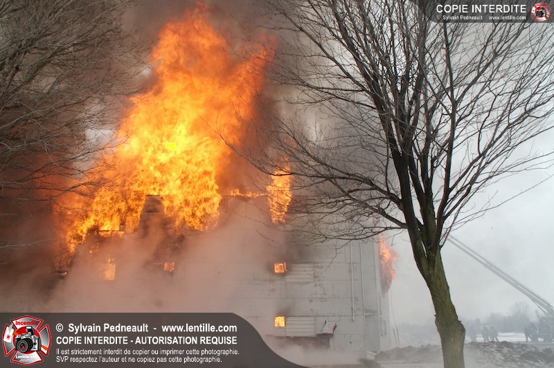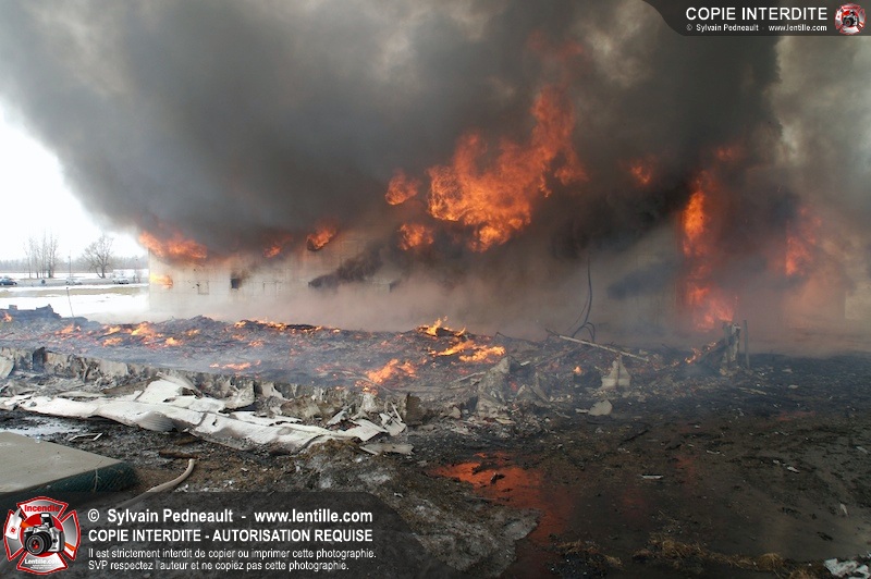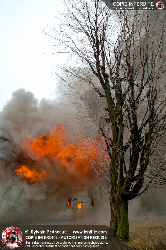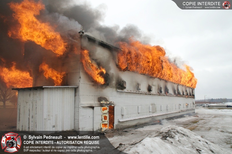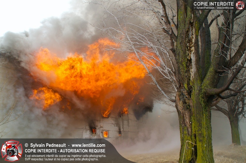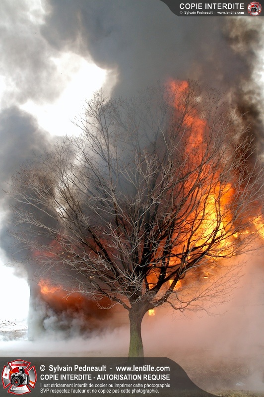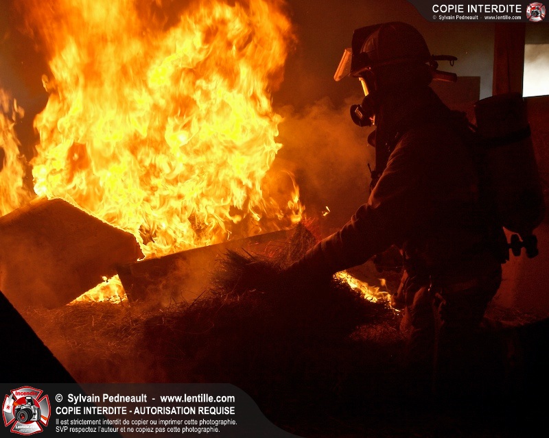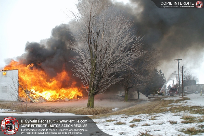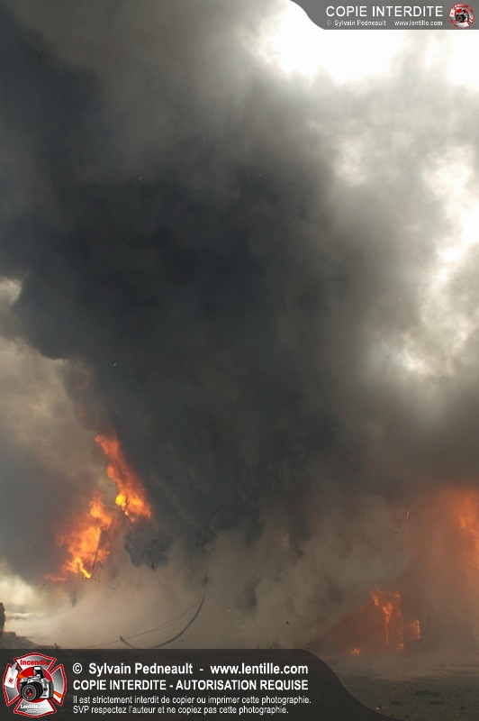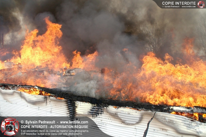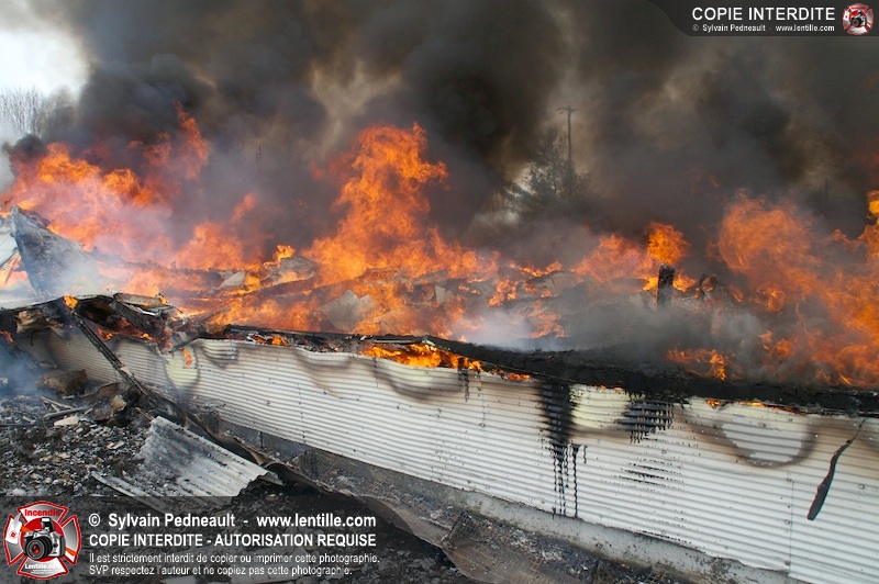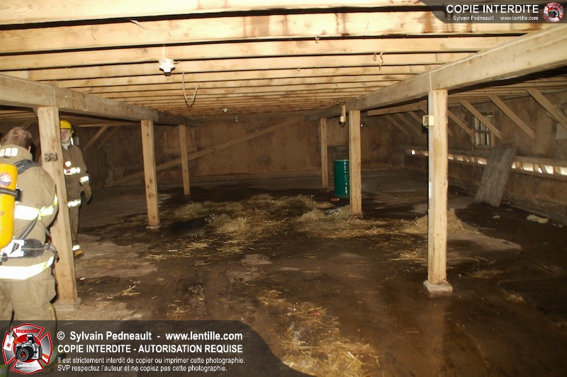 Les pompiers de Rougemont ont organisé une pratique d'incendie réel dans deux poulaillers à l'extrémité de la 4e avenue.