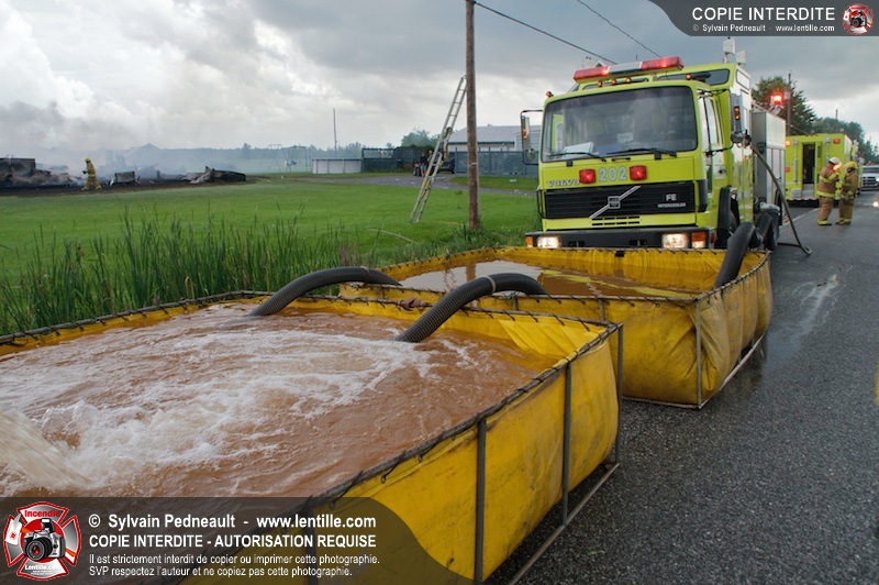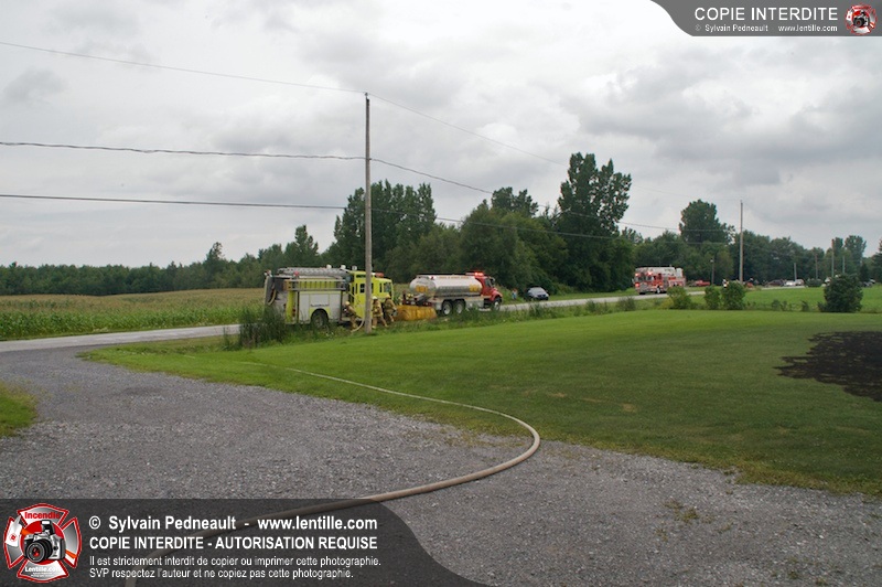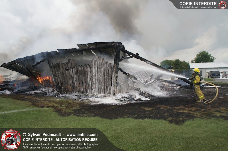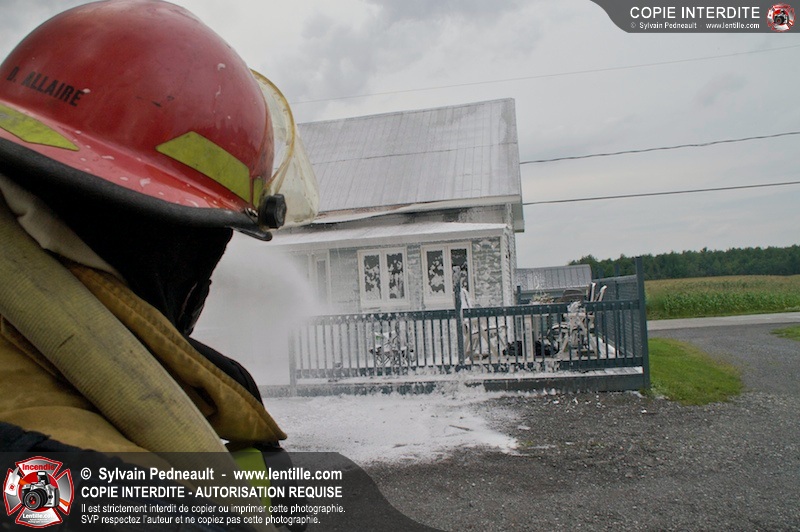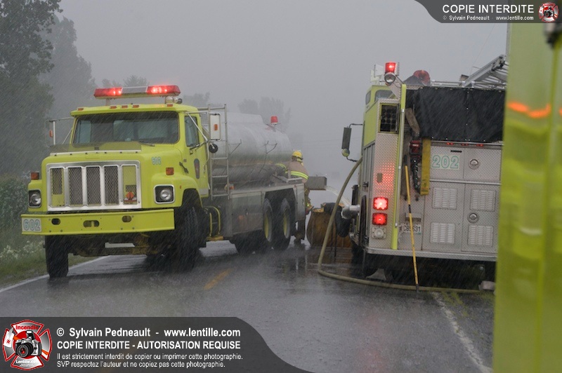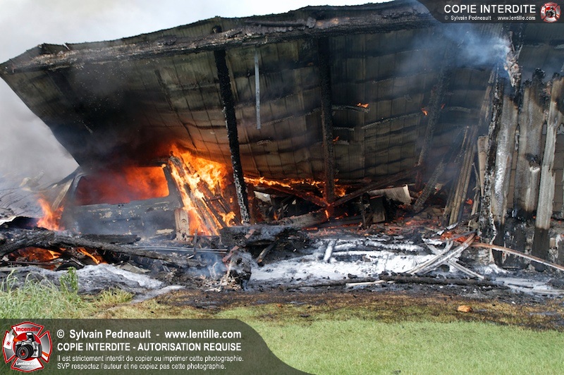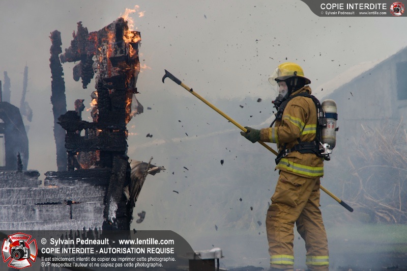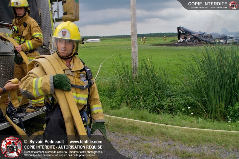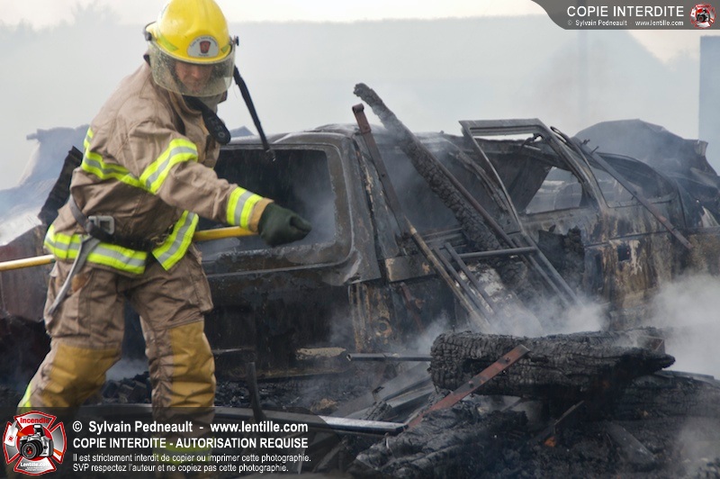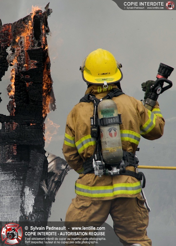Alors qu'un énorme panache de fumée s'élevait dans le ciel de la Ville, les pompiers de Saint-Hyacinthe convergeaient vers le 5e rang à Ste-Rosalie pour combattre un incendie de grange. À l'arrivée de la première unité, le bâtiment impliqué était embrasé à 100% et menaçait une maison, des véhicules et un garage. Grâce au travail de protection amorcé dès leur arrivée, les pompiers ont pu empêcher la propagation de l'incendie et minimiser les dommages collatéraux.