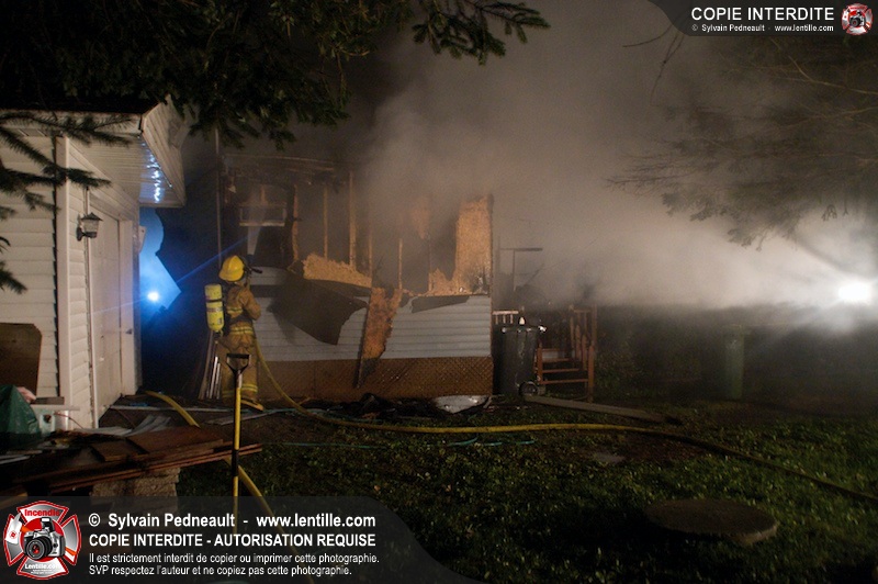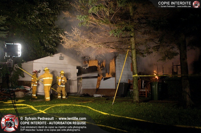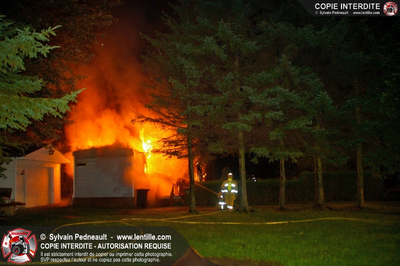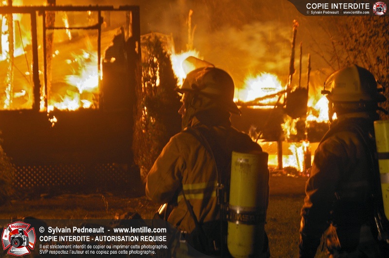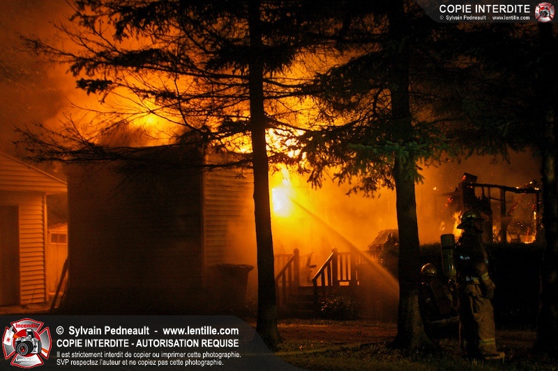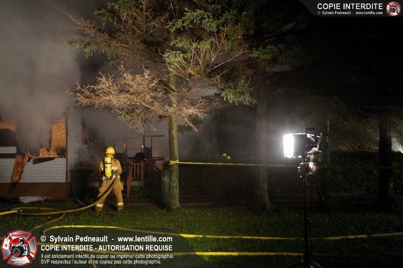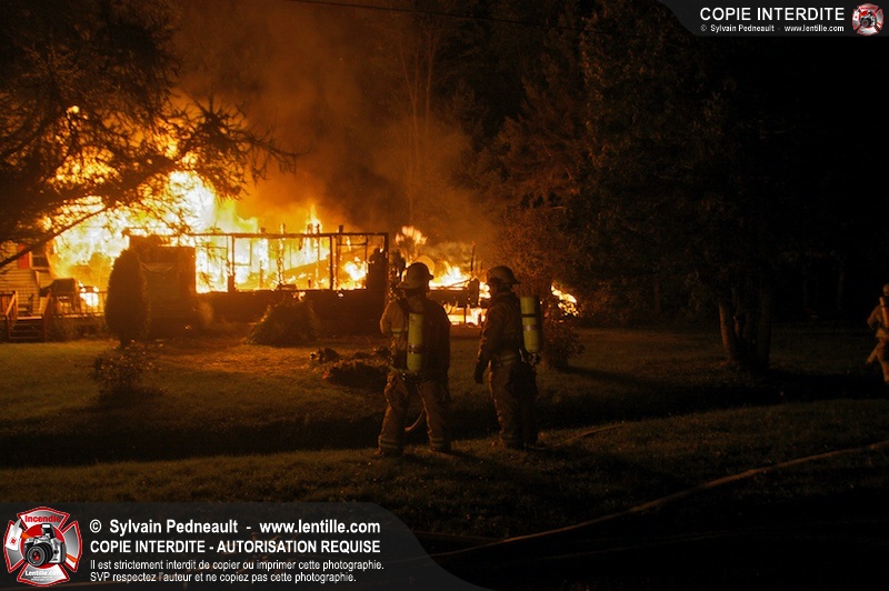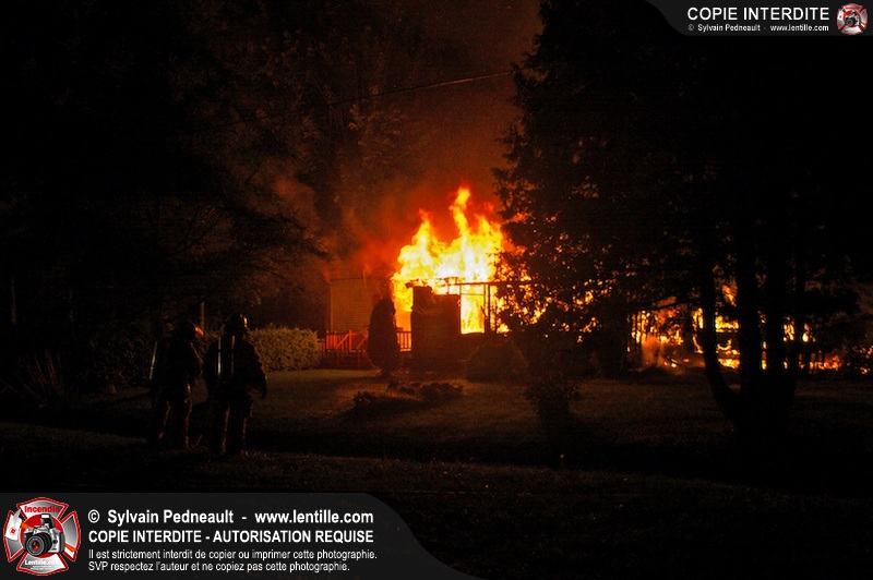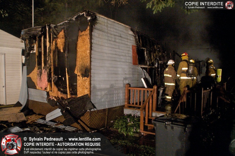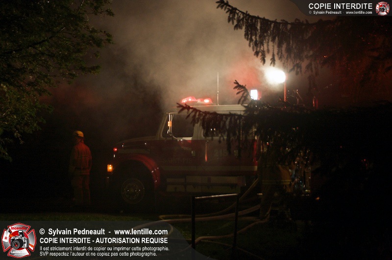 Un incendie a complètement détruit une maison mobile sur la rue des Cèdres à St-Pie. Avant même l'arrivée sur les lieux de la première unité, un 10-07 a été donné puisque l'incendie était visible à bonne distance.