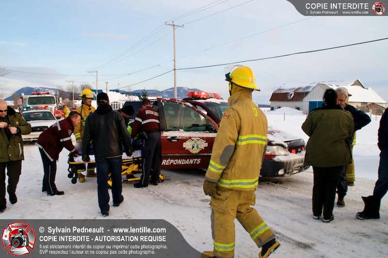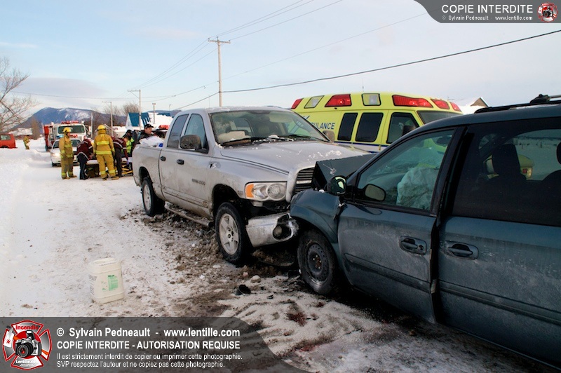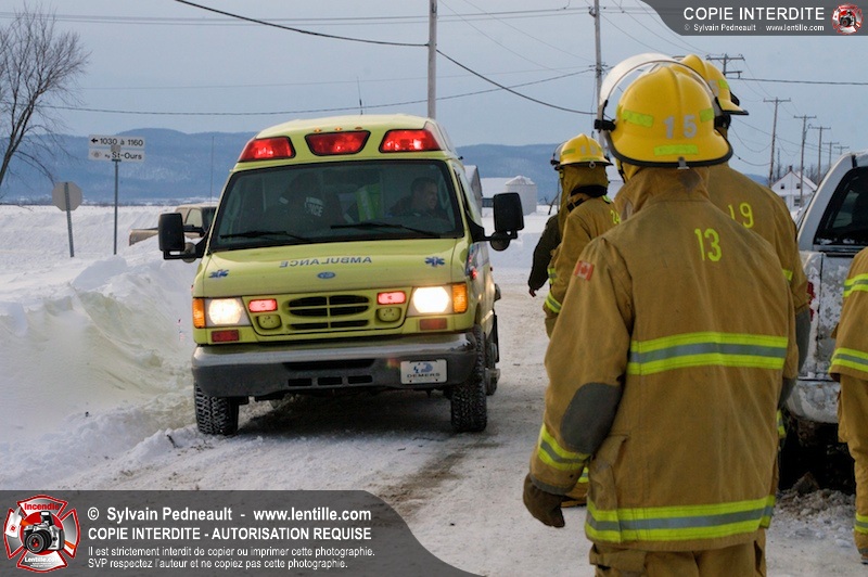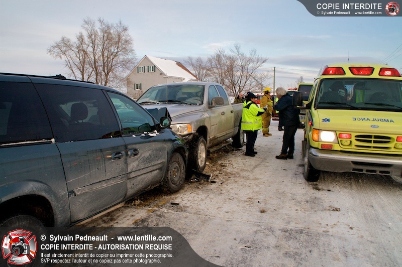 Les pompiers et premiers répondants de St-Pie sont intervenus à l'intersection du Rang Double et du Rang Saint-Ours pour une collision frontale. L'équipe de désincarcération du SSI de Saint-Hyacinthe a été appelé en prévention, mais ses services n'ont pas été requis. Les victimes ont été stabilisées et transportées par les paramédics de Saint-Hyacinthe.
