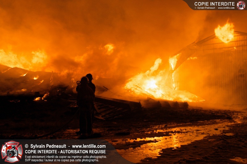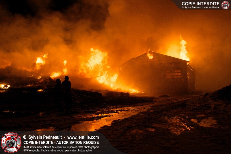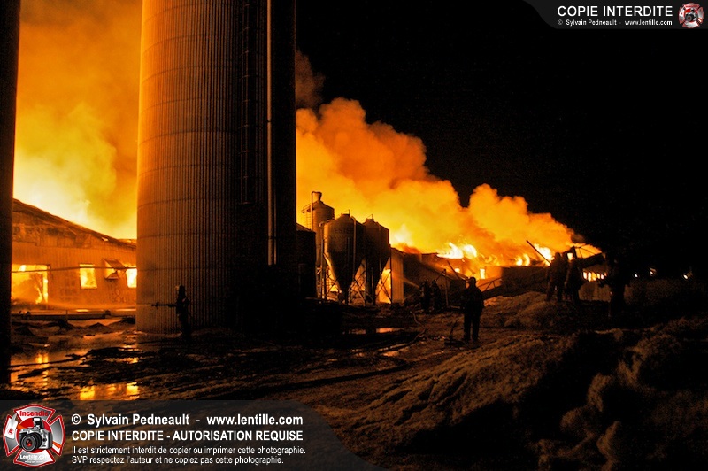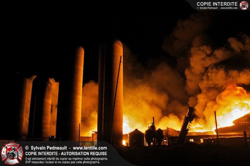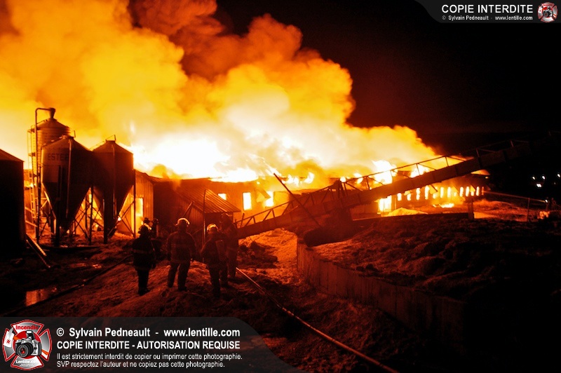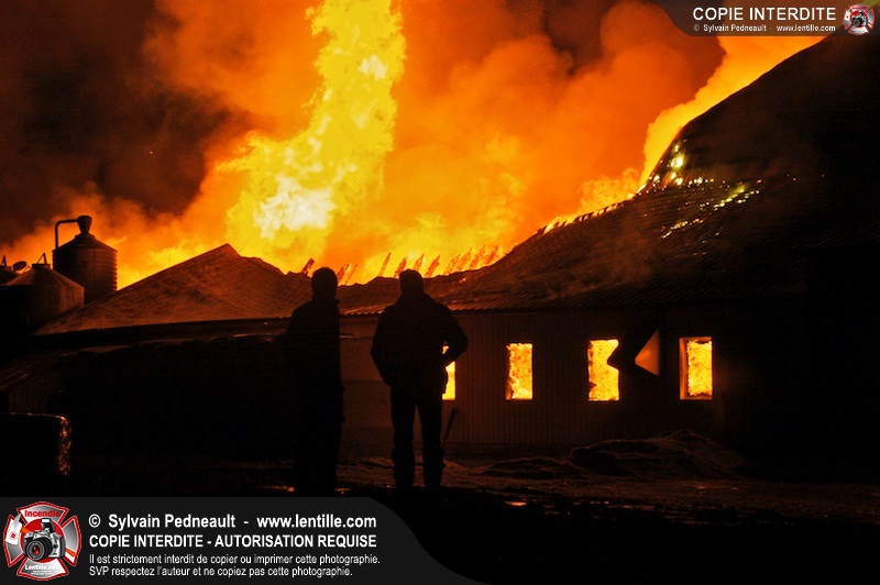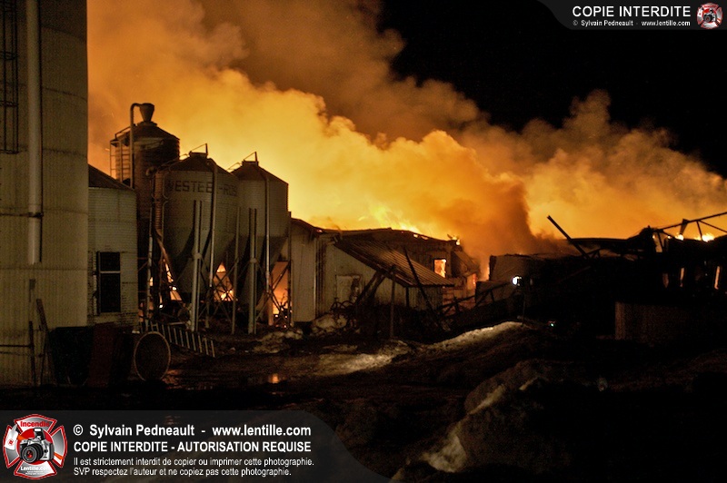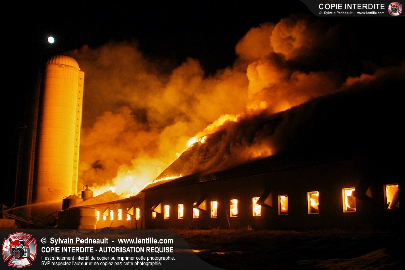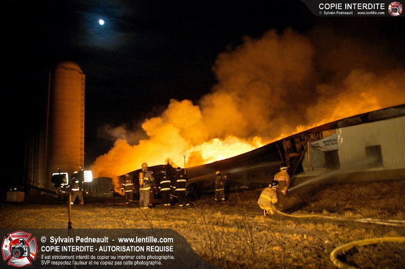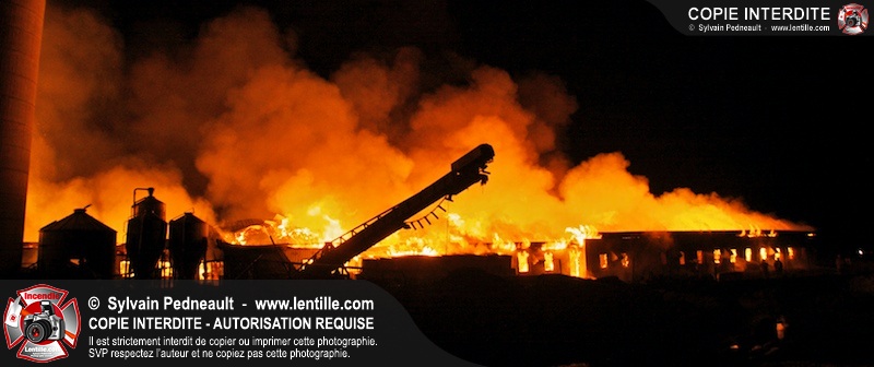 Un incendie majeur a dévasté une imposante ferme sur la route 116 à Upton. Plusieurs services incendie de la région sont venu prêter main forte à leurs collègues d'Upton, dont St-Valérien-de-Milton, St-Liboire et Ste-Hélène-de-Bagot.