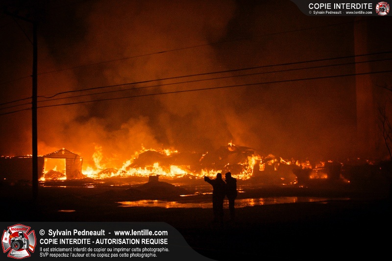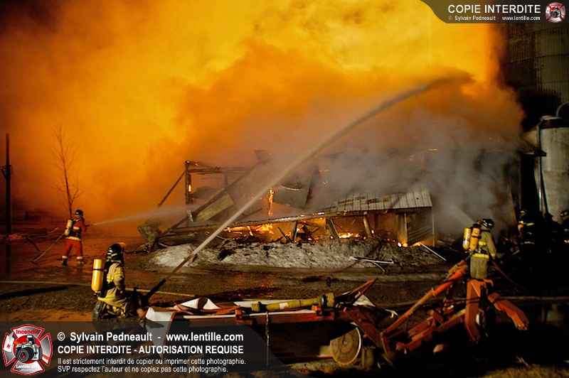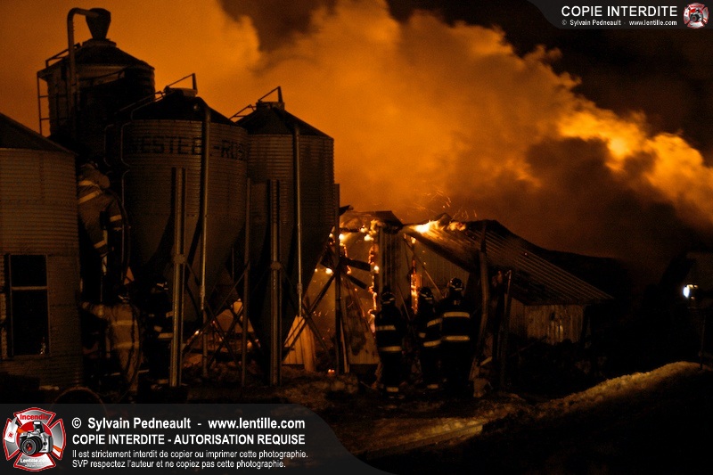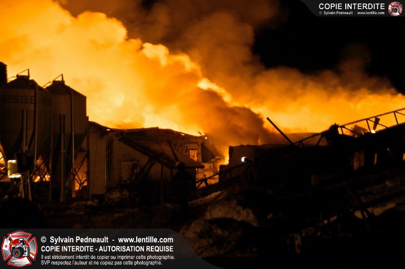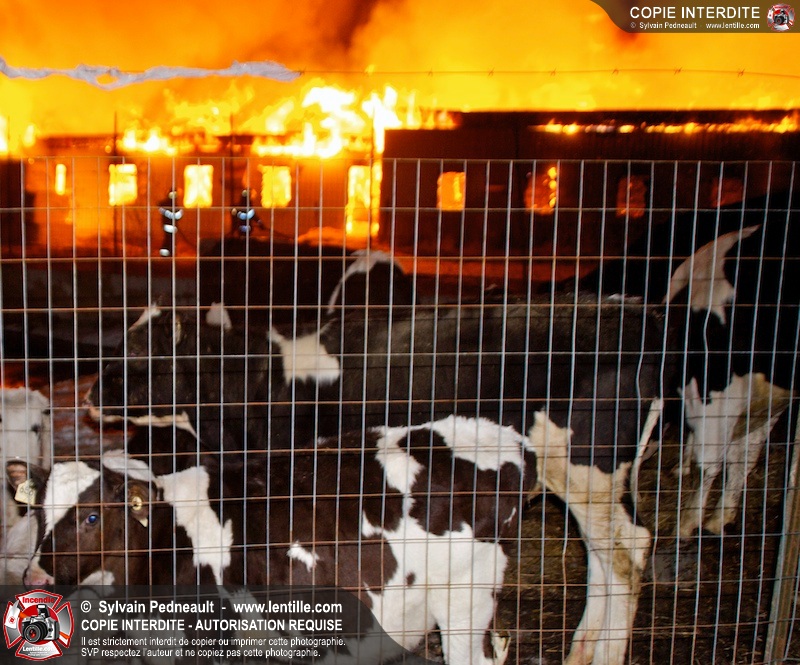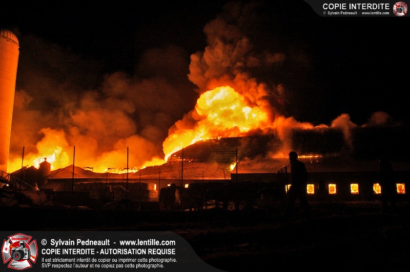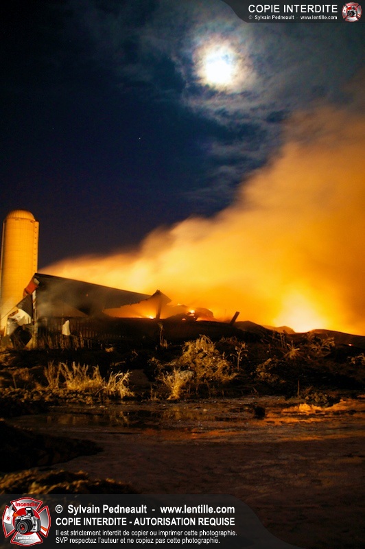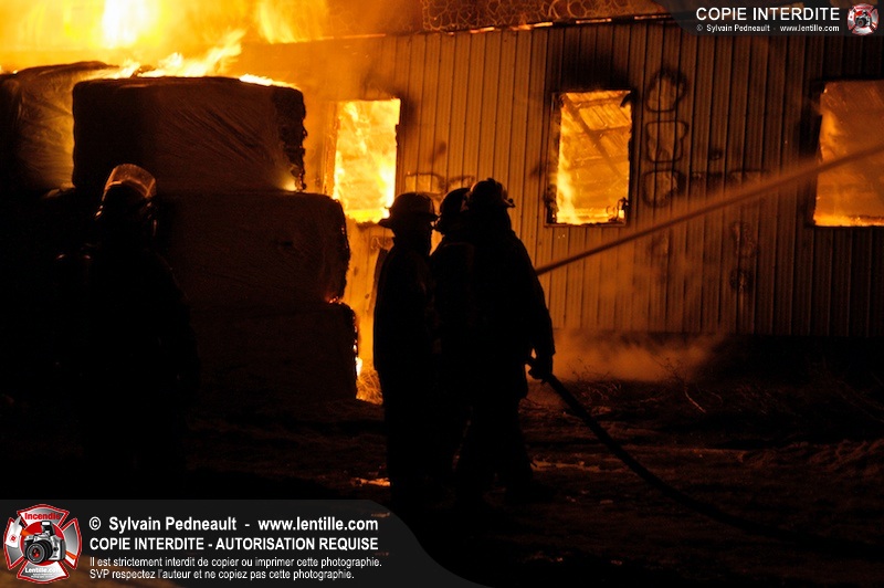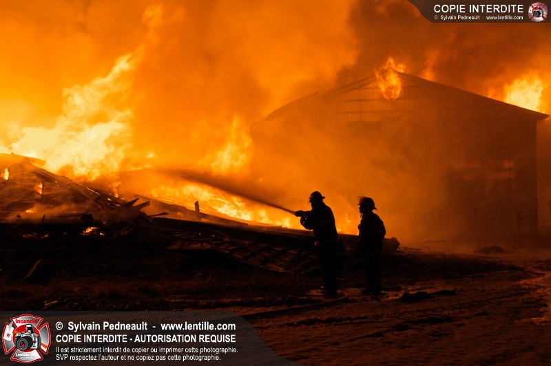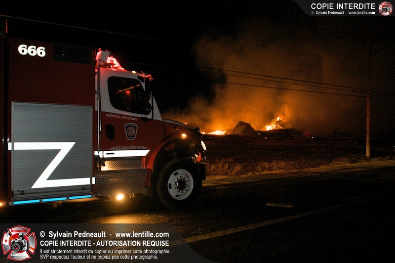 Un incendie majeur a dévasté une imposante ferme sur la route 116 à Upton. Plusieurs services incendie de la région sont venu prêter main forte à leurs collègues d'Upton, dont St-Valérien-de-Milton, St-Liboire et Ste-Hélène-de-Bagot.