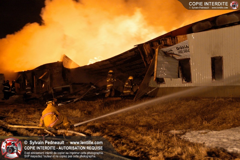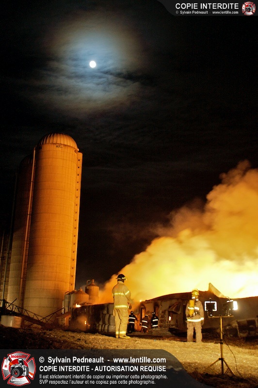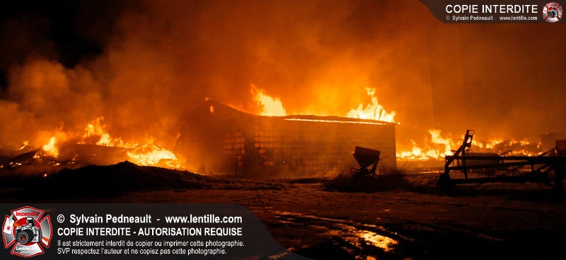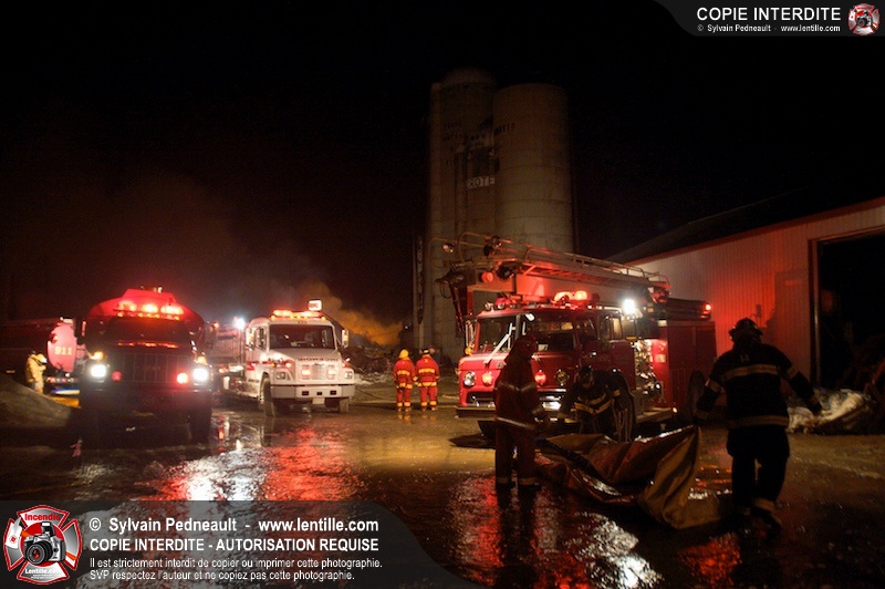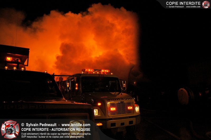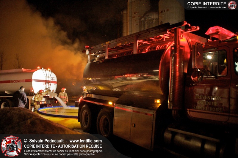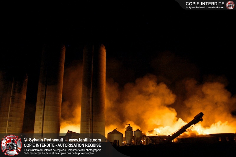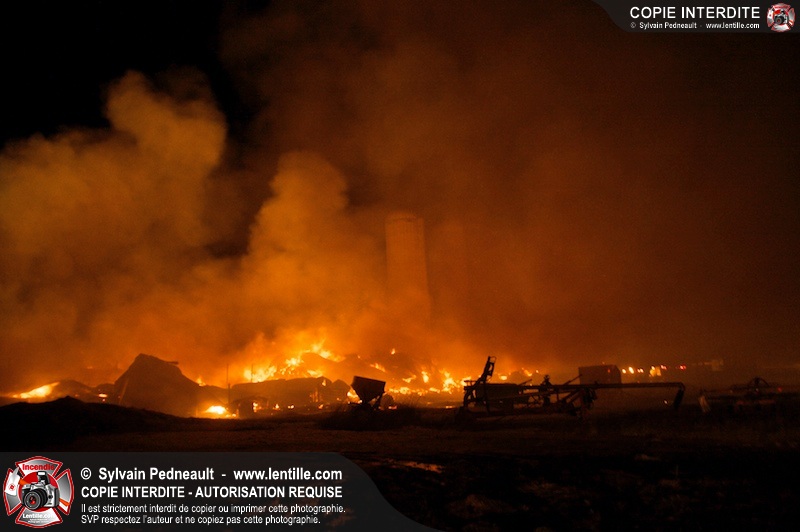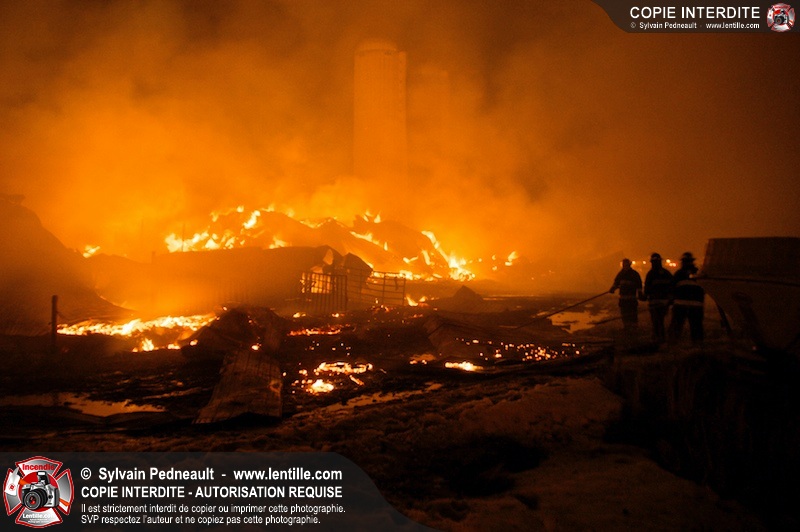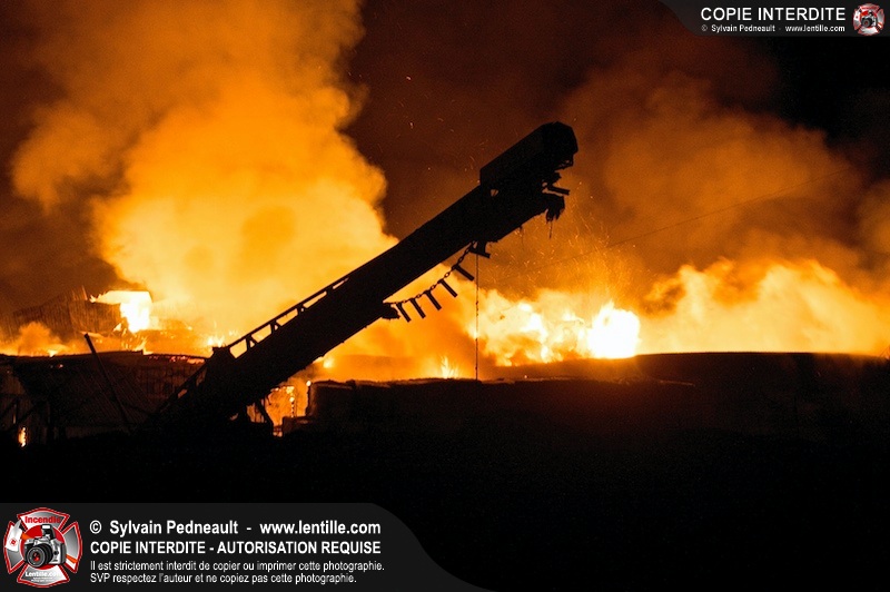 Un incendie majeur a dévasté une imposante ferme sur la route 116 à Upton. Plusieurs services incendie de la région sont venu prêter main forte à leurs collègues d'Upton, dont St-Valérien-de-Milton, St-Liboire et Ste-Hélène-de-Bagot.
