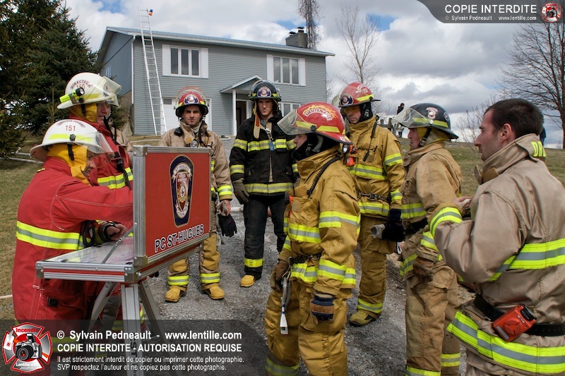 Les pompiers de St.Hugues ont organisé une pratique d'incendie dans une maison construite il y a à peine vingt-et-un ans. Les pompiers ont pu vivre deux mises à feu réelles, dont une faisant l'objet d'une attaque intérieure, d'une recherche de victime et d'une extinction complète.