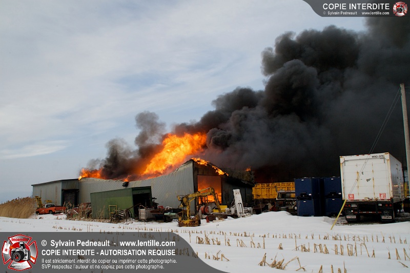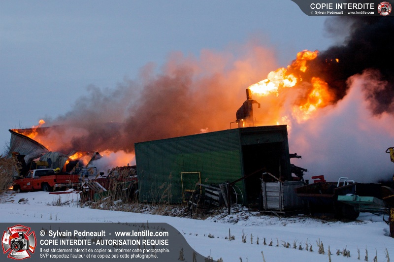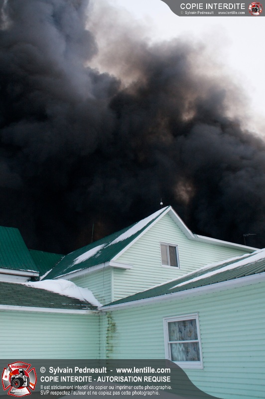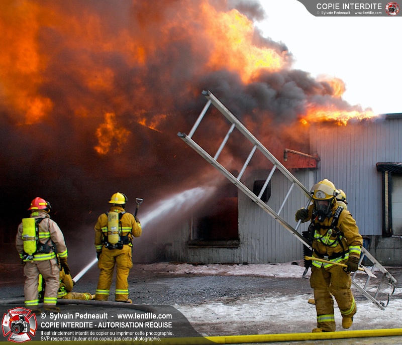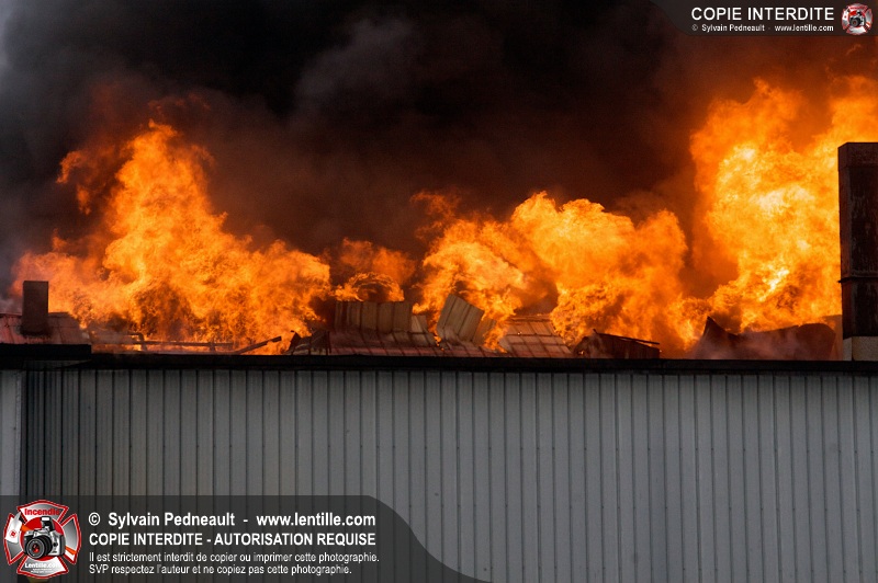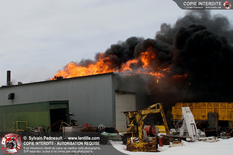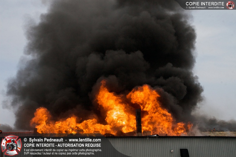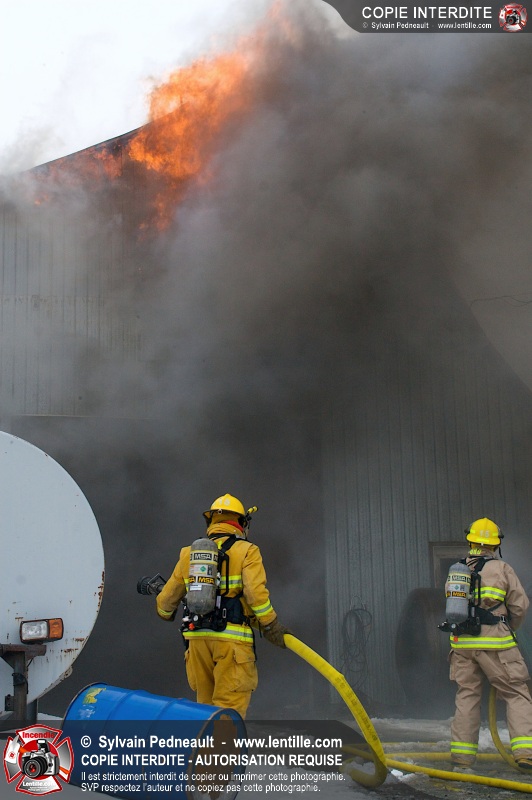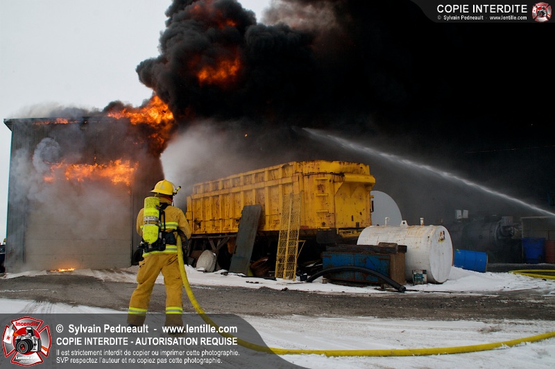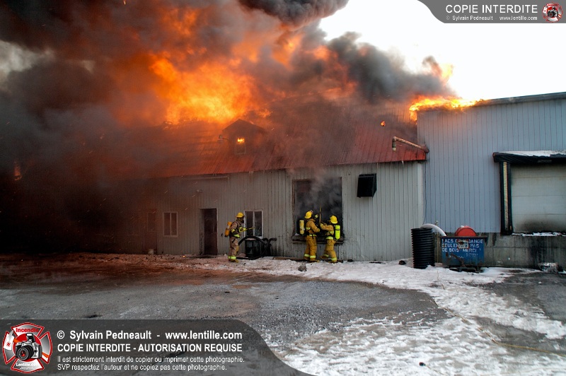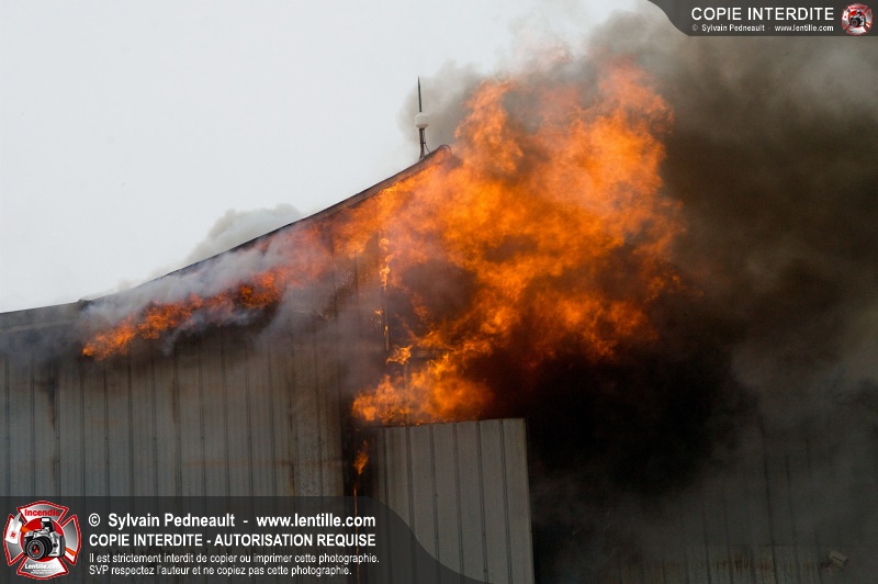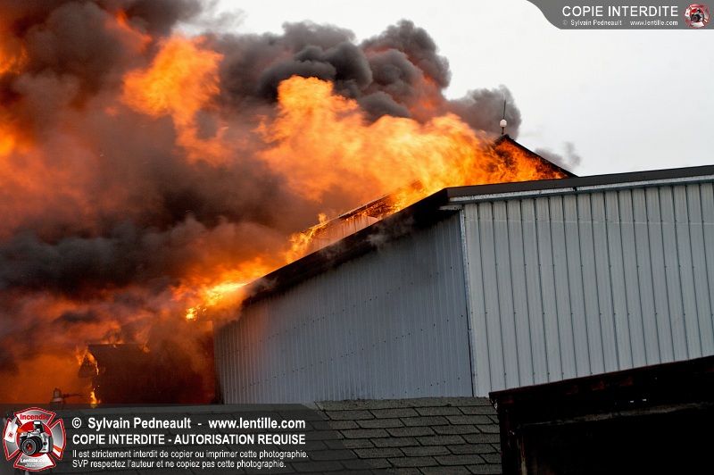 Un violent incendie a complètement détruit une industrie du Rang du Haut-de-la-Rivière-Nord à St-Pie. Malgré une attaque agressive synchronisée à l'opération de ventilation, il n'y avait malheureusement rien à faire pour contrer la propagation très rapide des flammes.