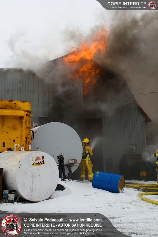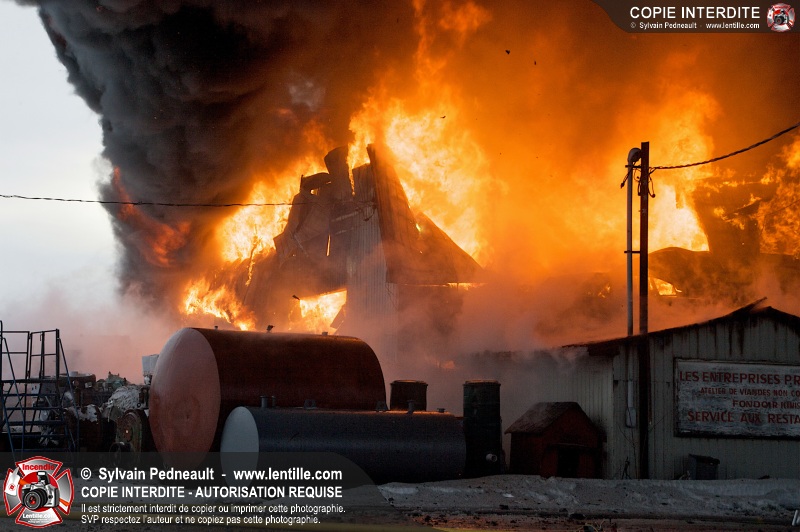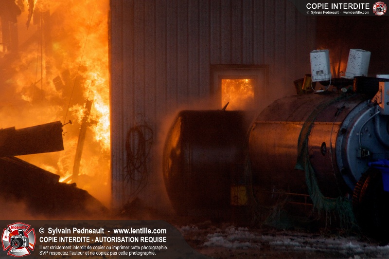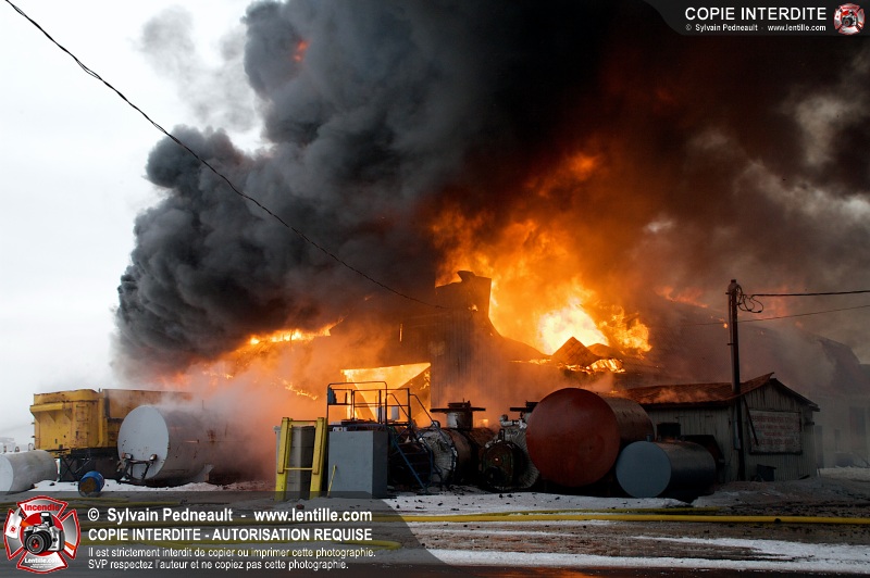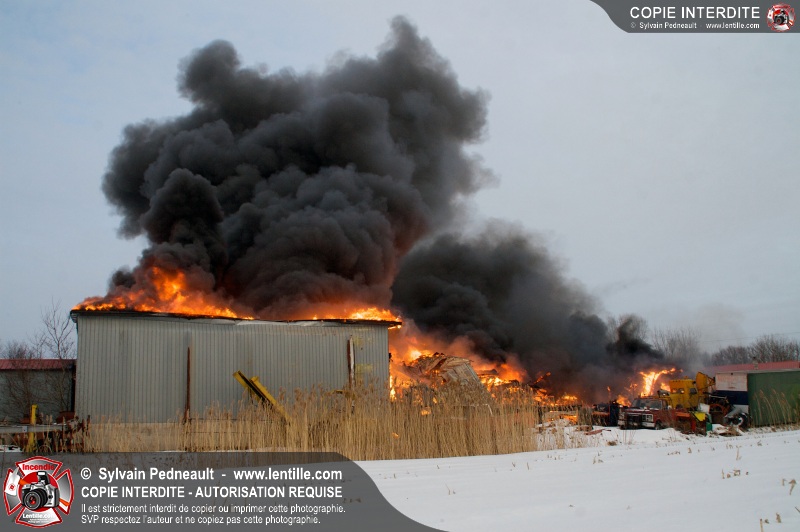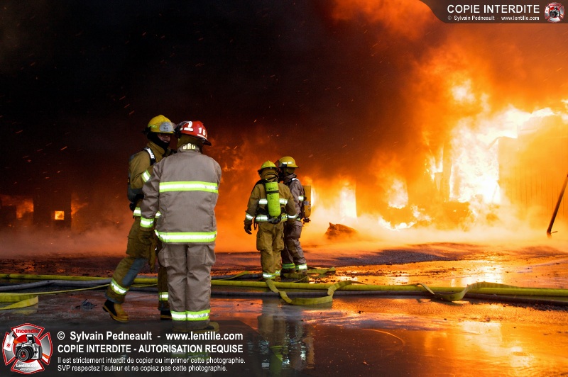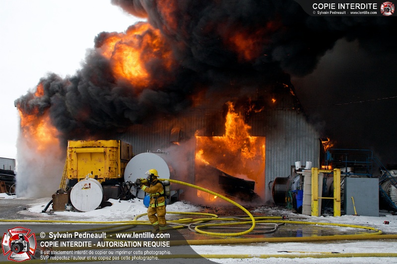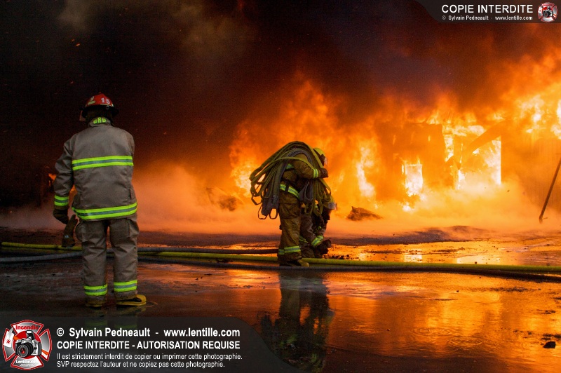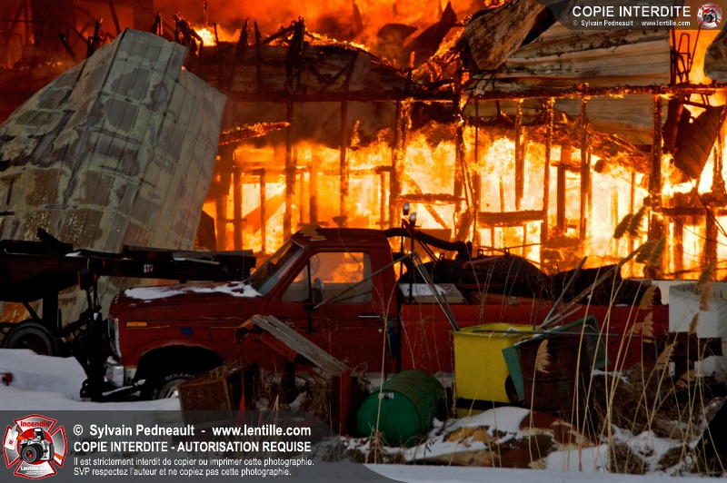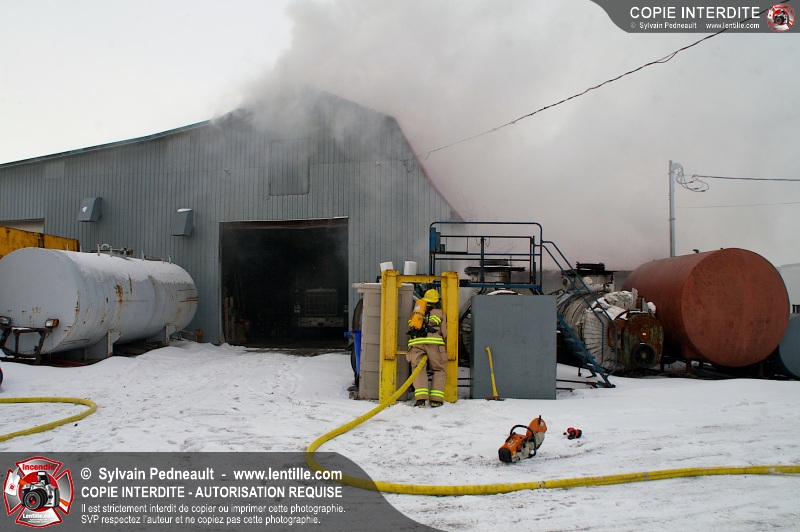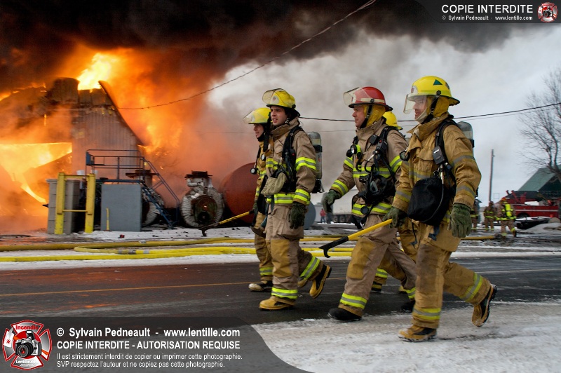 Un violent incendie a complètement détruit une industrie du Rang du Haut-de-la-Rivière-Nord à St-Pie. Malgré une attaque agressive synchronisée à l'opération de ventilation, il n'y avait malheureusement rien à faire pour contrer la propagation très rapide des flammes.
