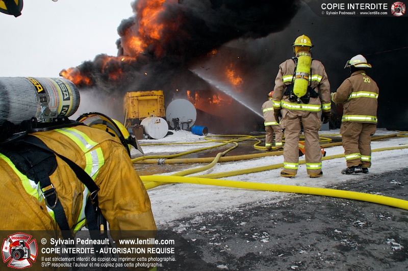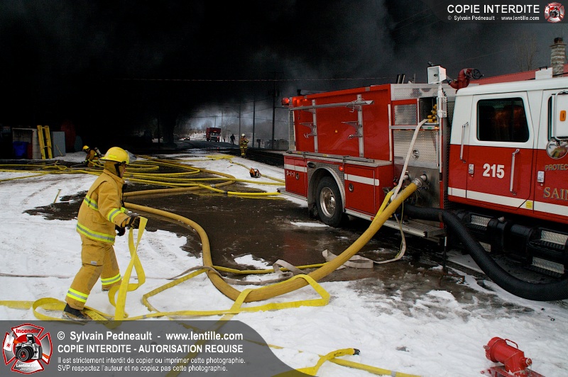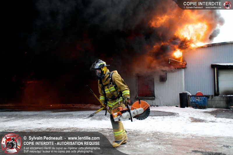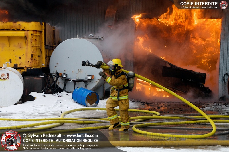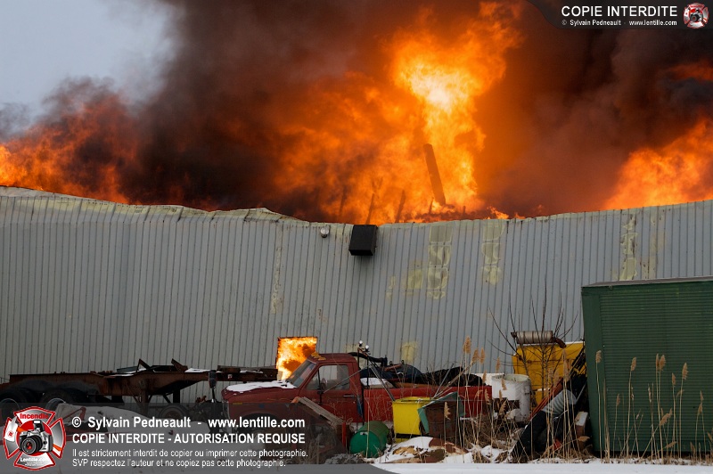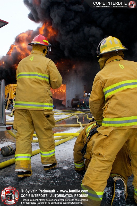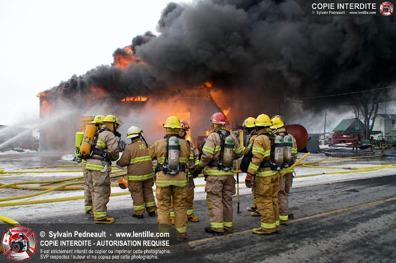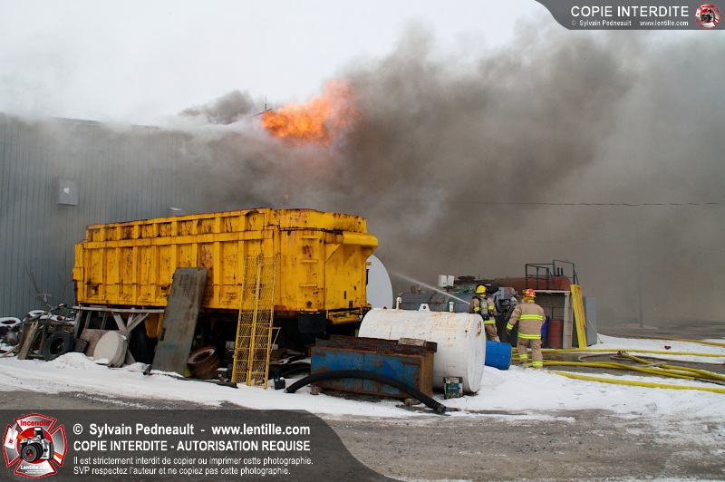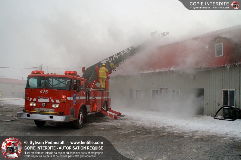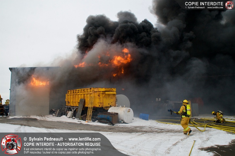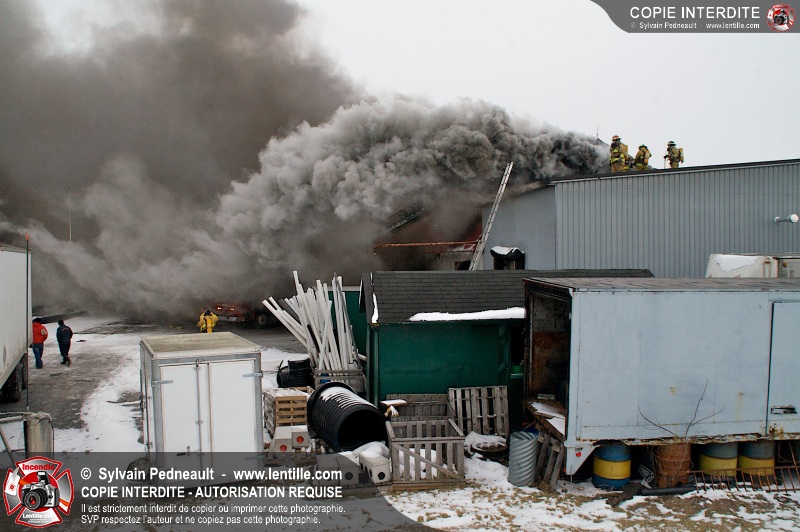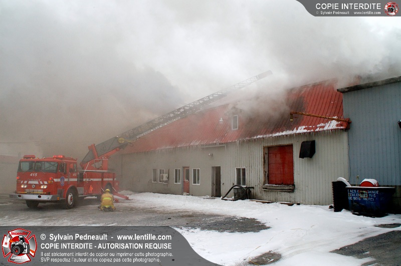 Un violent incendie a complètement détruit une industrie du Rang du Haut-de-la-Rivière-Nord à St-Pie. Malgré une attaque agressive synchronisée à l'opération de ventilation, il n'y avait malheureusement rien à faire pour contrer la propagation très rapide des flammes.