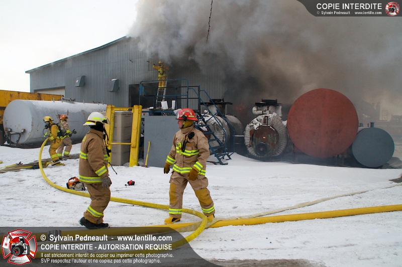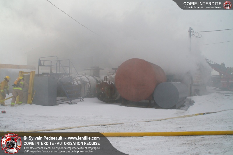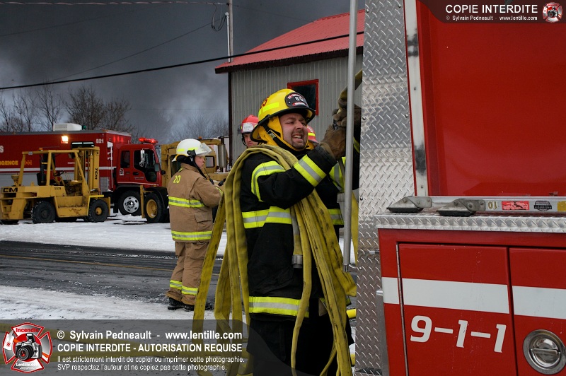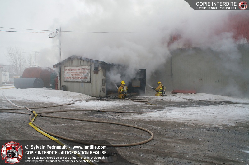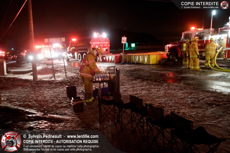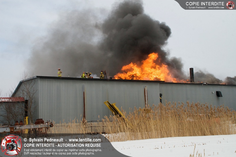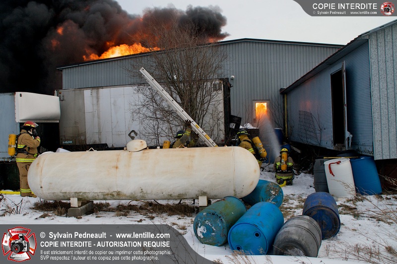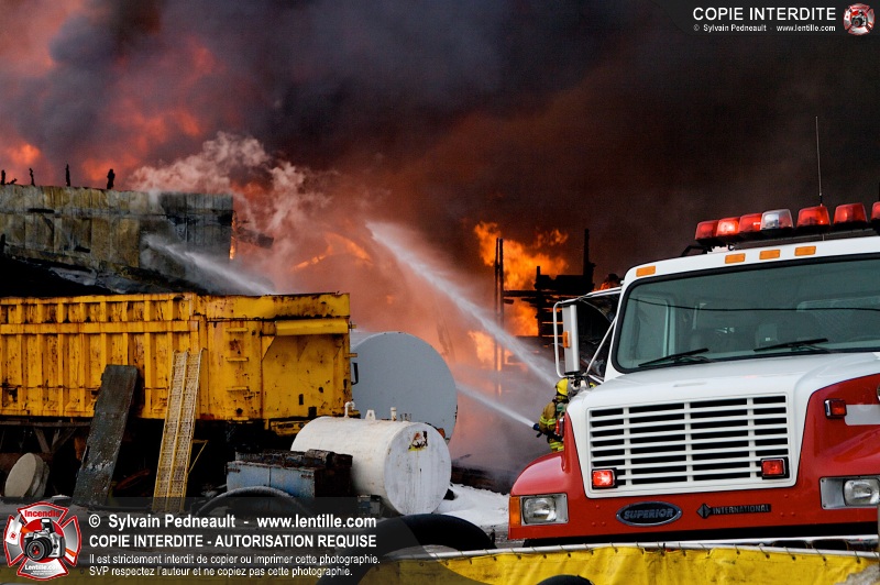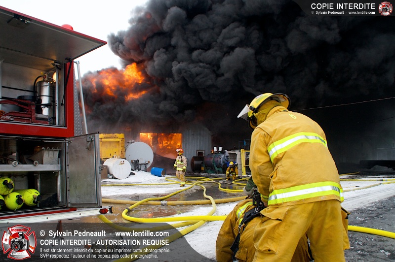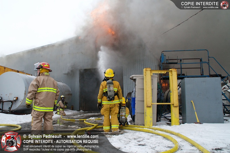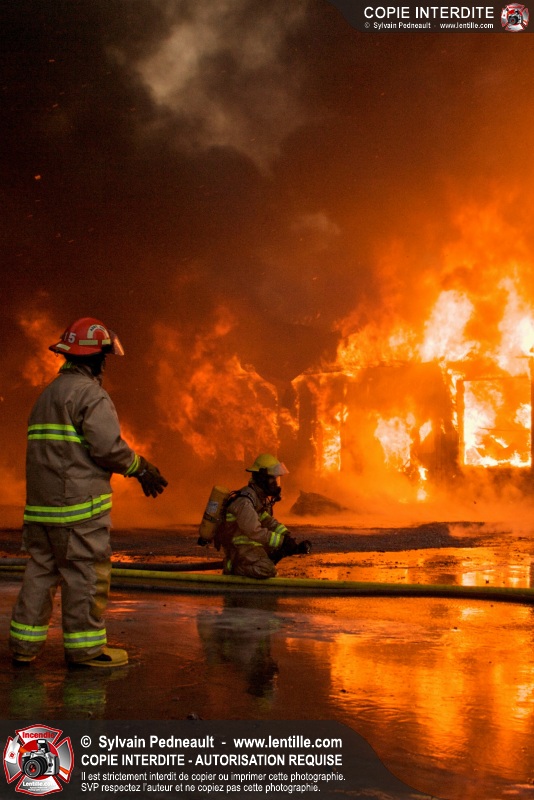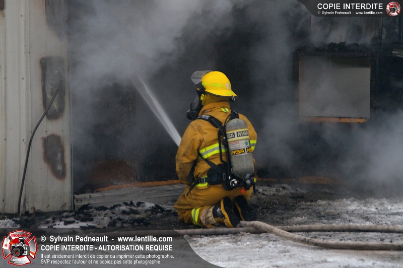 Un violent incendie a complètement détruit une industrie du Rang du Haut-de-la-Rivière-Nord à St-Pie. Malgré une attaque agressive synchronisée à l'opération de ventilation, il n'y avait malheureusement rien à faire pour contrer la propagation très rapide des flammes.