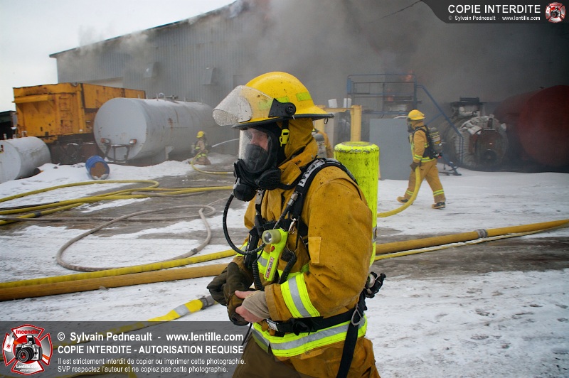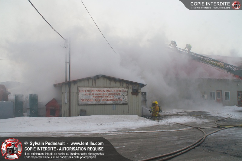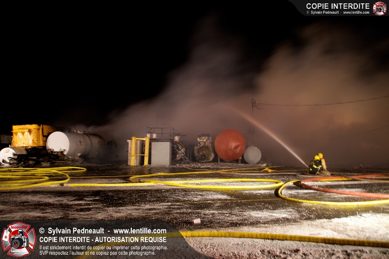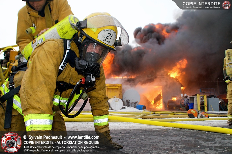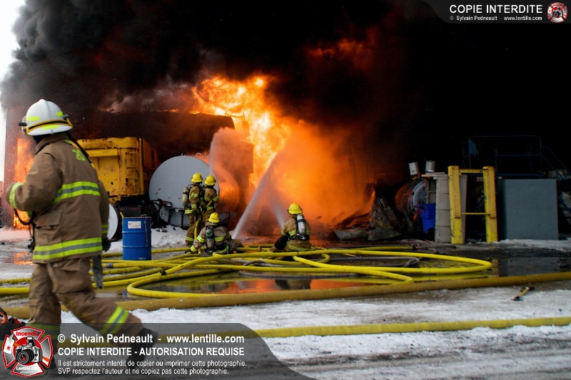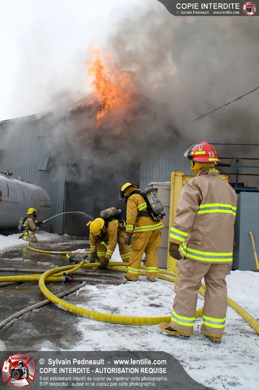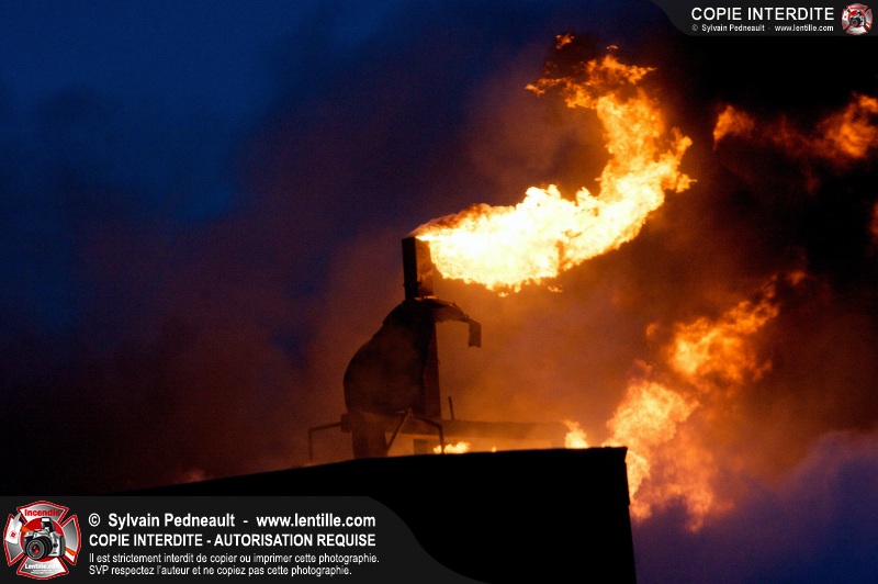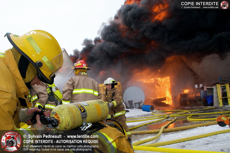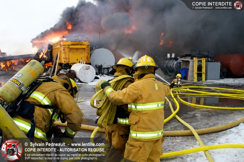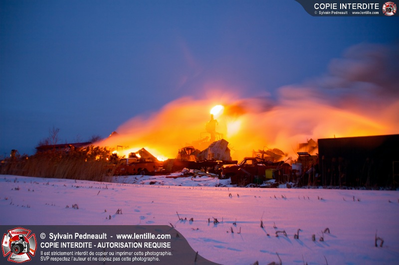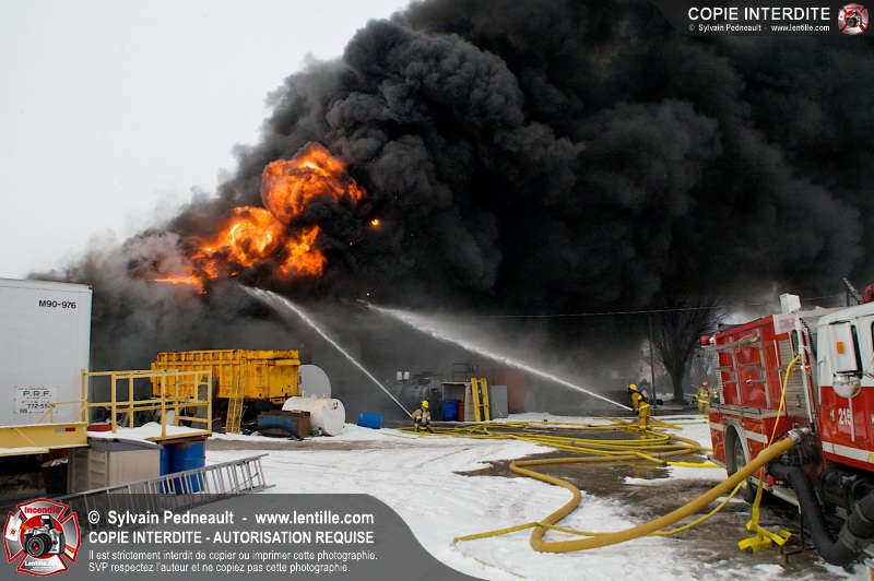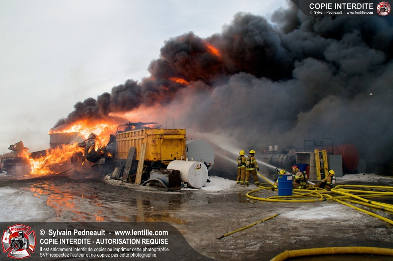 Un violent incendie a complètement détruit une industrie du Rang du Haut-de-la-Rivière-Nord à St-Pie. Malgré une attaque agressive synchronisée à l'opération de ventilation, il n'y avait malheureusement rien à faire pour contrer la propagation très rapide des flammes.
