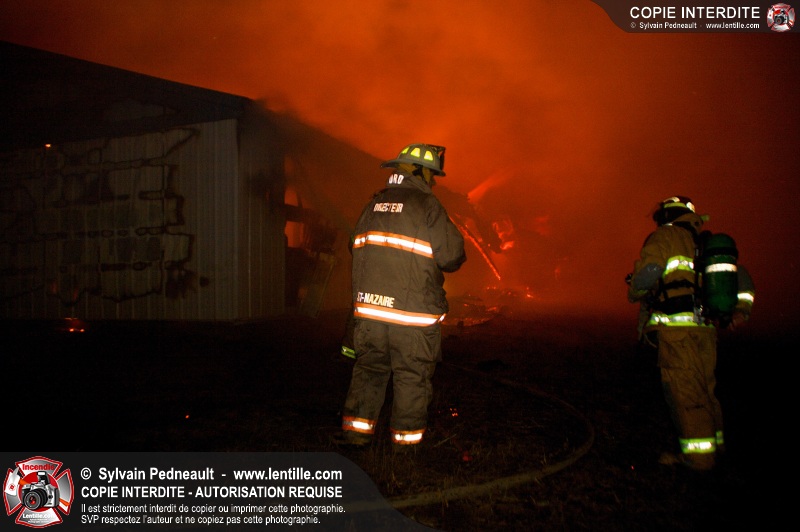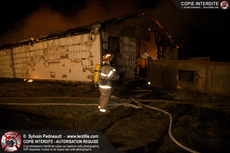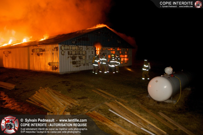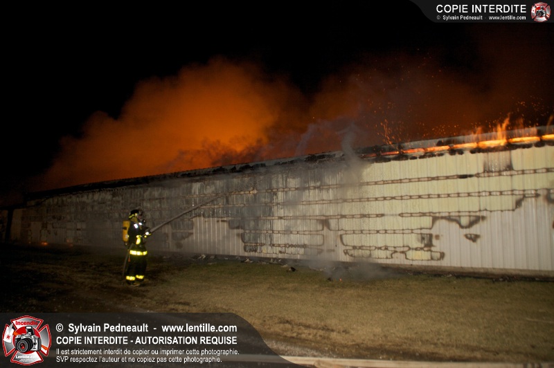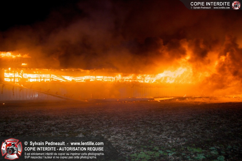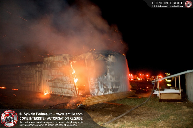 Un incendie majeur a complètement détruit une grande ferme en rénovation sur le 2ième rang à Ste-Hélène.