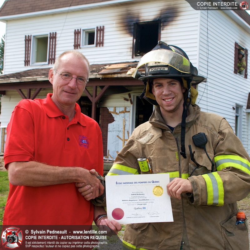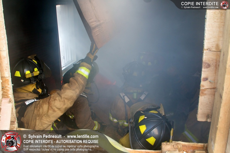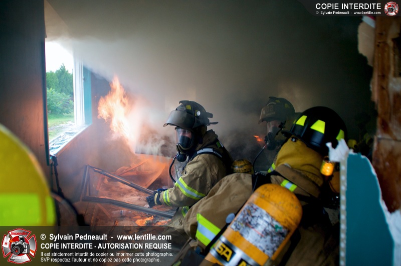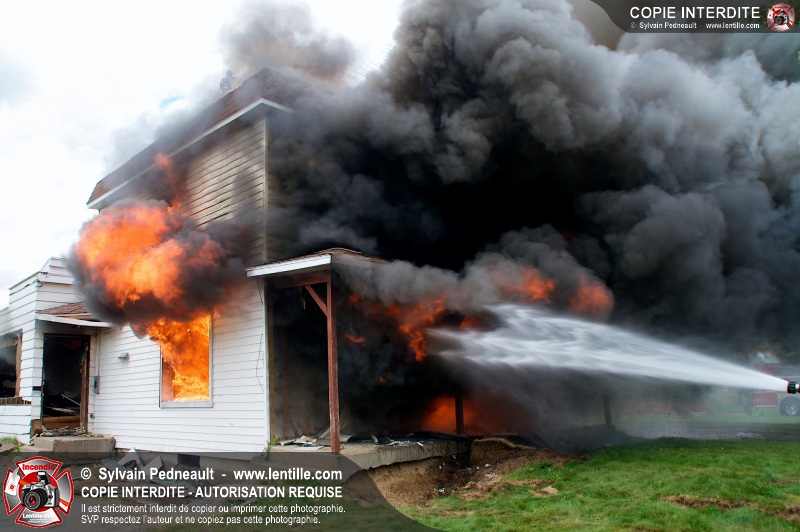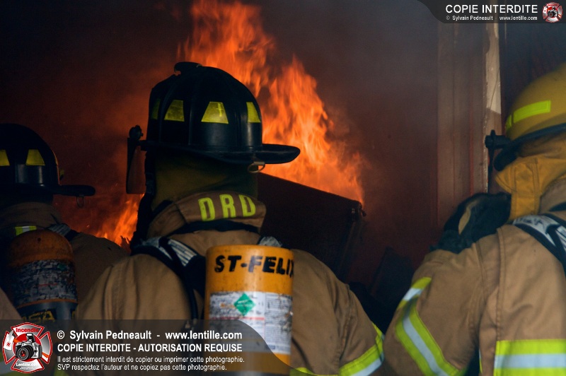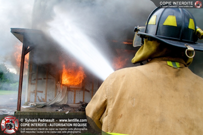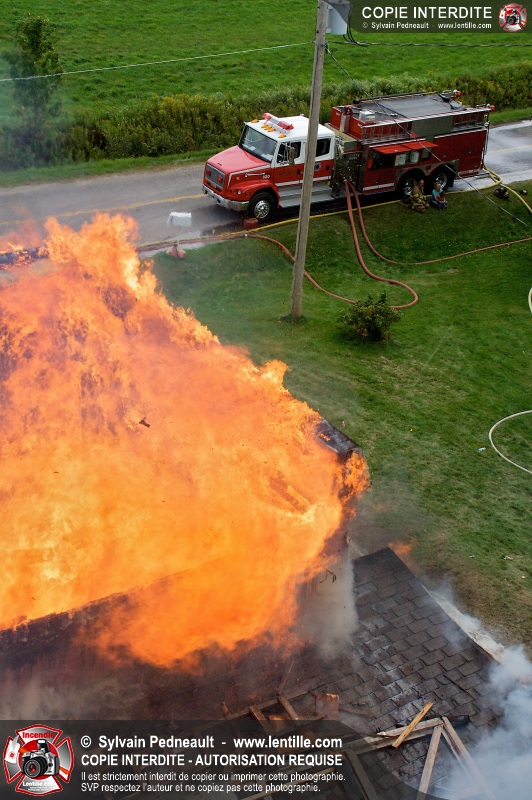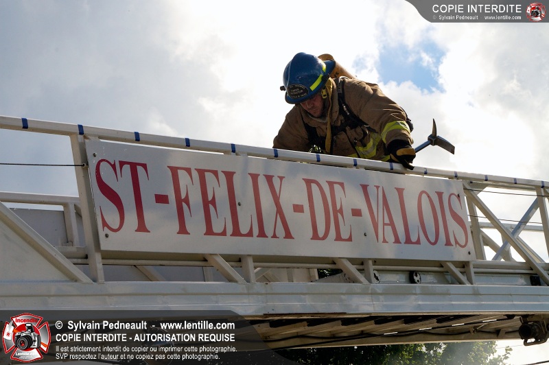 Le Service incendie de St-Félix-de-Valois a organisé une pratique d'incendie dans une maison prévue pour la démolition. Les pompiers ont participé à différents exercices d'intervention durant l'avant-midi, puis ont procédé à la mise à feu finale en après-midi.