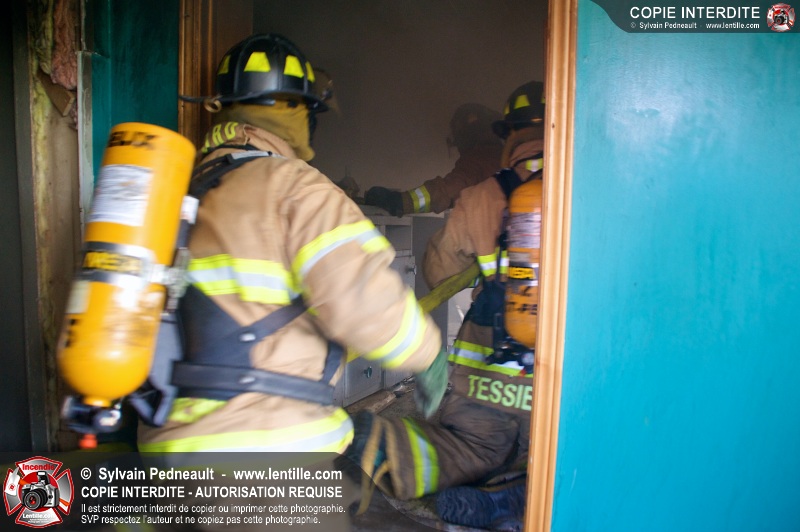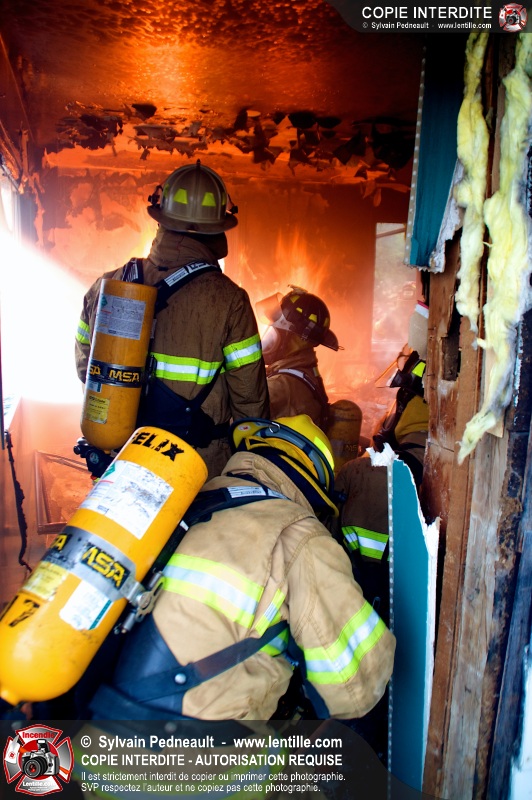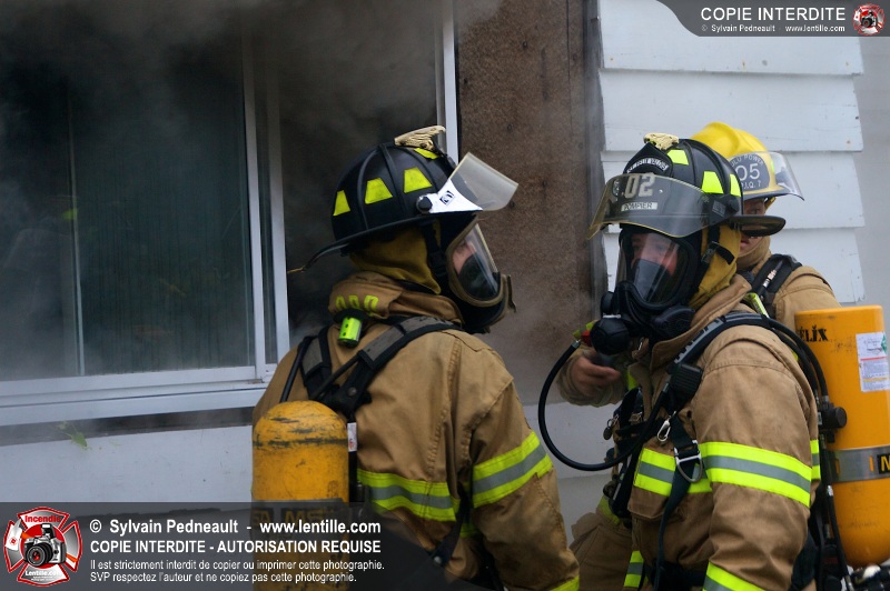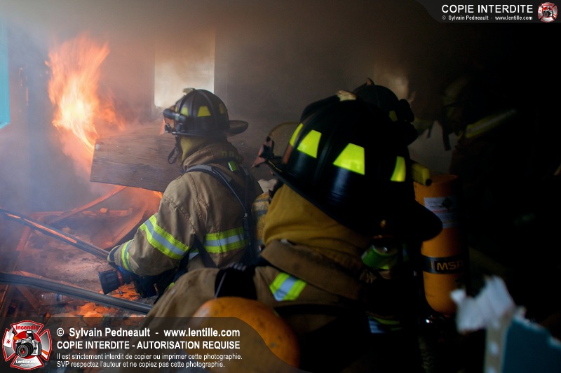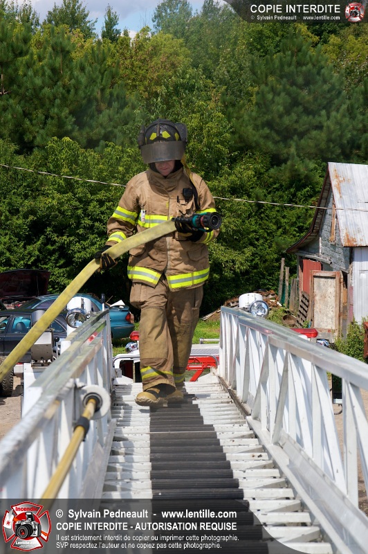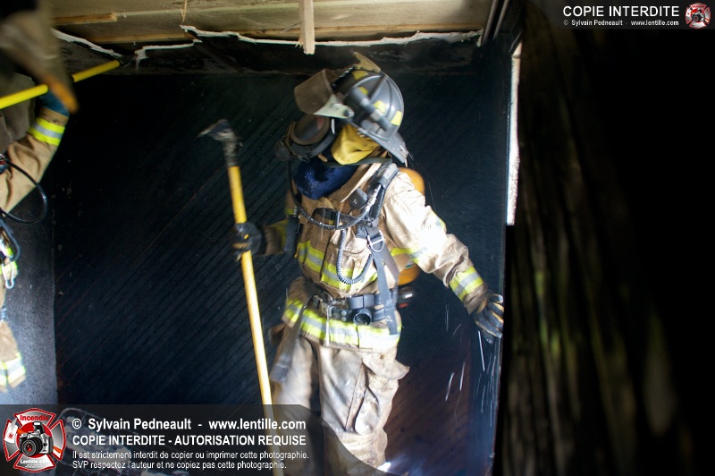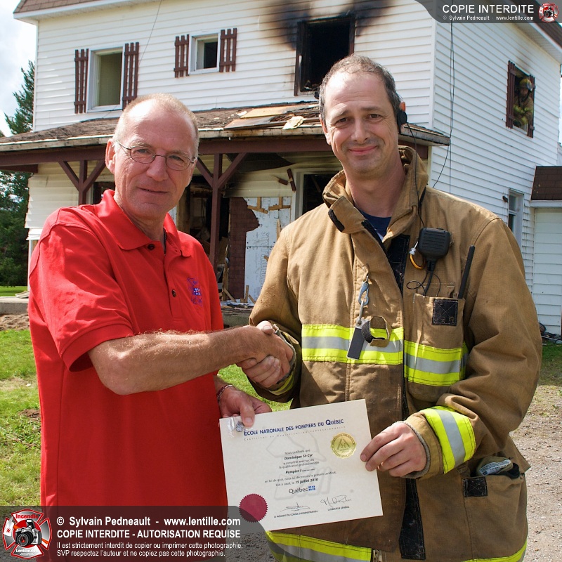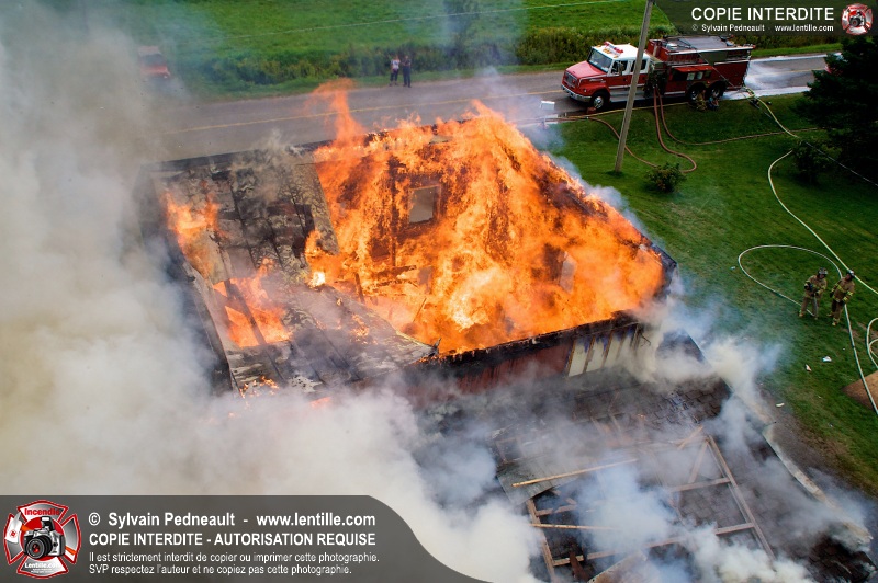 Le Service incendie de St-Félix-de-Valois a organisé une pratique d'incendie dans une maison prévue pour la démolition. Les pompiers ont participé à différents exercices d'intervention durant l'avant-midi, puis ont procédé à la mise à feu finale en après-midi.