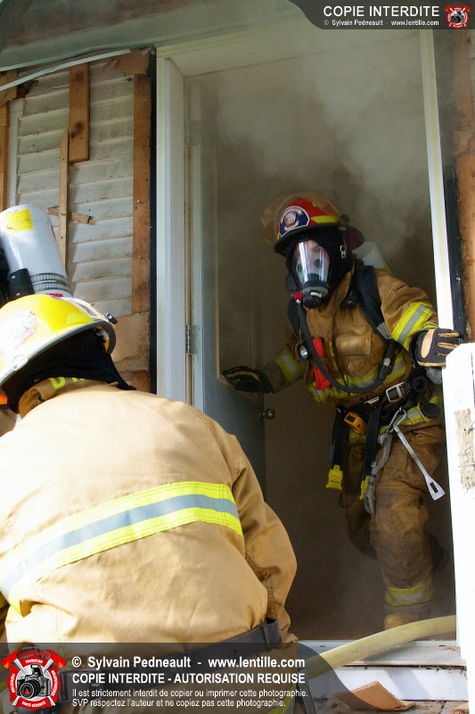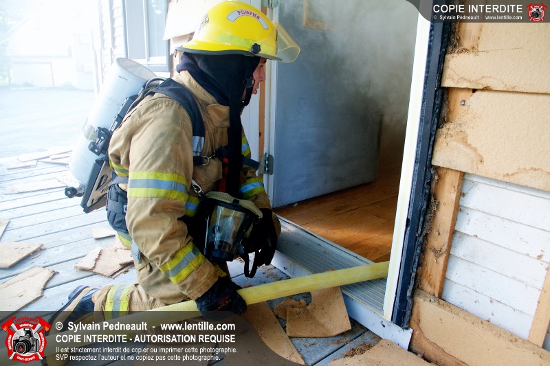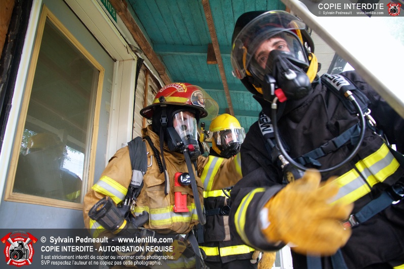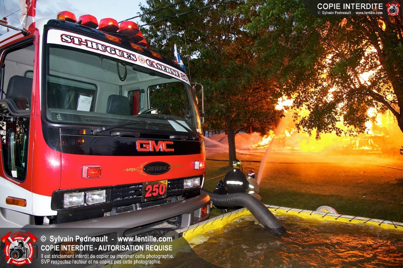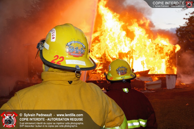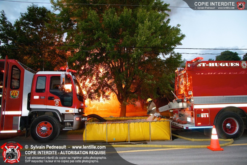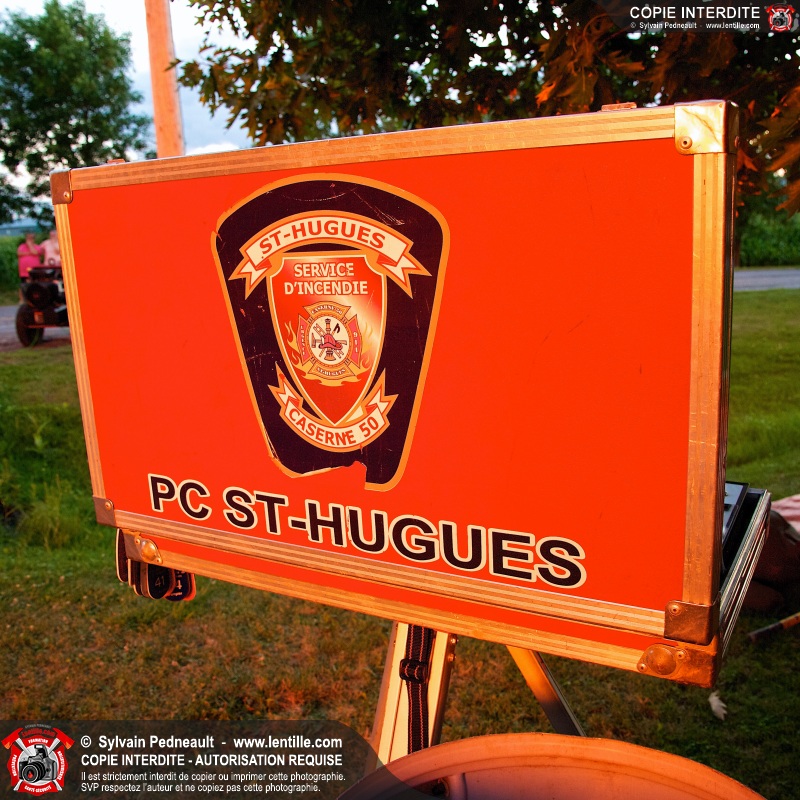 Les pompiers de St-Hugues ont eu la chance de pratiquer des techniques de recherche & sauvetage, ventilation, opérations de protection et autres dans une maison abandonnée. Les pompiers de St-Barnabé-Sud ont également pu profiter de l'occasion en se joignant aux pompiers de St-Hugues en soirée.