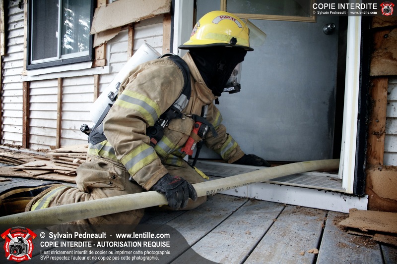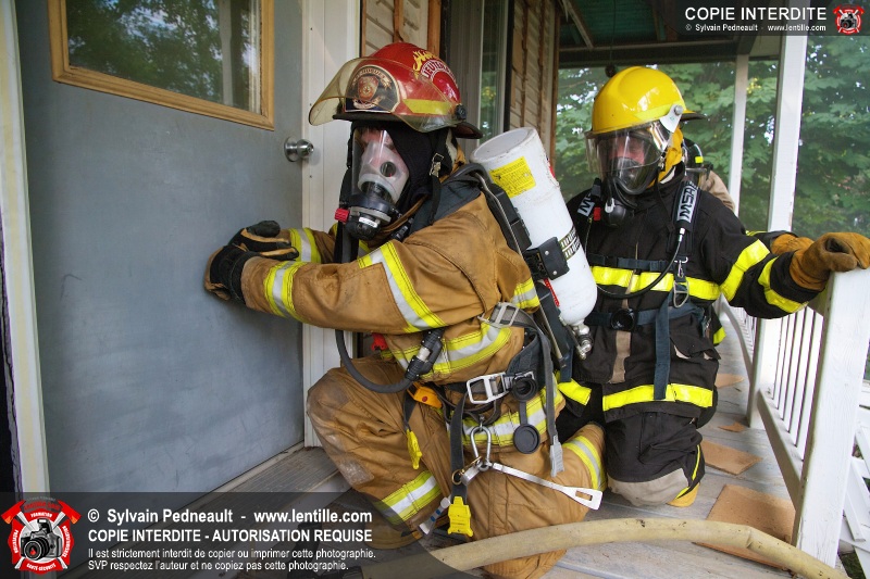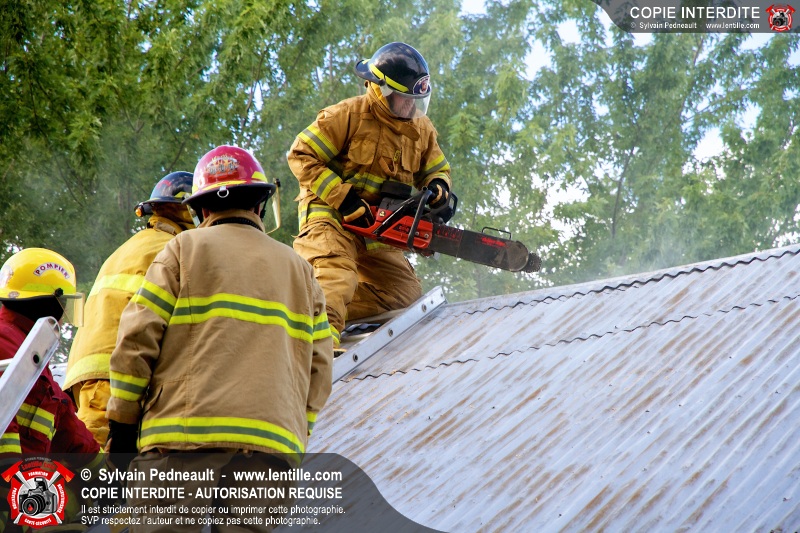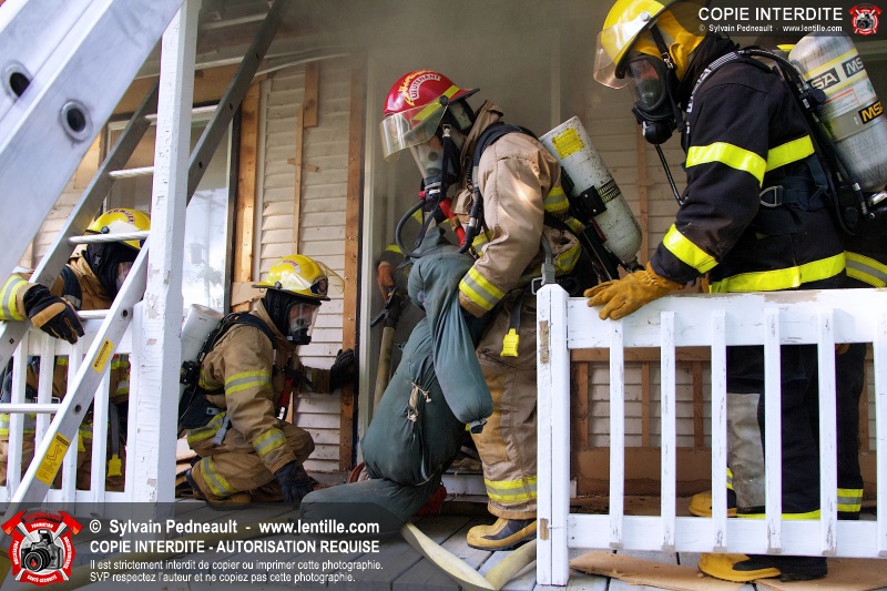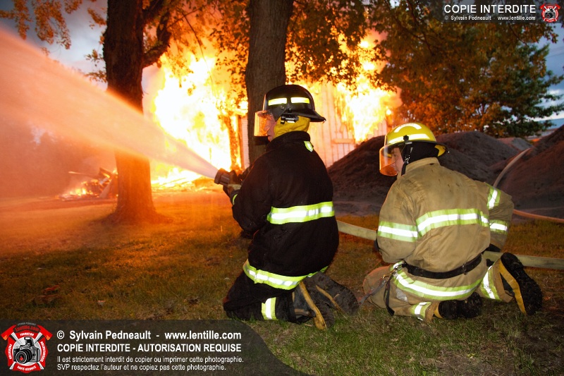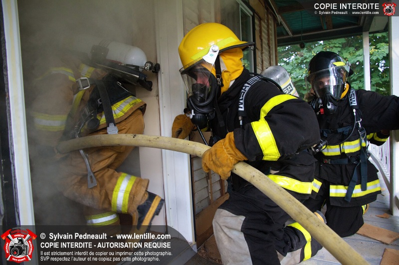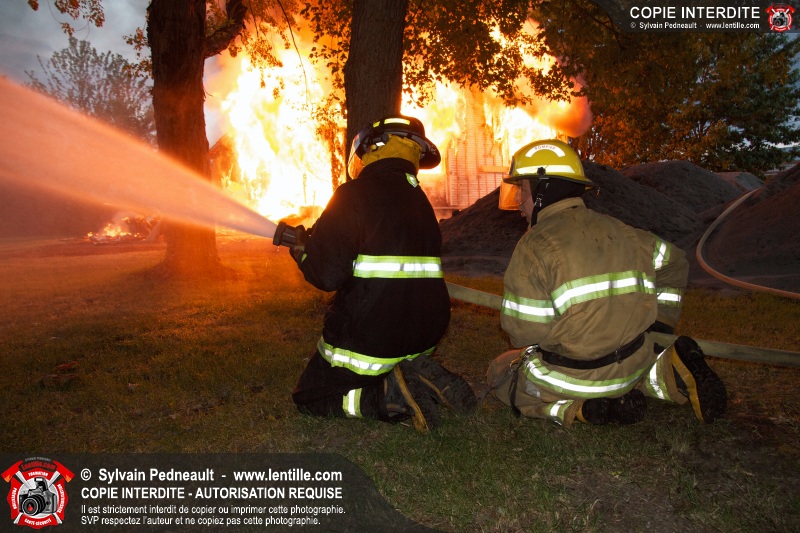 Les pompiers de St-Hugues ont eu la chance de pratiquer des techniques de recherche & sauvetage, ventilation, opérations de protection et autres dans une maison abandonnée. Les pompiers de St-Barnabé-Sud ont également pu profiter de l'occasion en se joignant aux pompiers de St-Hugues en soirée.